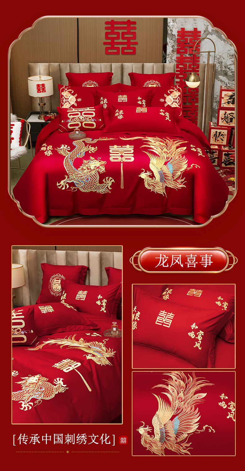 (总)千禧家纺 2025新款双面长绒棉提花工艺重工刺绣婚庆多件套,龙凤呈瑞,龙凤相随,龙章凤姿,金龙祥凤,龙翔凤舞,盛世繁华,天配龙凤,龙凤织锦,祥龙瑞凤