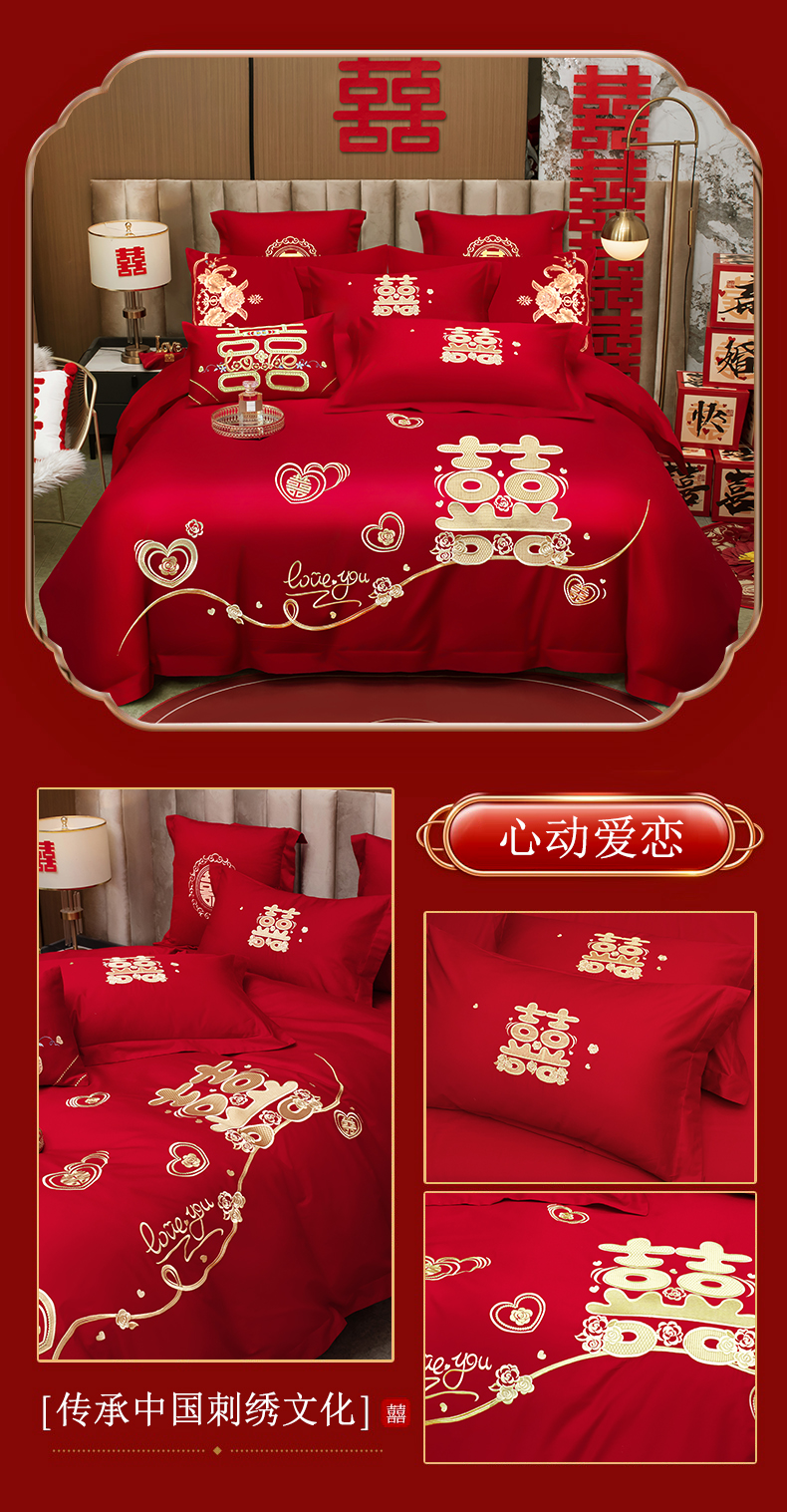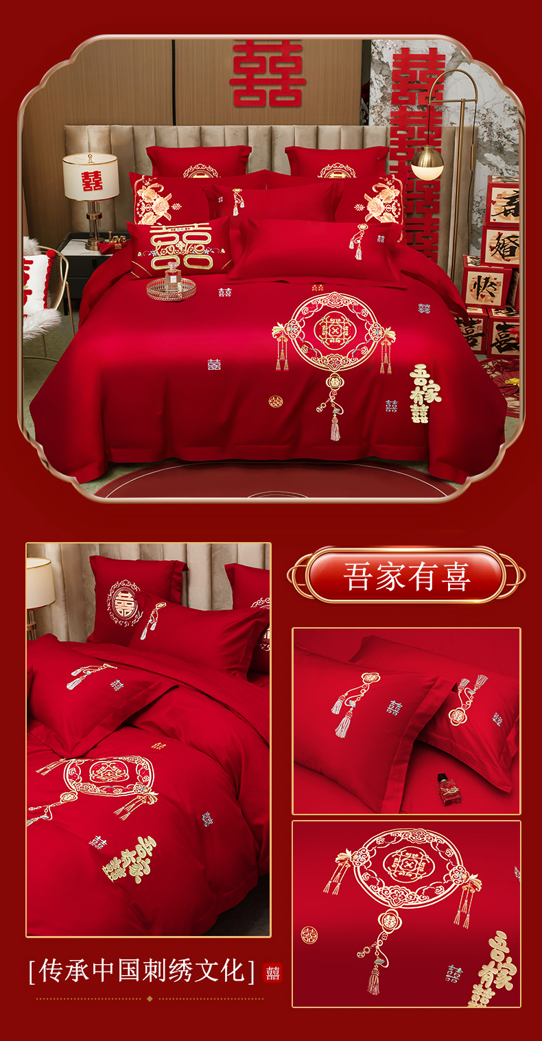 (总)千禧家纺 2024新款双面长绒棉磨毛加厚保暖绣花婚庆套件,大喜大吉,鸿运贺禧,欢乐喜事,欢喜,美满爱情,喜上眉梢,喜约,相伴一生,挚爱