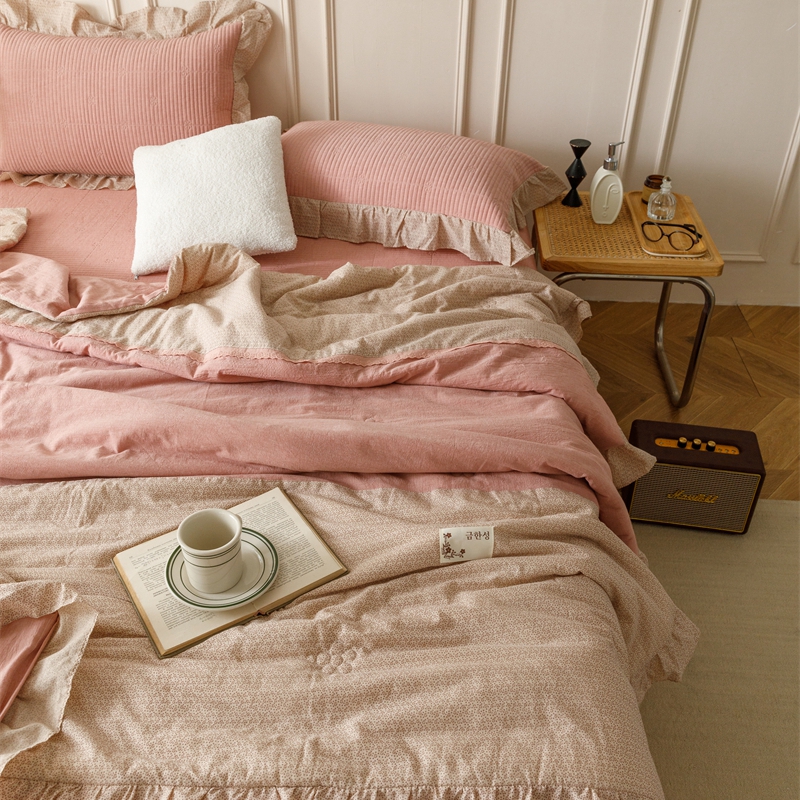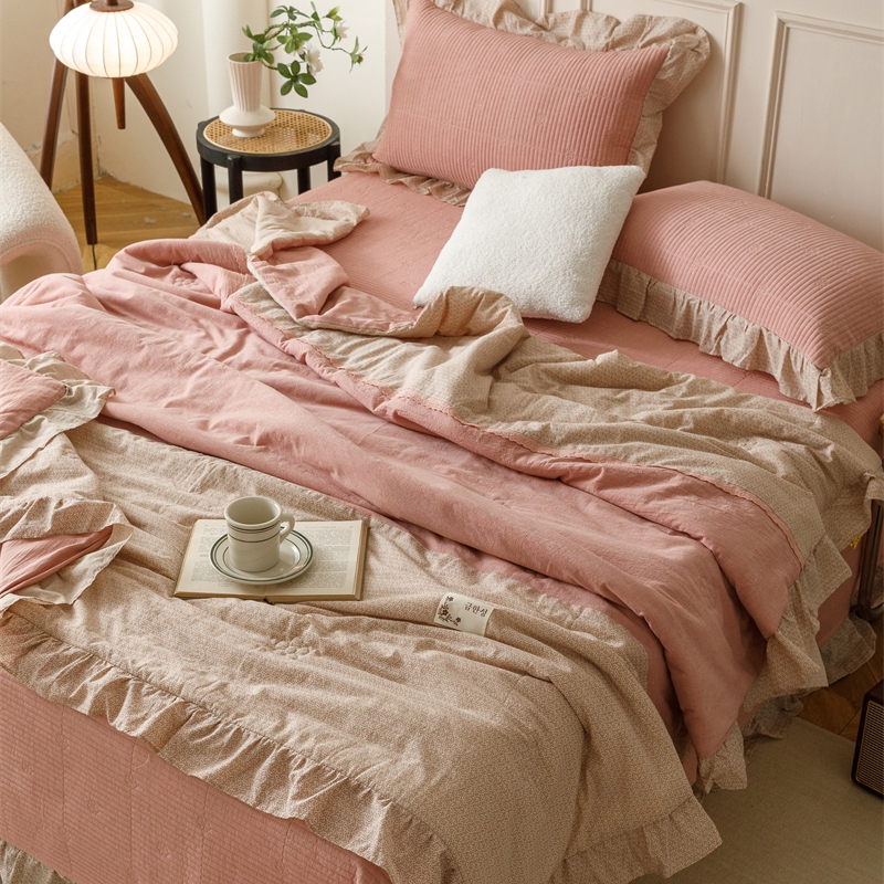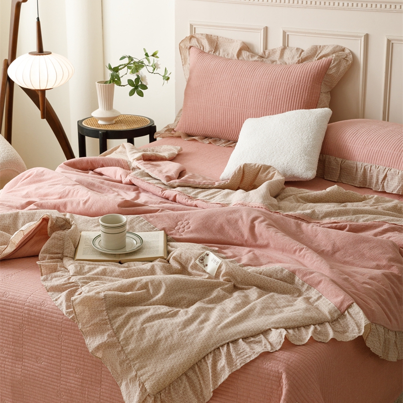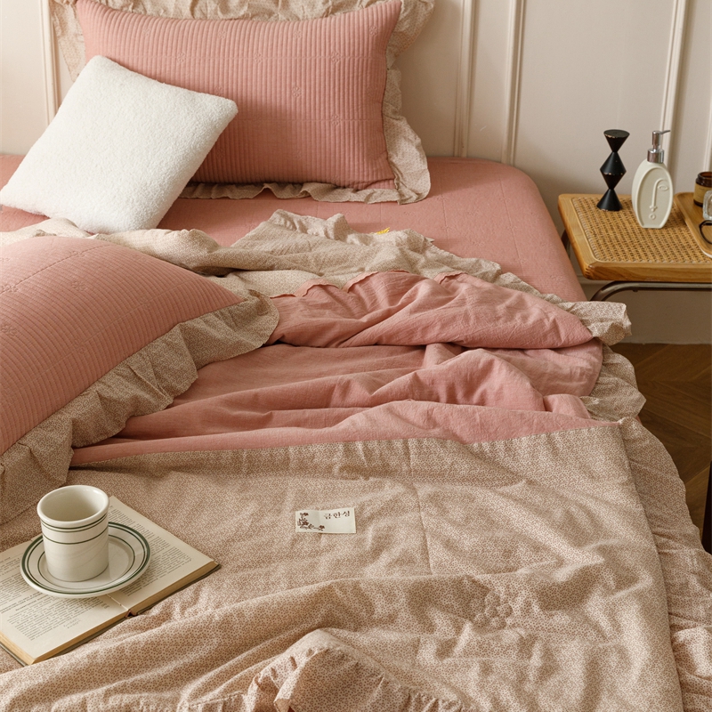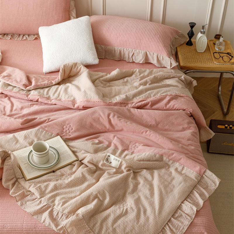 (总)有货 2023新款小清新花边韩版水洗棉麻豆豆夏被简约复古风,枫情,格格,绿野,绿意,南风,暖心,森林,盛开,太空,微笑,向阳花,小鹿,枝丫