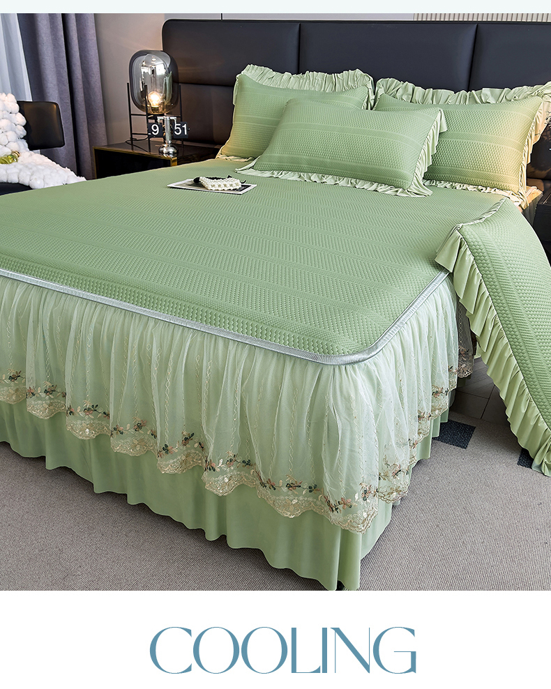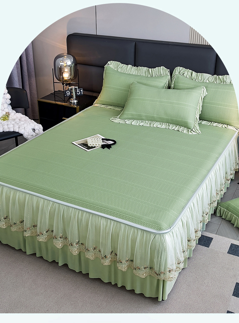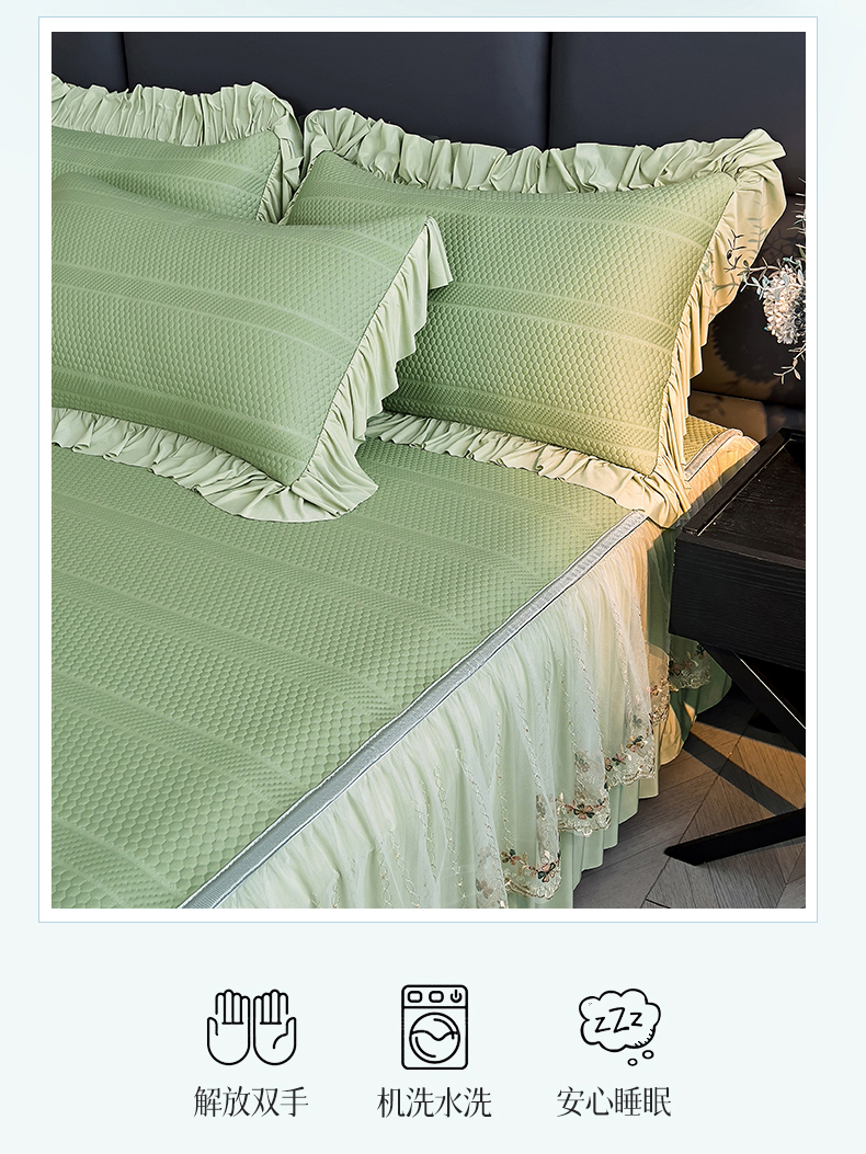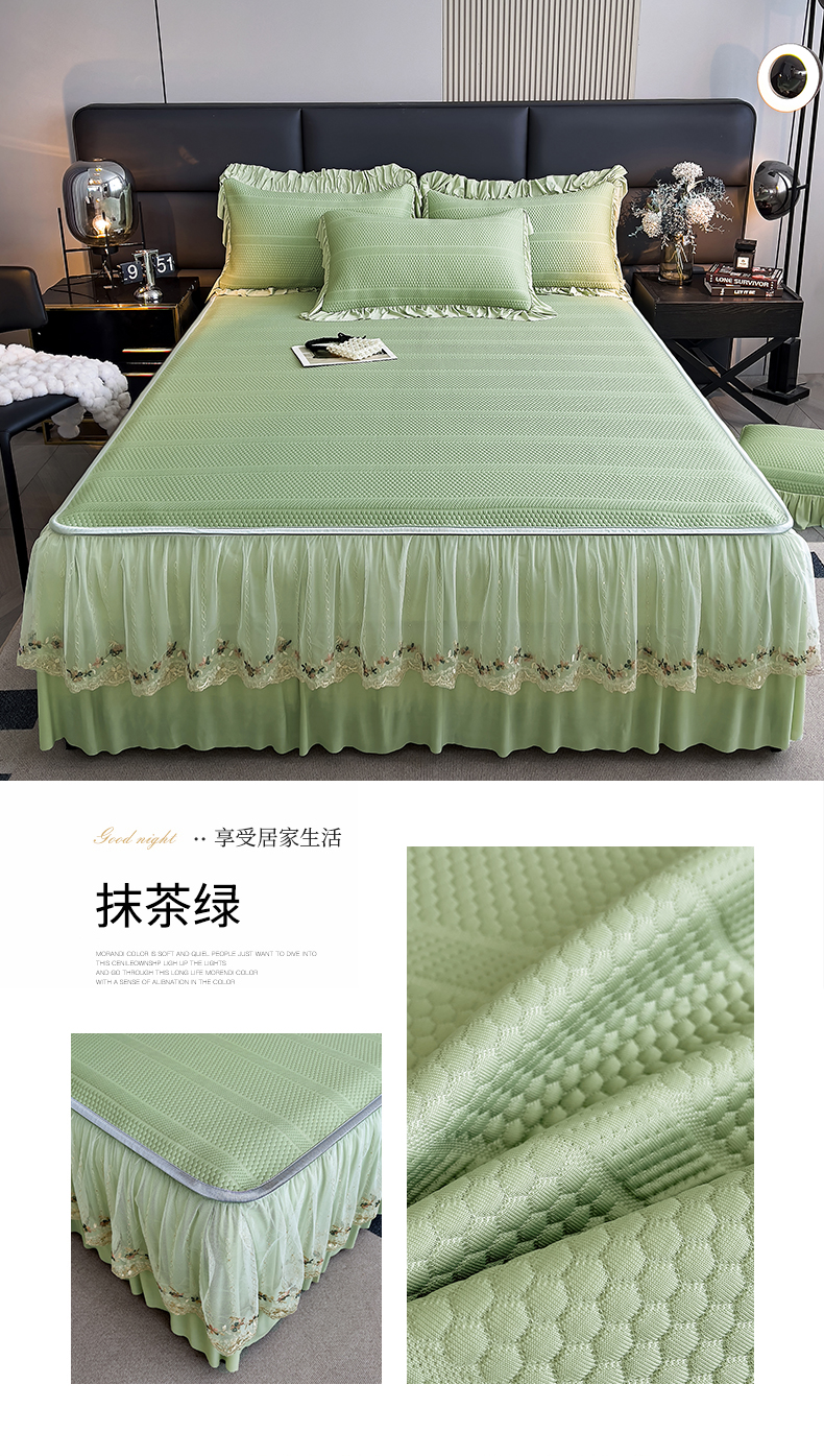 恒爱家纺 2024新款倾国倾城系列冰豆豆凉感床裙款 抹茶绿