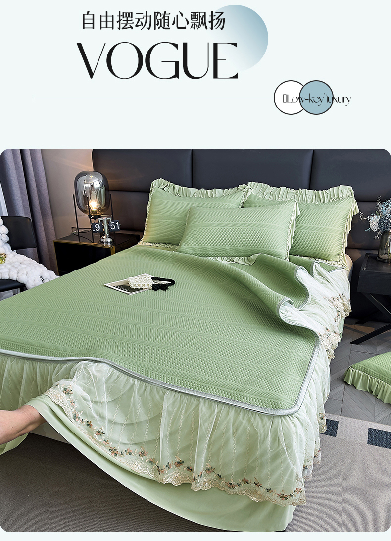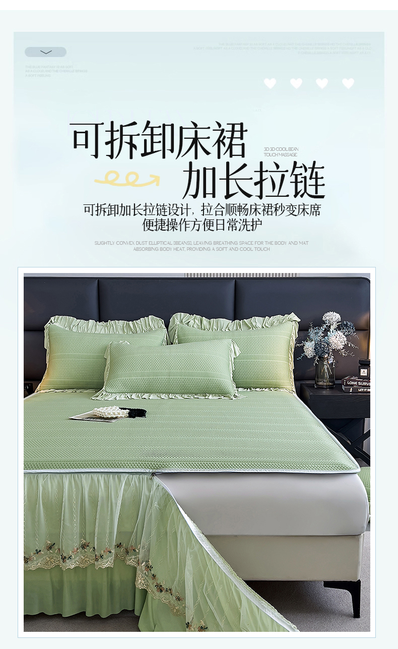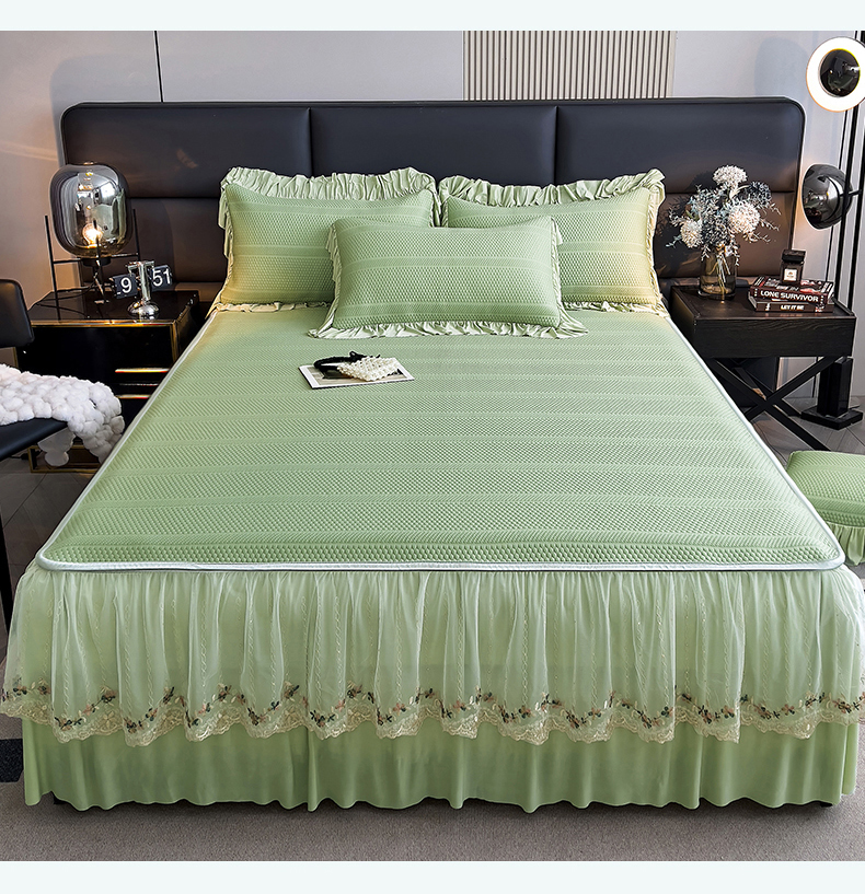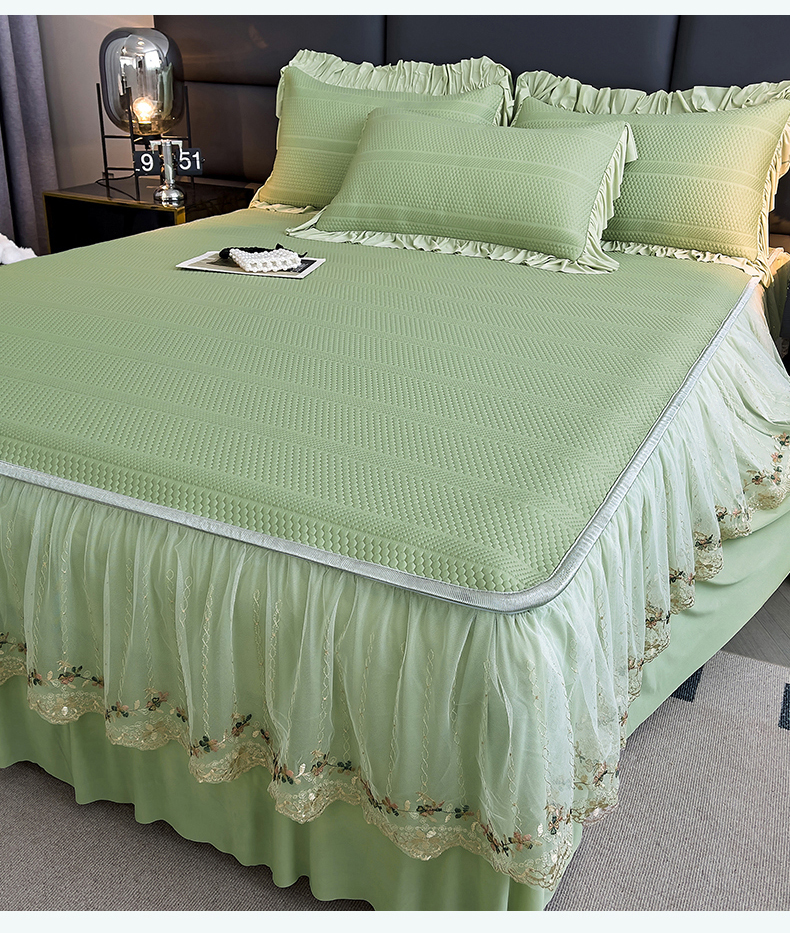 恒爱家纺 2024新款倾国倾城系列冰豆豆凉感床裙款 抹茶绿