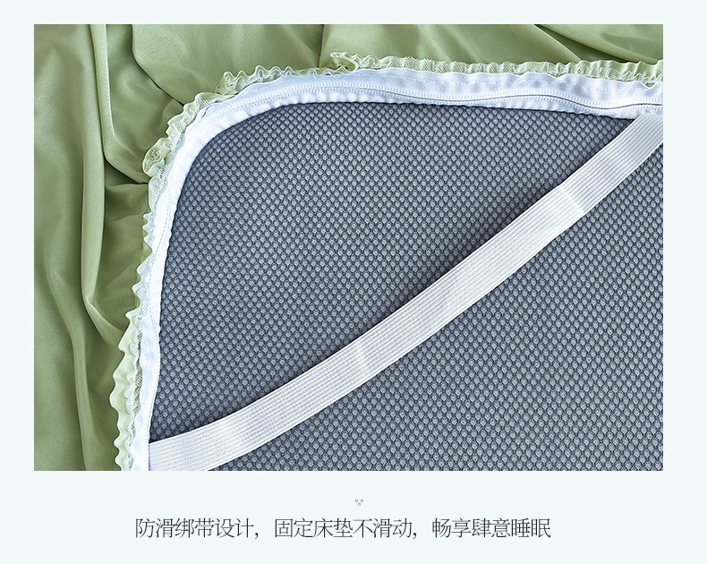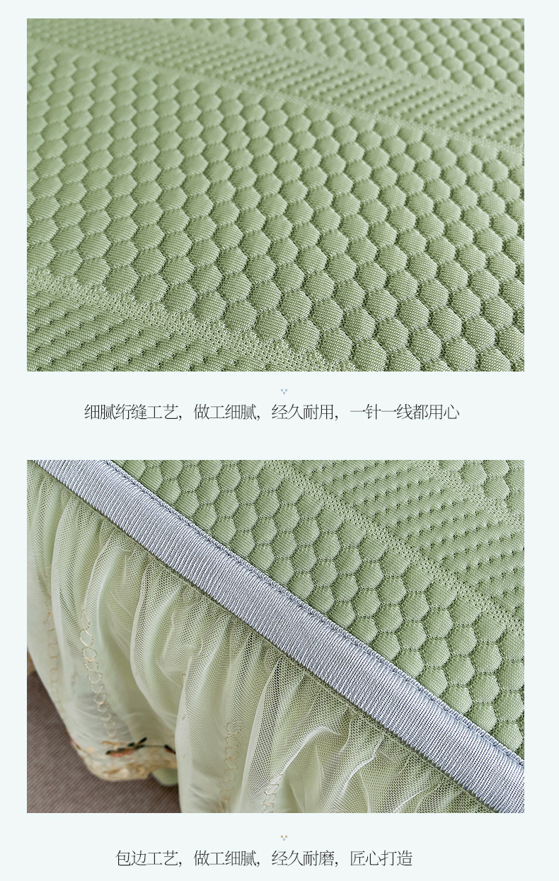 • 91家纺网 家纺一手货源 找家纺 恒爱家纺 2024新款倾国倾城系列冰豆豆凉感床裙款 抹茶绿