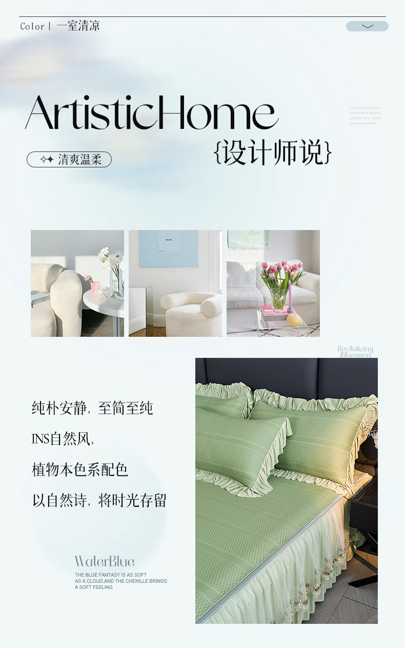 (总)恒爱家纺 2026新款A类凉感冰豆豆床裙席三件套,蝶舞-粉,蝶舞-灰,蝶舞-蓝,蝶舞-绿,风花雪月-粉,风花雪月-灰,风花雪月-蓝