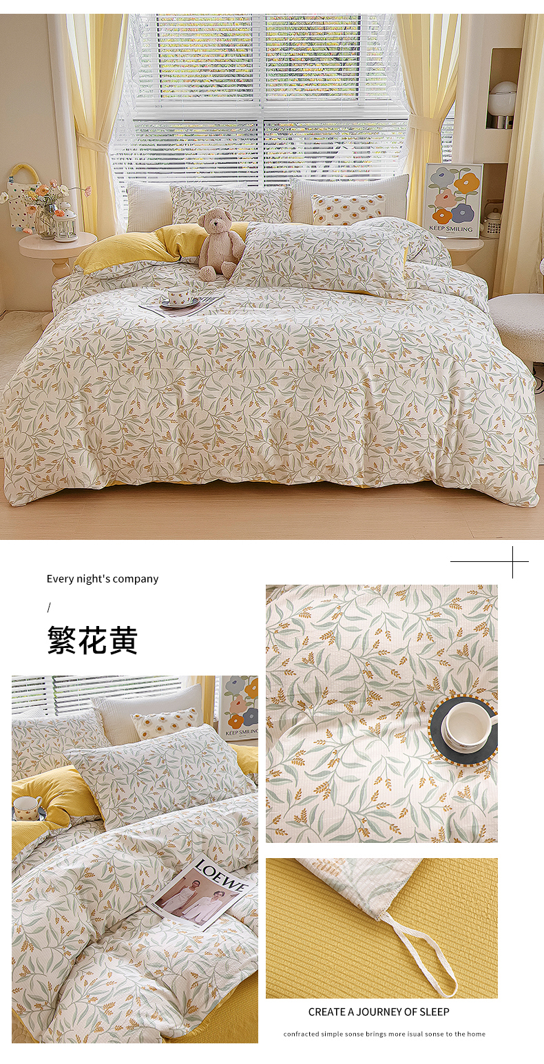 商品名称:氧家 2024新款水洗棉华夫格泡泡纱四件套 繁花黄