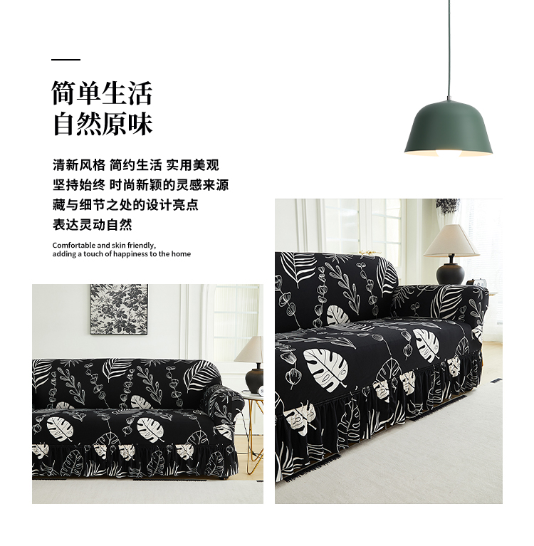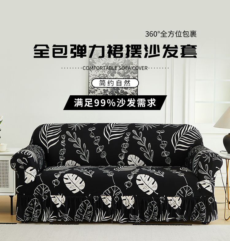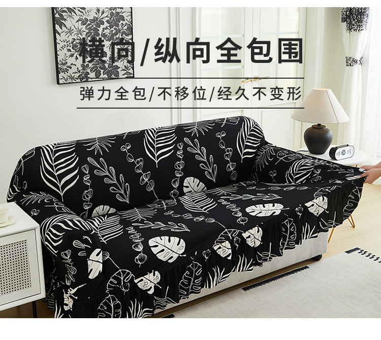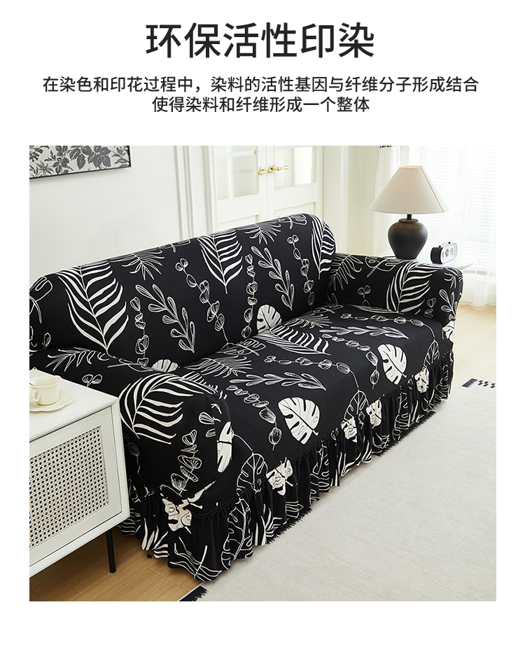 商品名称:逐日沙发套 2024新款牛奶丝印花裙摆沙发套 印花 裙摆- 黑叶
