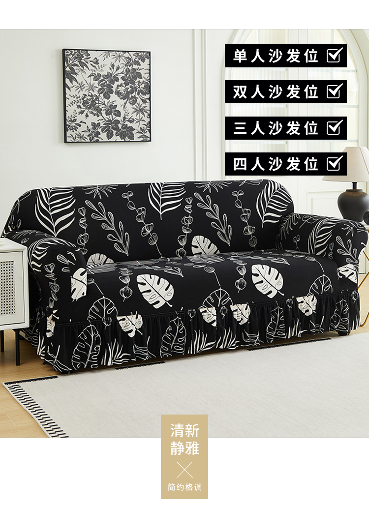 逐日沙发套 2024新款牛奶丝印花裙摆沙发套 印花 裙摆- 黑叶