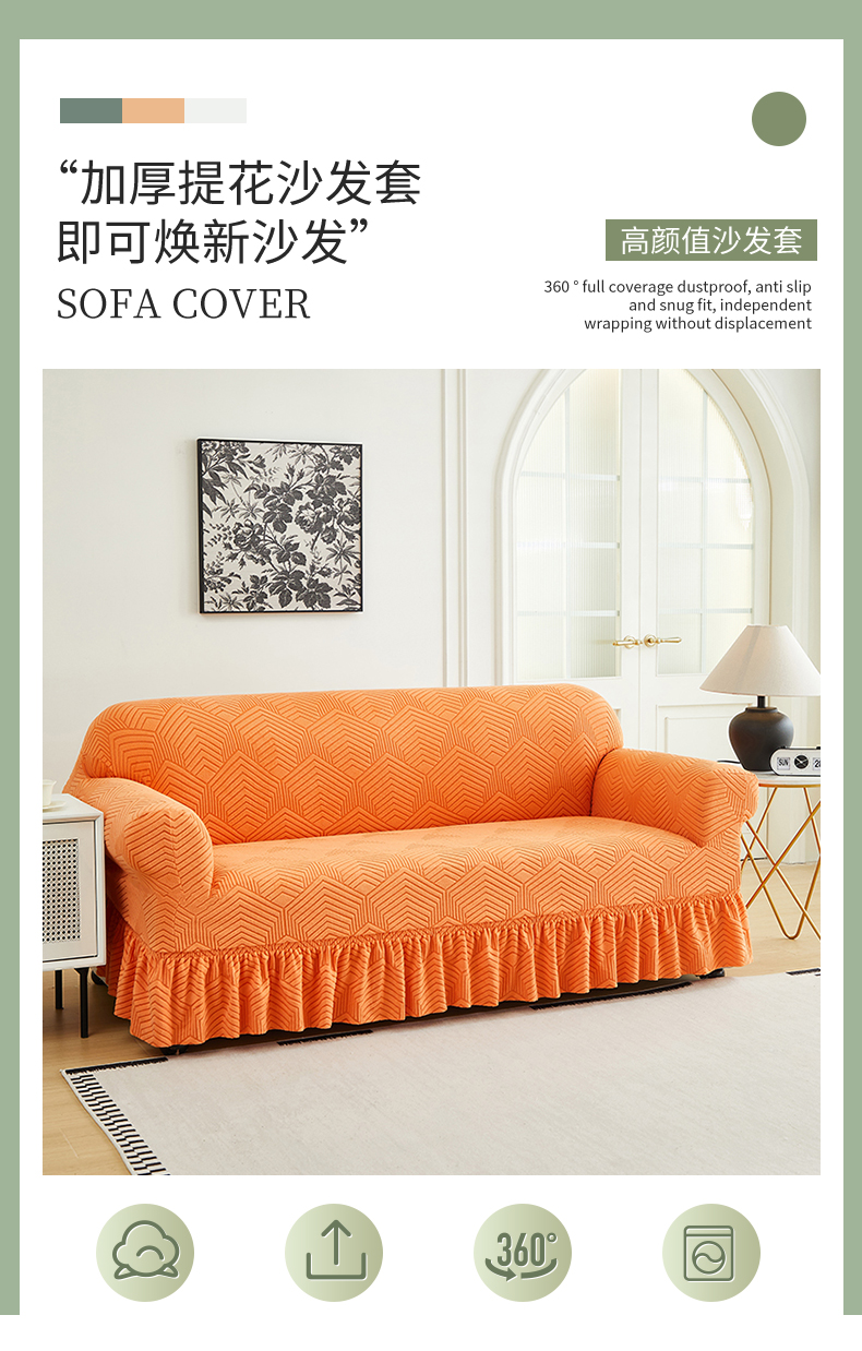 逐日沙发套 2024新款提花裙摆沙发套 -时光 裙摆 时光-高级橙