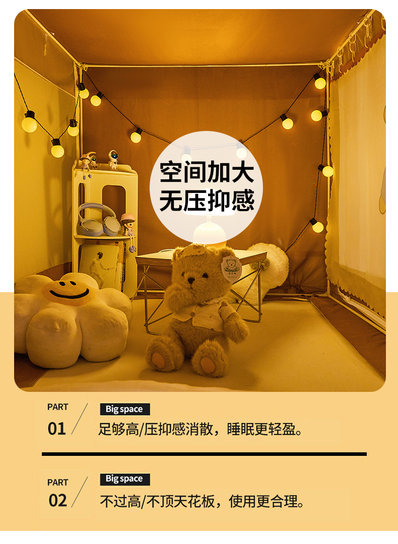 (总)薇梦蚊帐 2025新款房子造型遮光防尘蚊帐,欢乐一家,太空熊猫,月亮小熊