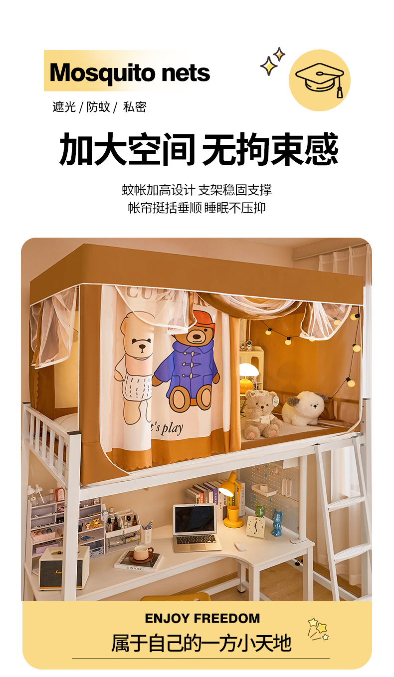 (总)薇梦蚊帐 2025新款学生宿舍遮光蚊帐,元气狗熊,乐享人生,发财暴富,快乐熊宝,暴富发财,快乐生活,公主请发财