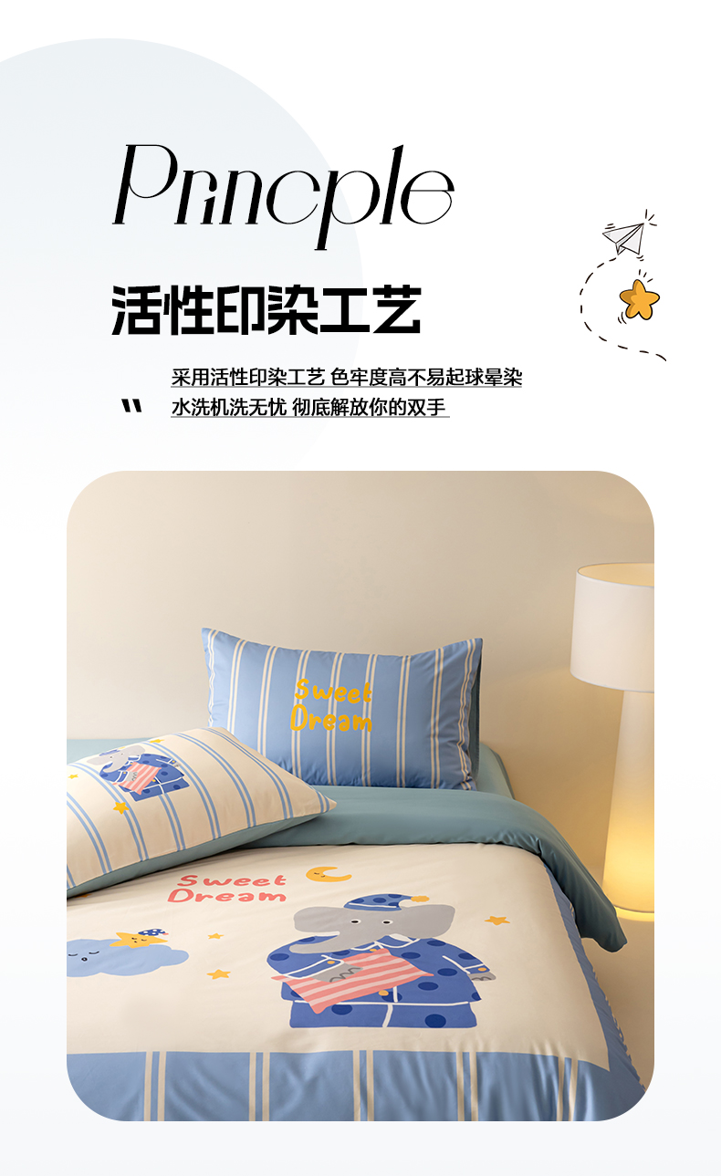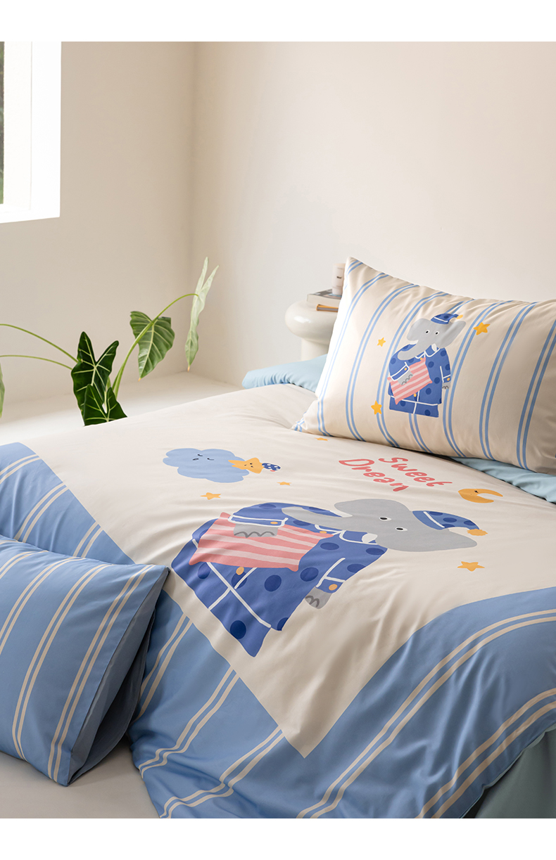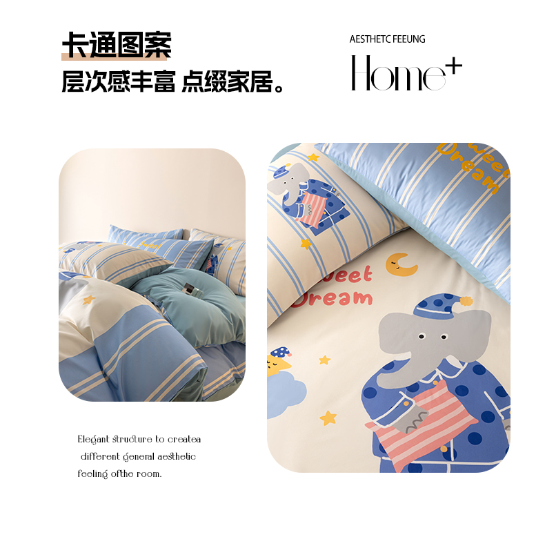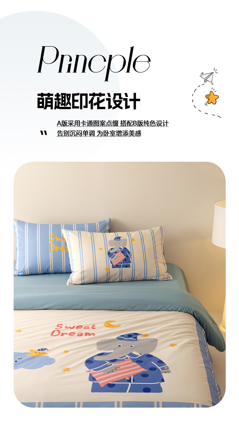 商品名称:雅居纺家纺 2024新款全棉印花13372大版四件套 晚安象