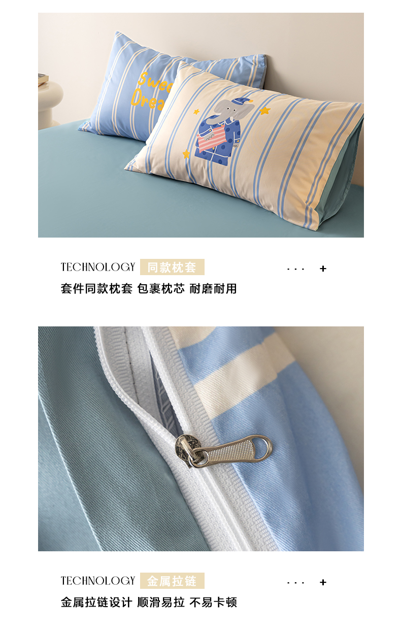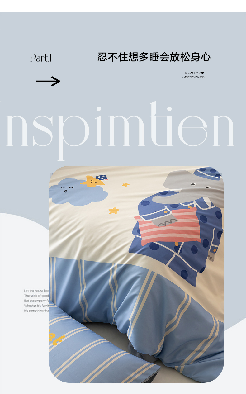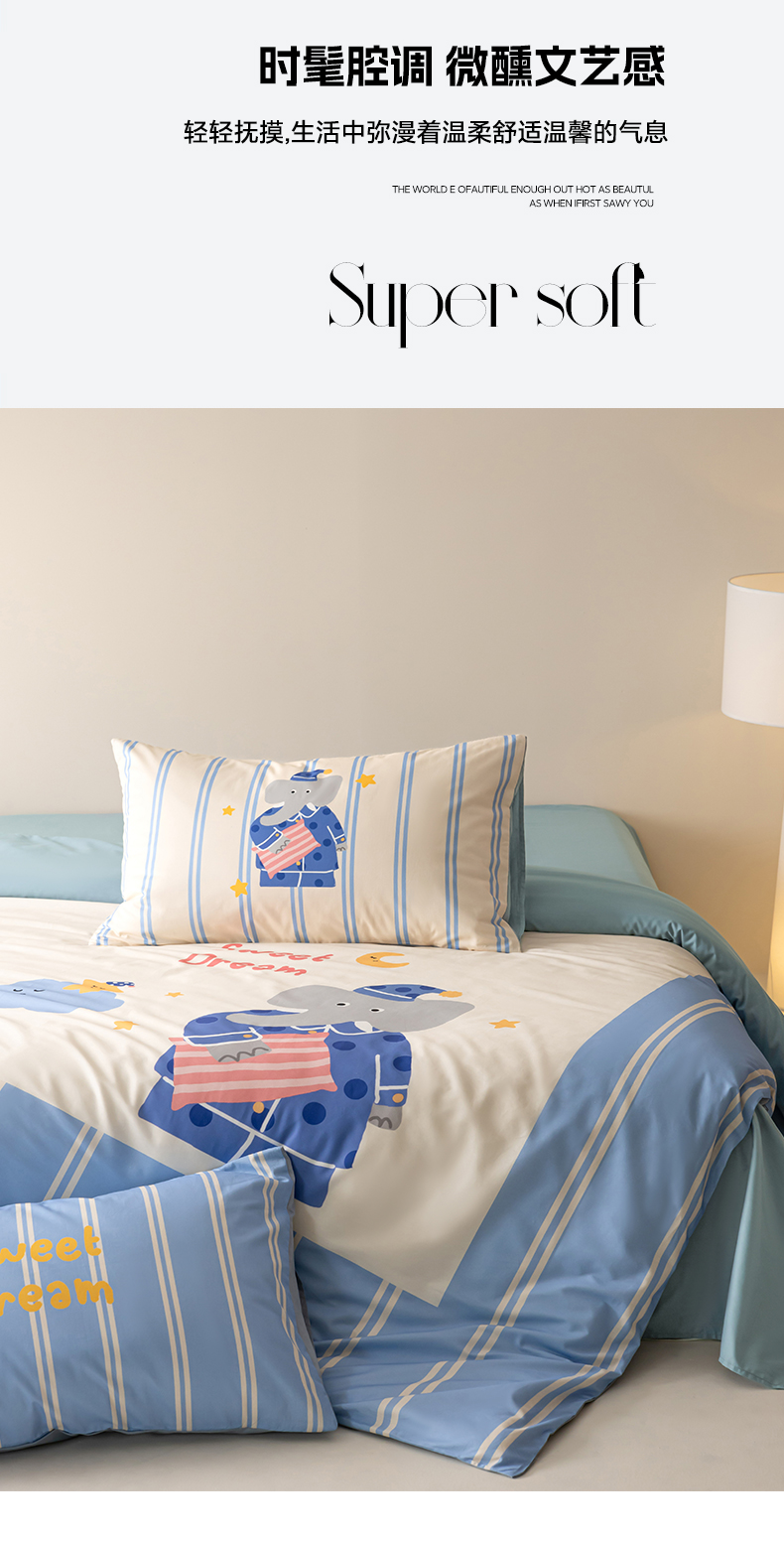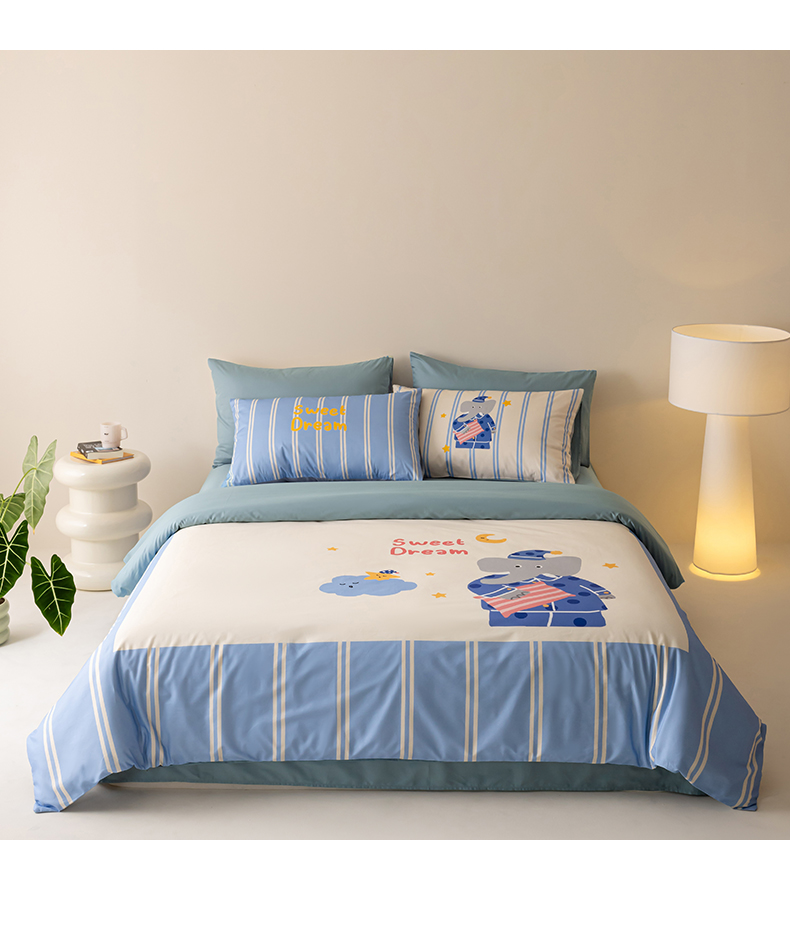 商品名称:雅居纺家纺 2024新款全棉印花13372大版四件套 晚安象