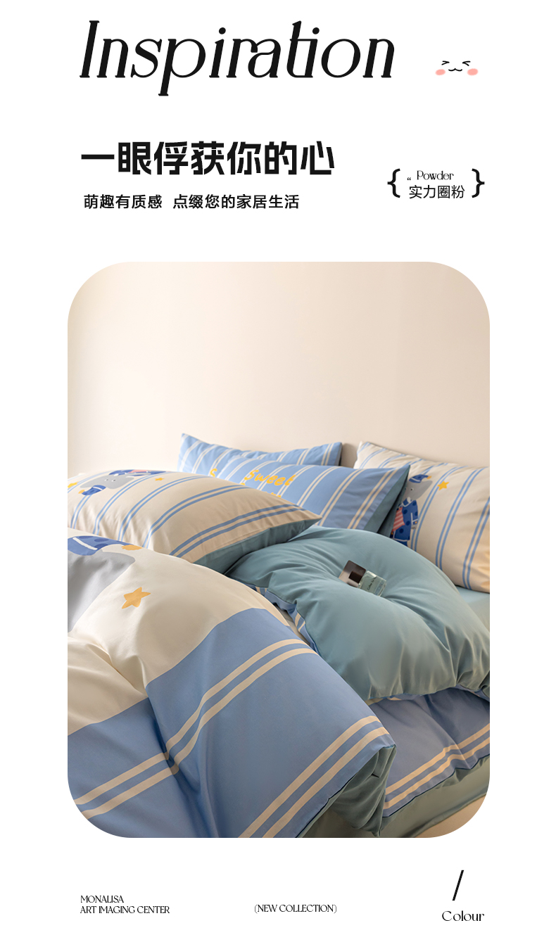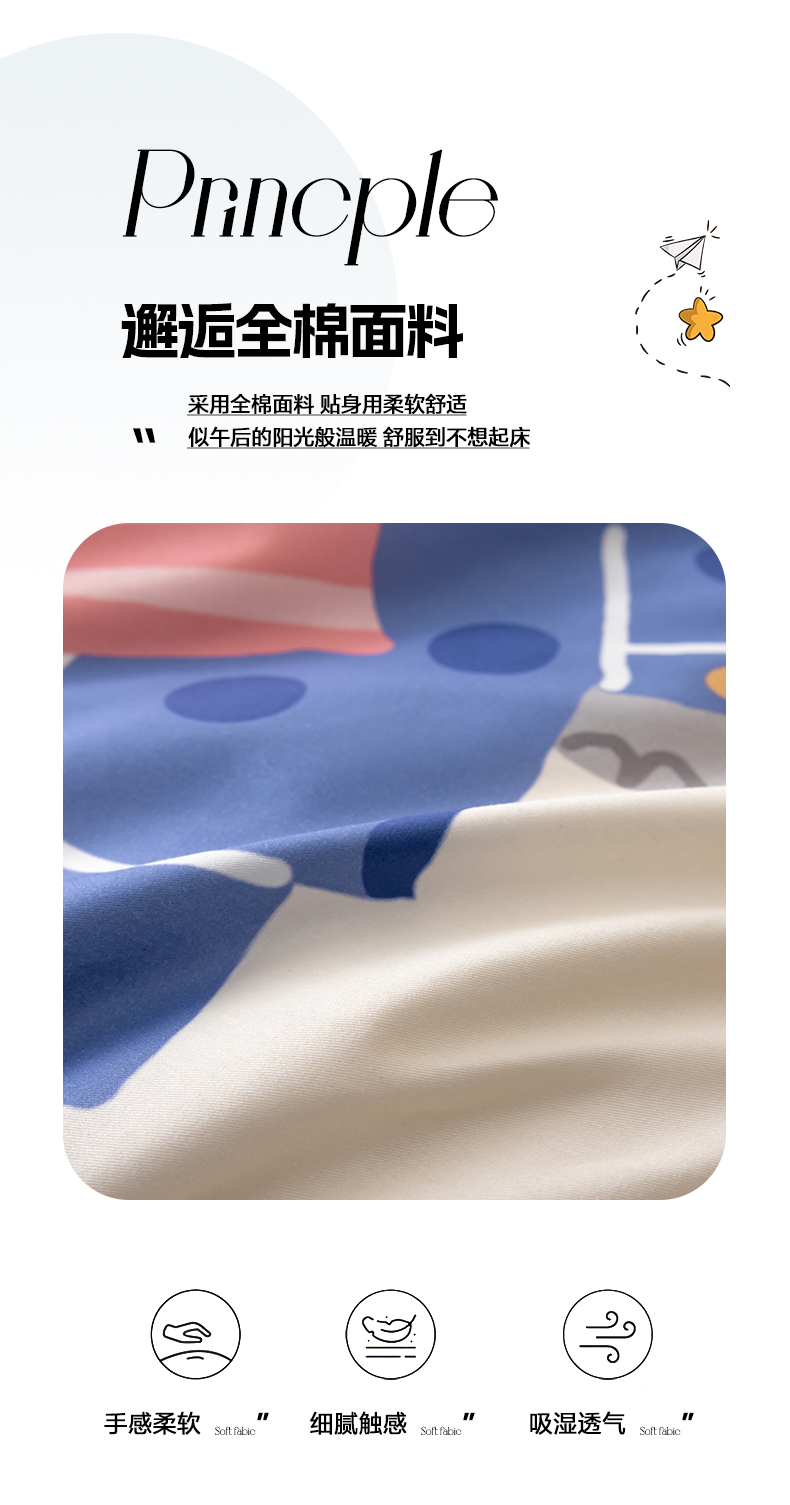 (总)雅居纺家纺 2022新款13070全棉印花四件套,波纹,多彩,简笔画,莓关系,奶油绿豹纹,倾心,数字
