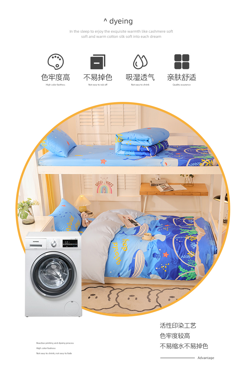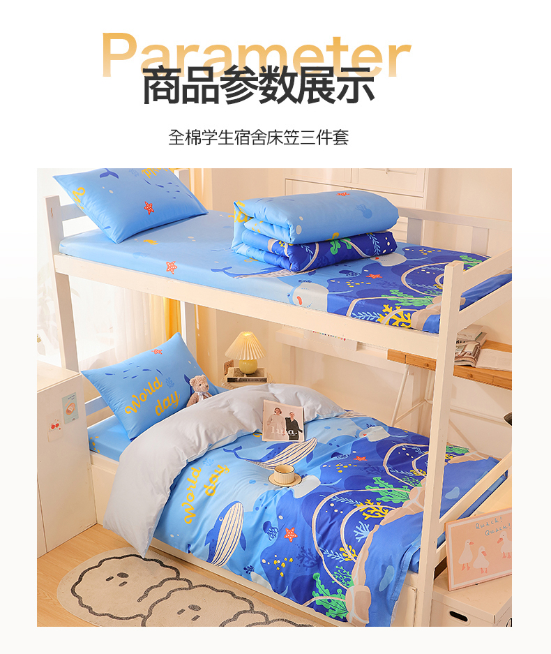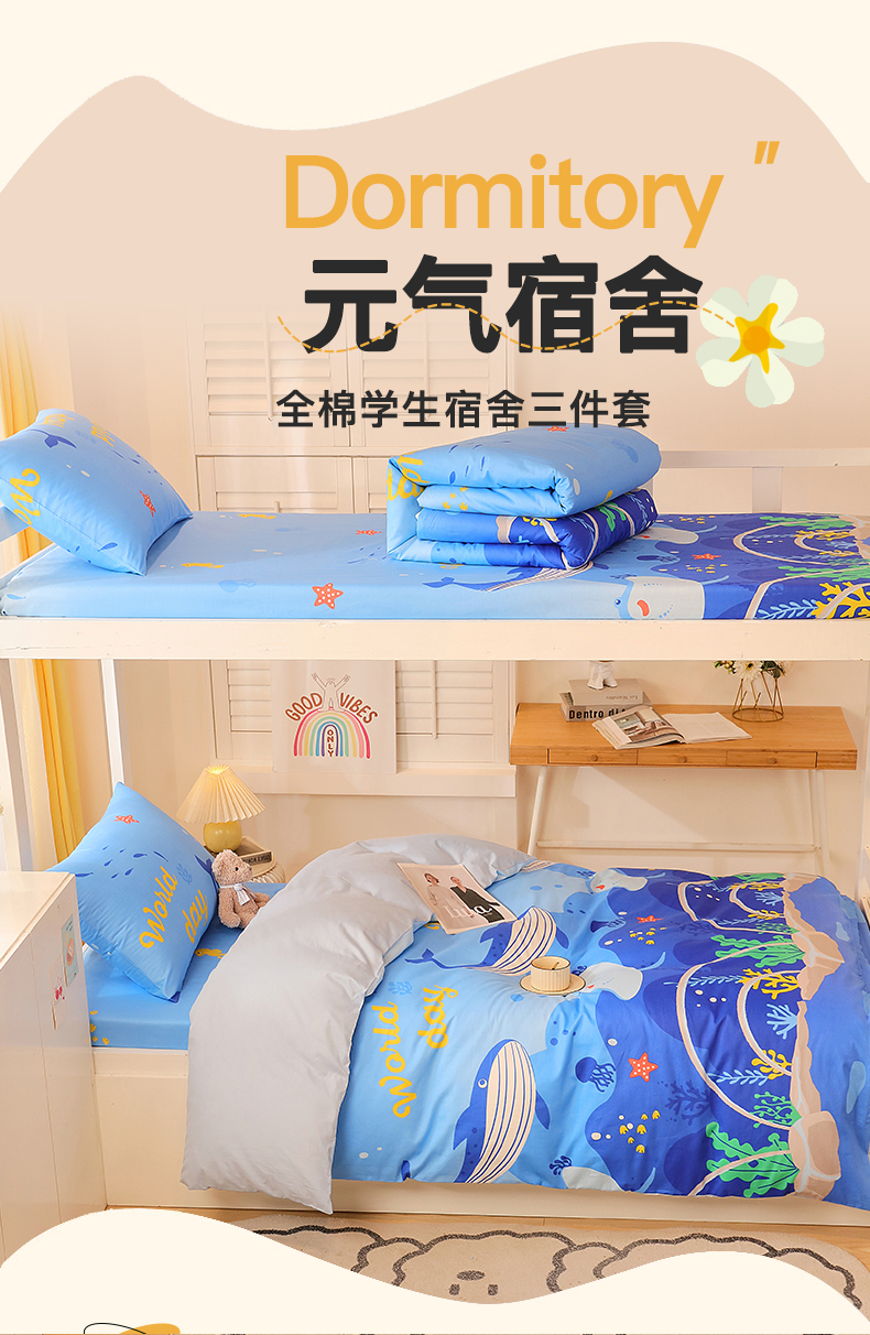 当前位置: 91家纺网 > 商品网购 > 床品套件 > 三件套 > 金鑫汇家纺 2024新款全棉宿舍印花三件套第三批 海族馆