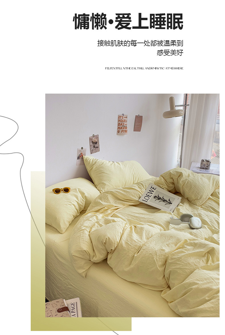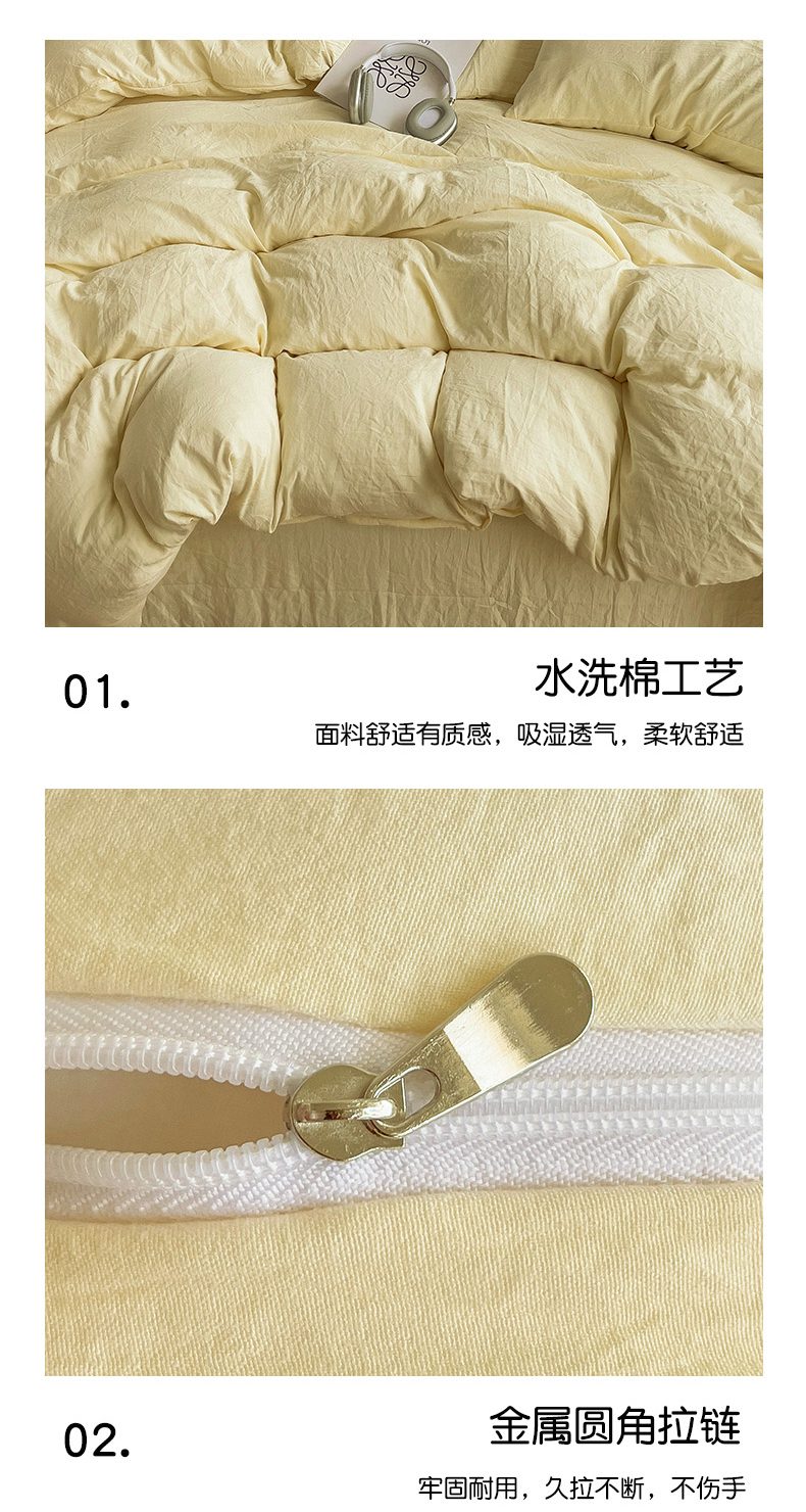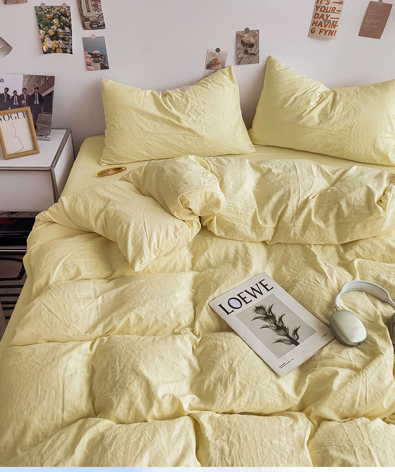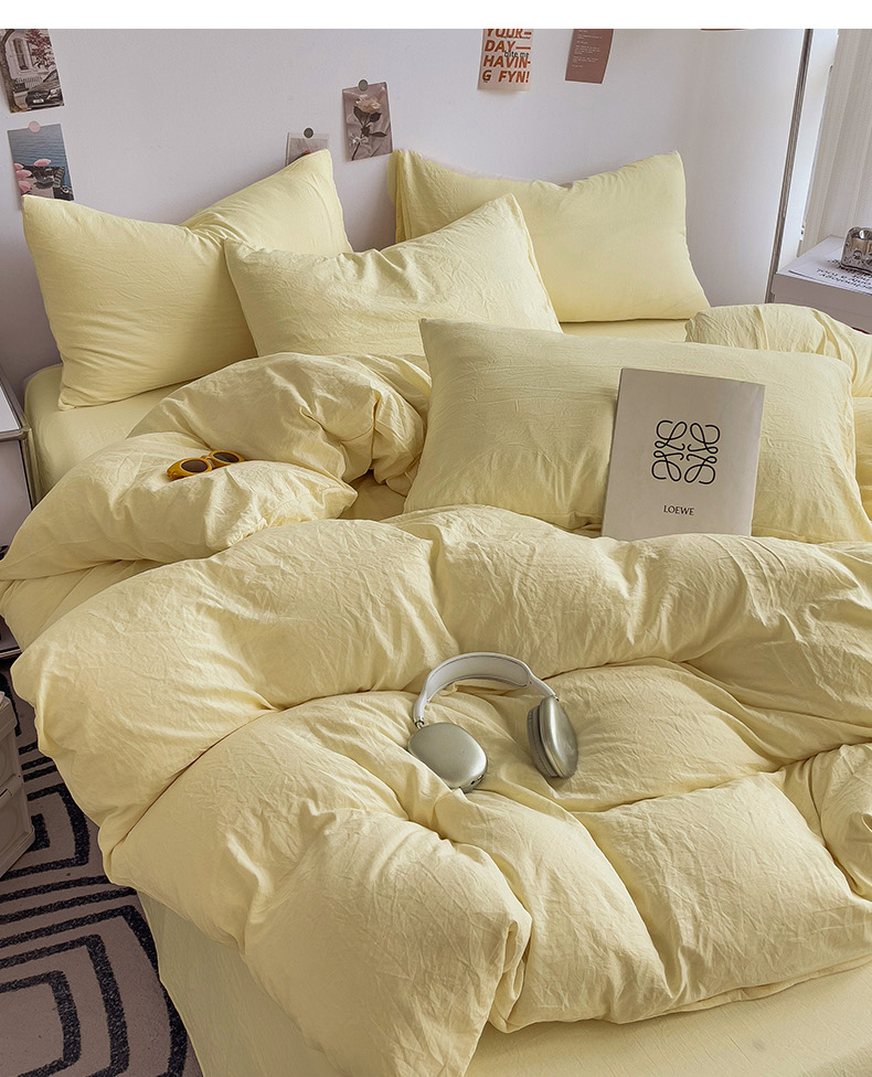 商品名称:韩巢家纺 2024新款日式ins风超柔褶皱亲肤水洗棉被套单件-纯色系列(提供卖家秀) 水洗棉奶黄