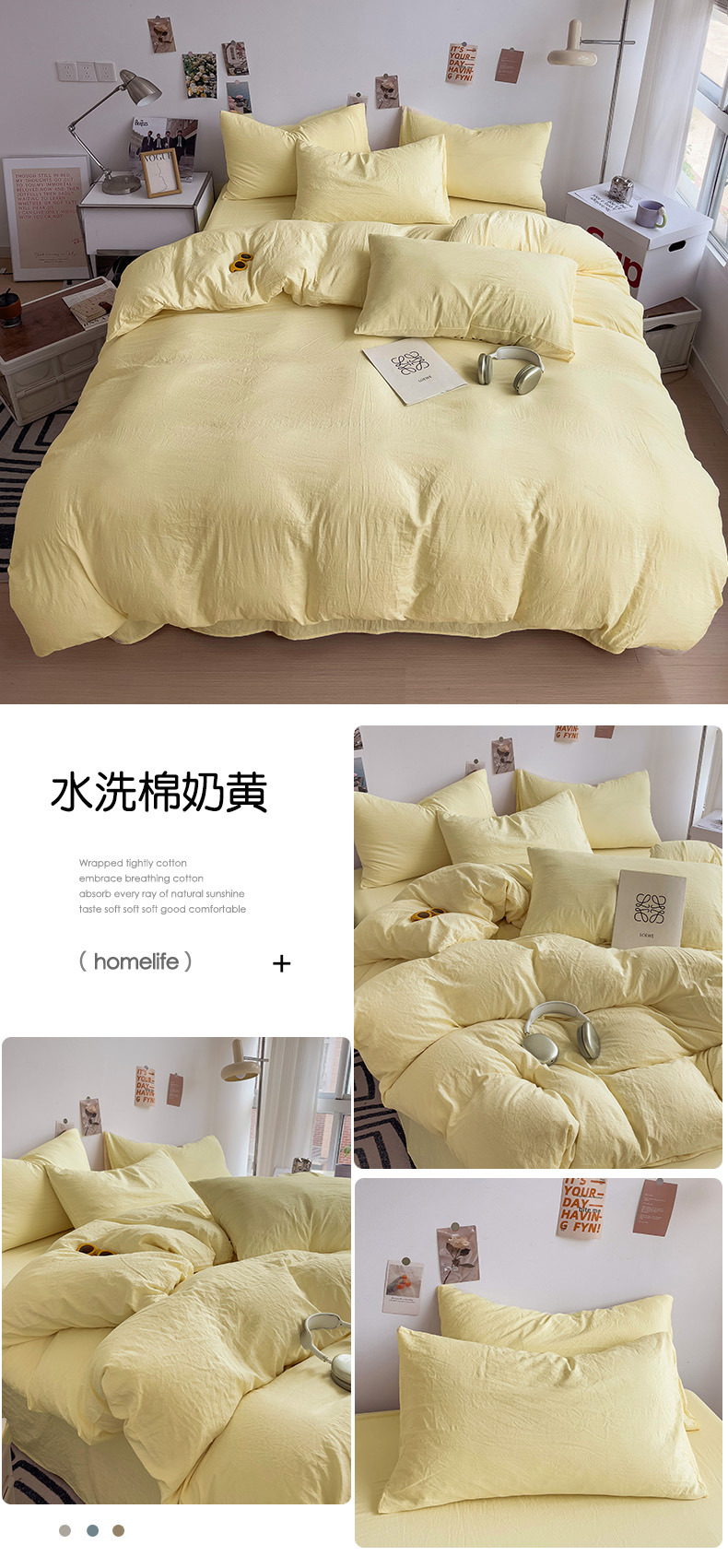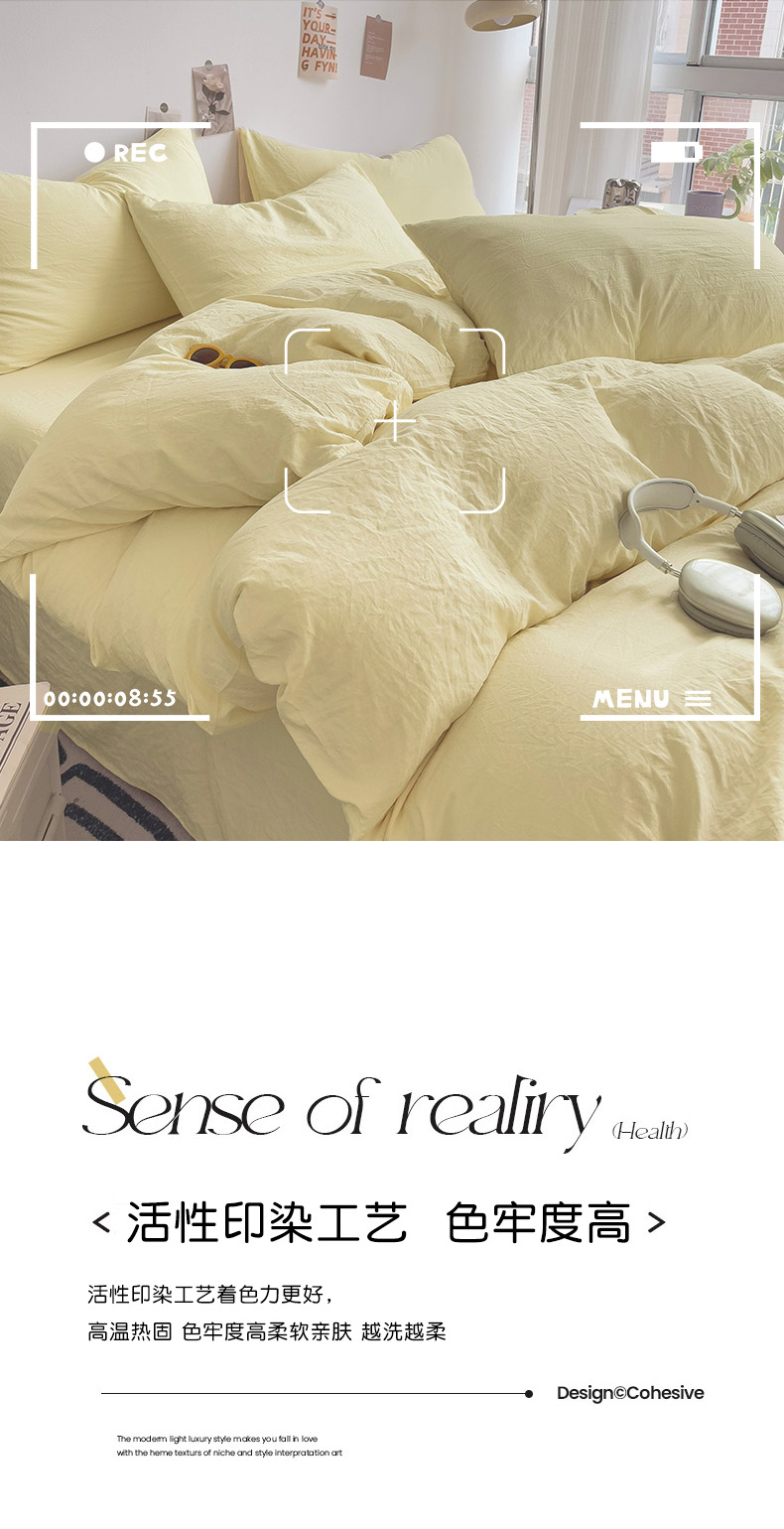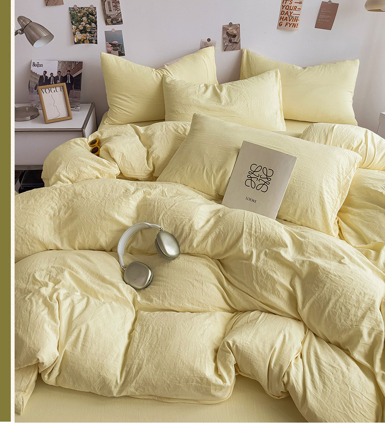 商品名称:韩巢家纺 2024新款日式ins风超柔褶皱亲肤水洗棉被套单件-纯色系列(提供卖家秀) 水洗棉奶黄