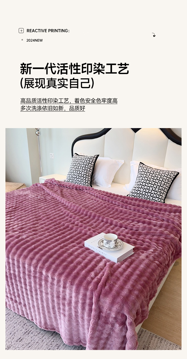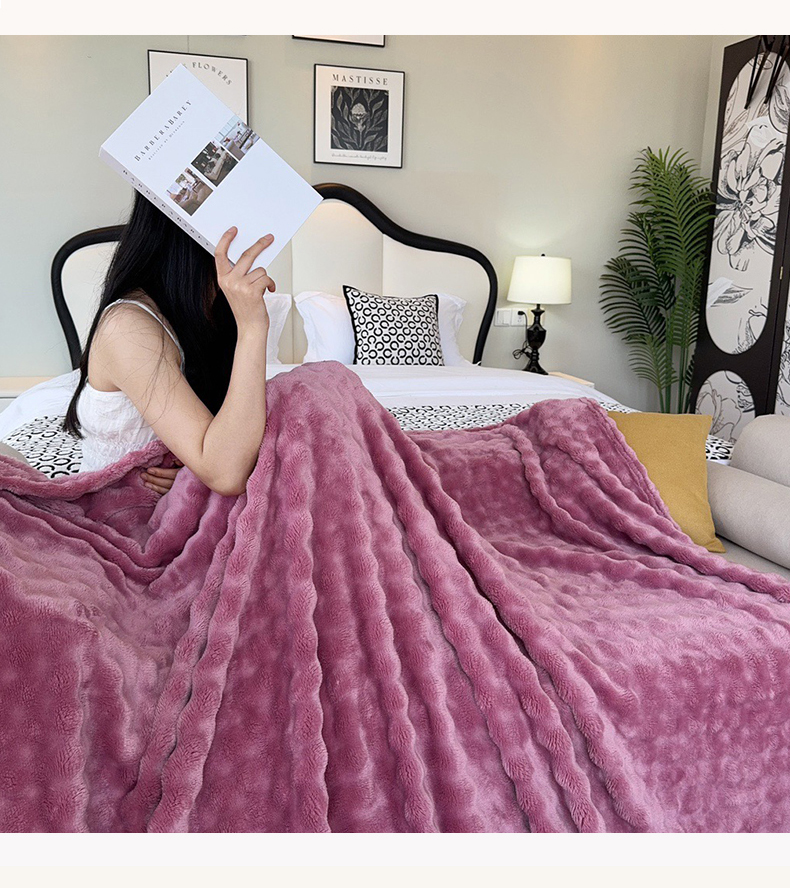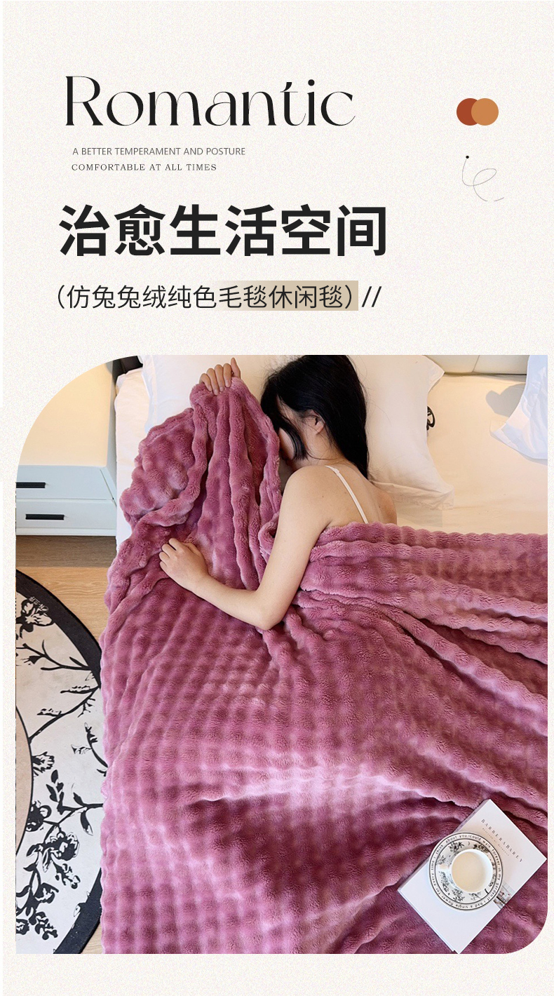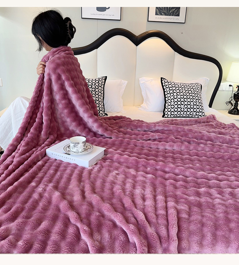 兜米家居 2024新款纯色仿兔毛泡泡毛毯牛奶绒毛毯午睡毯 木槿紫