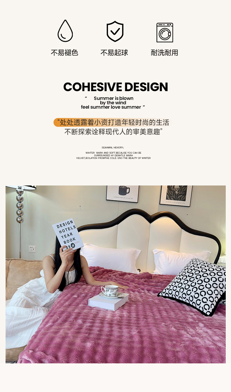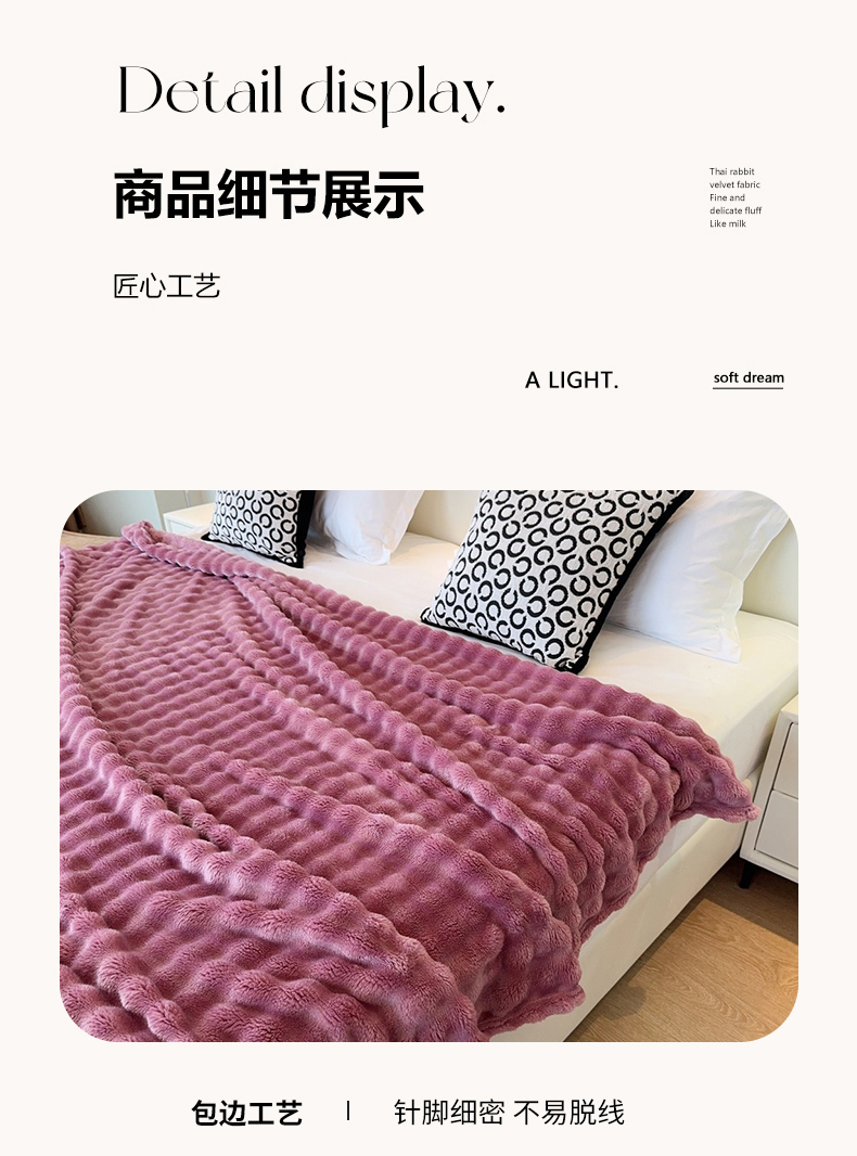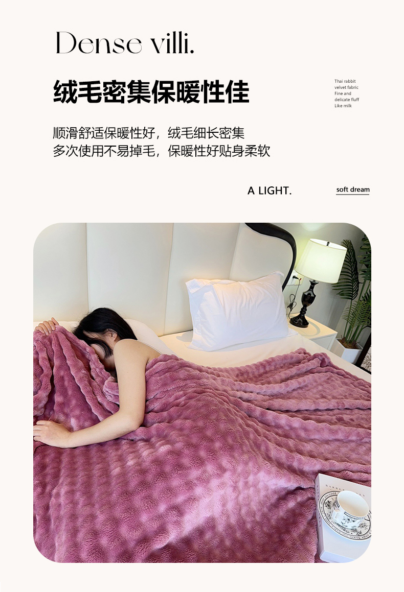 商品名称:兜米家居 2024新款纯色仿兔毛泡泡毛毯牛奶绒毛毯午睡毯 木槿紫