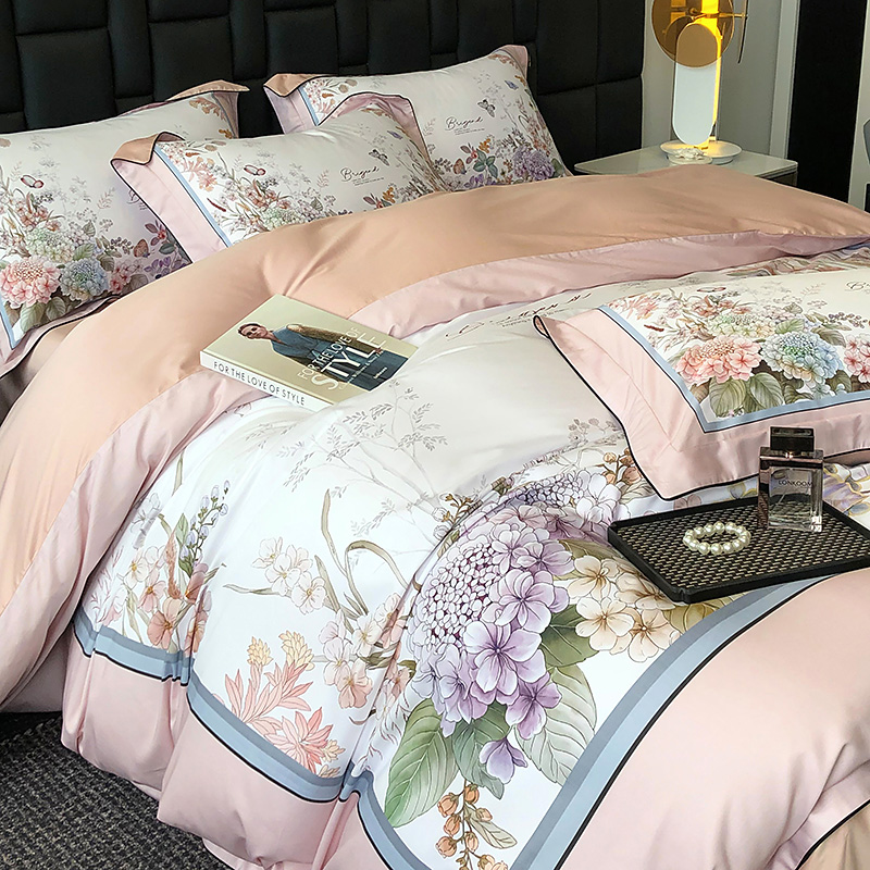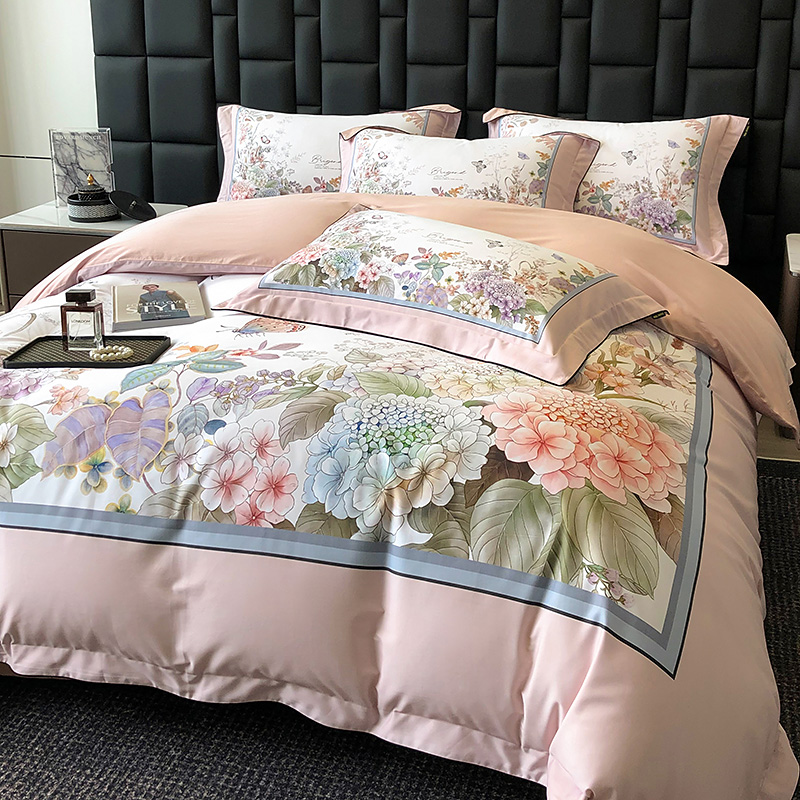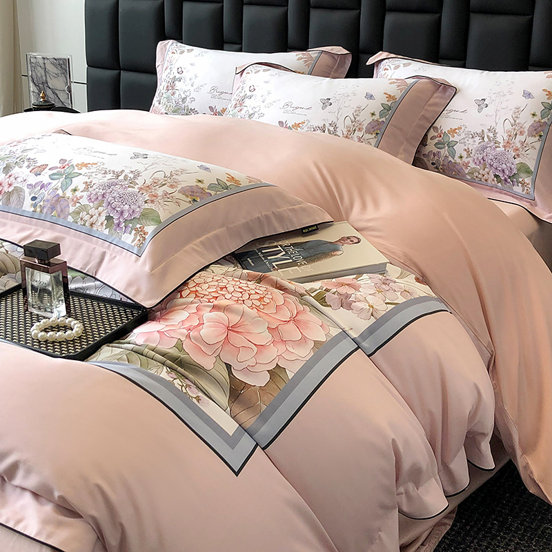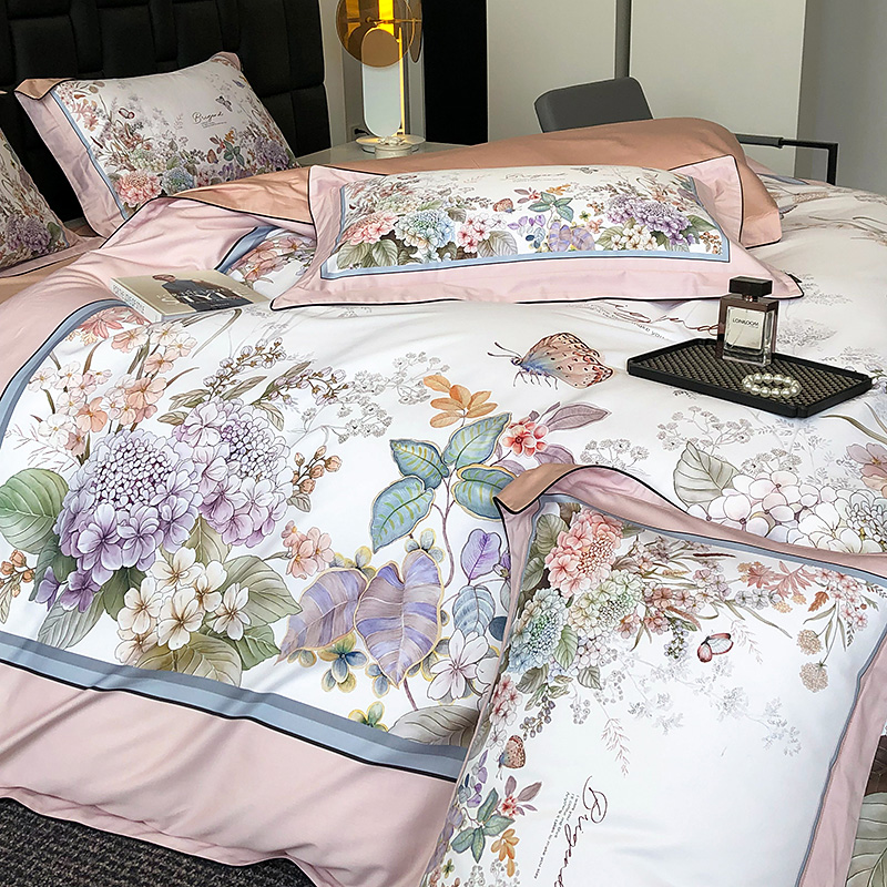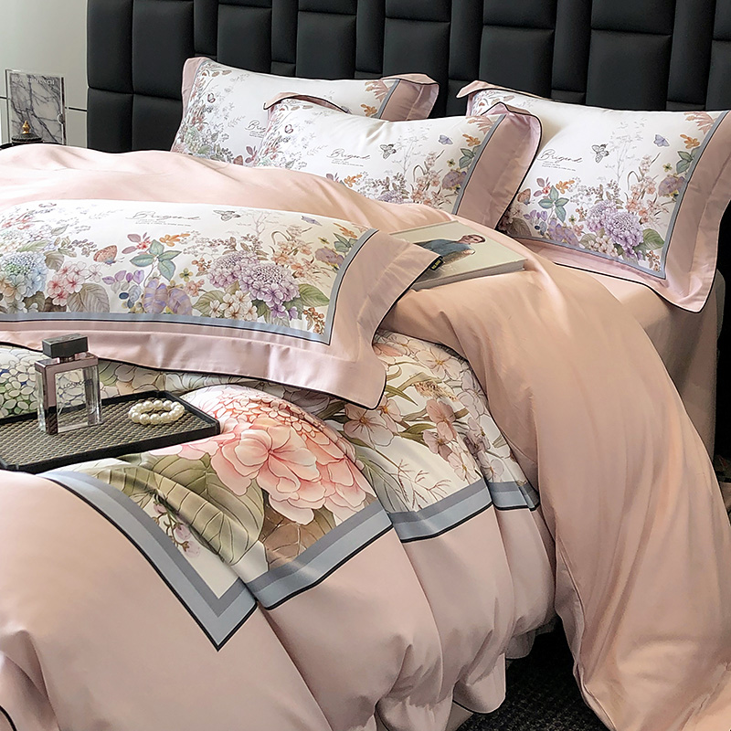 东方名伶 2024新款50S全棉数码印花长绒棉四件套陌上花开-粉,陌上花开-粉