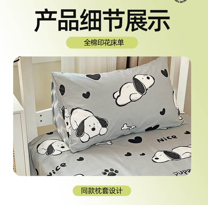 • 91家纺网 家纺一手货源 找家纺 名兮家居 2024新款学生床上下铺全棉床单  可爱萌宠