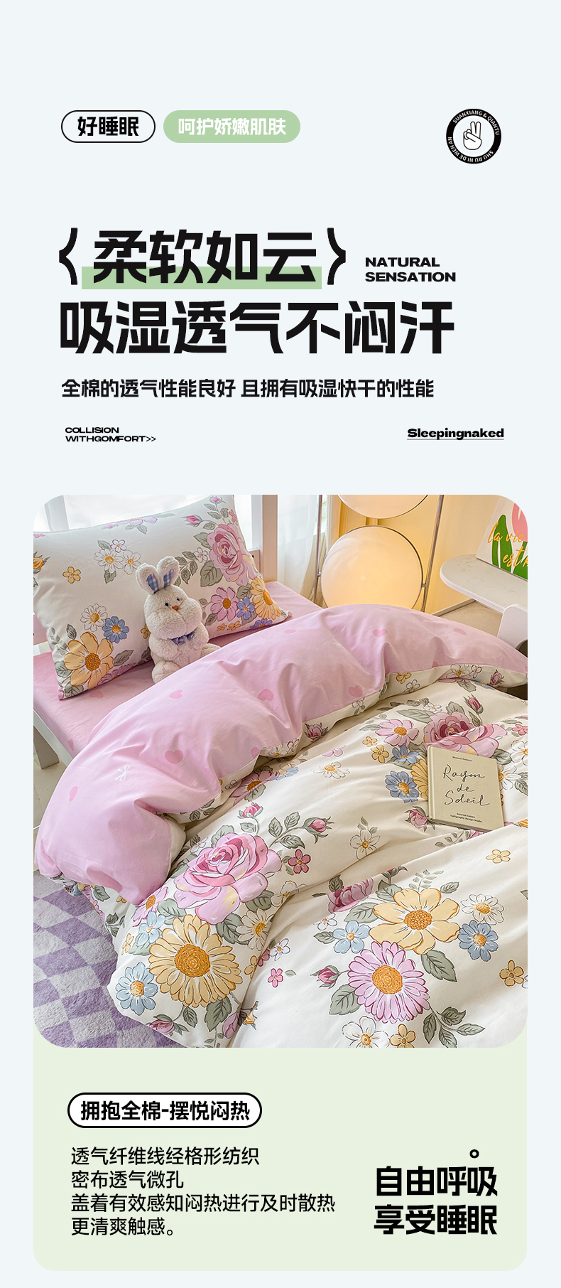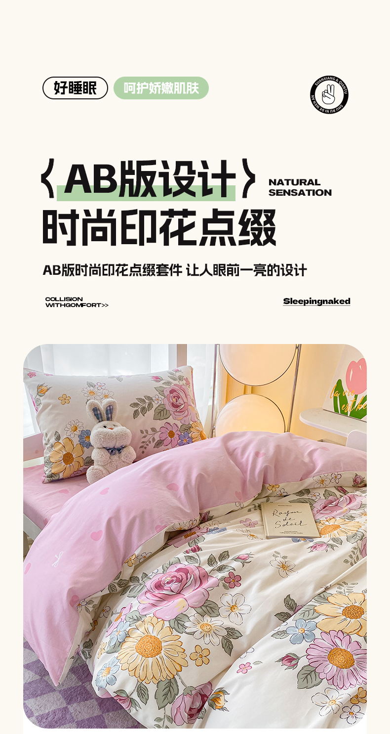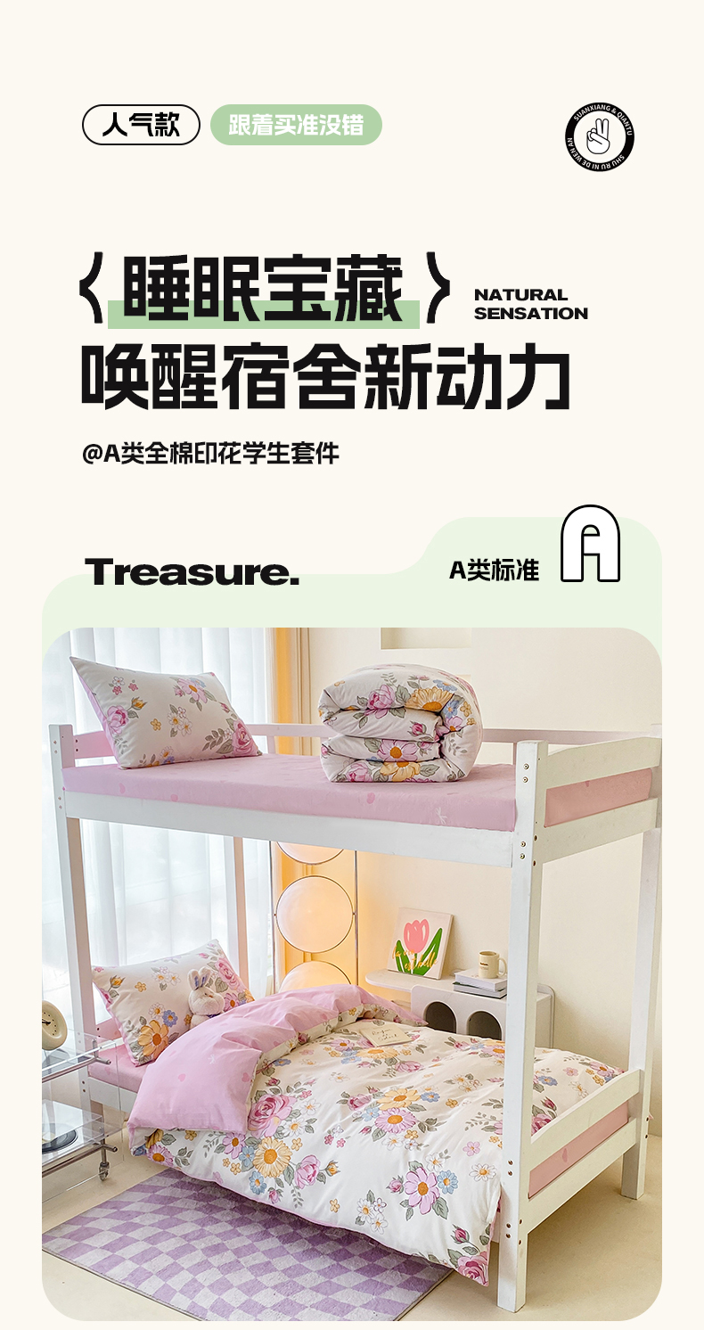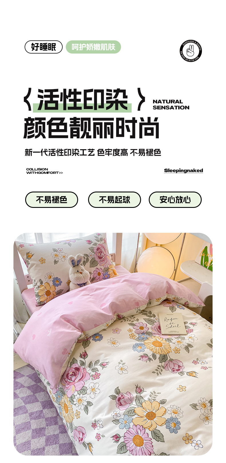 当前位置: 91家纺网 > 商品网购 > 床品套件 > 四件套 > 全棉活性四件套 > 寐眠 2024新款A类全棉印花学生三件套四件套 繁花锦簇