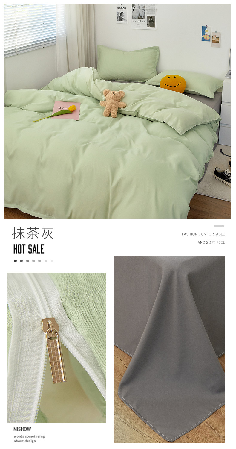 悦织湾家纺 2025新款纯色床单款芦荟棉四件套 抹茶灰