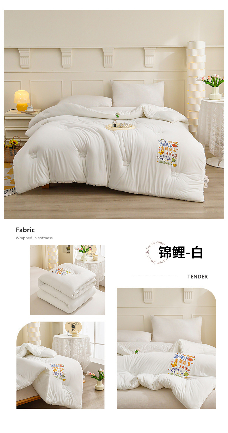 商品名称:有货 2024新款锦鲤针织被学生季学生被A类针织被纯色冬被春秋被 锦鲤-白