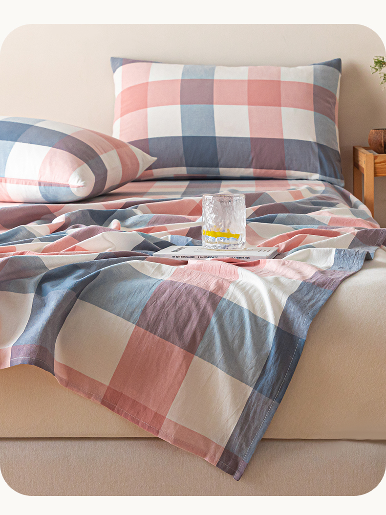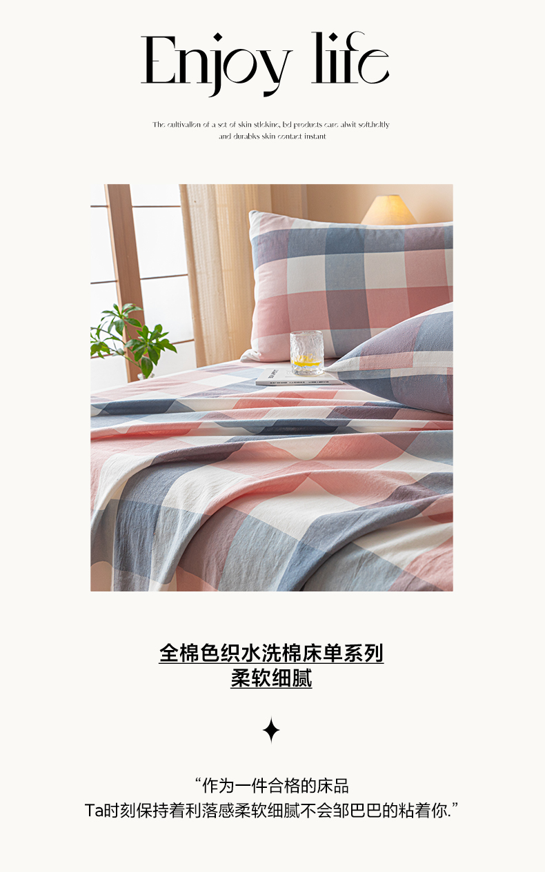 (总)卡伦家纺 2025新款全棉色织水洗棉单层宿舍学生床笠,错格咖,咖青年,蓝大格,蓝灰中格,牛仔蓝,浅蓝小格,绅士灰,英伦粉