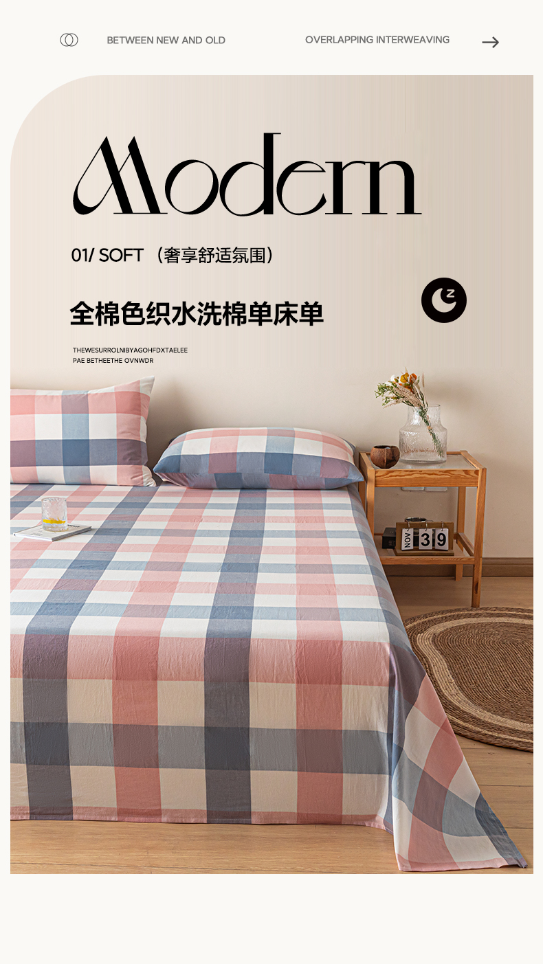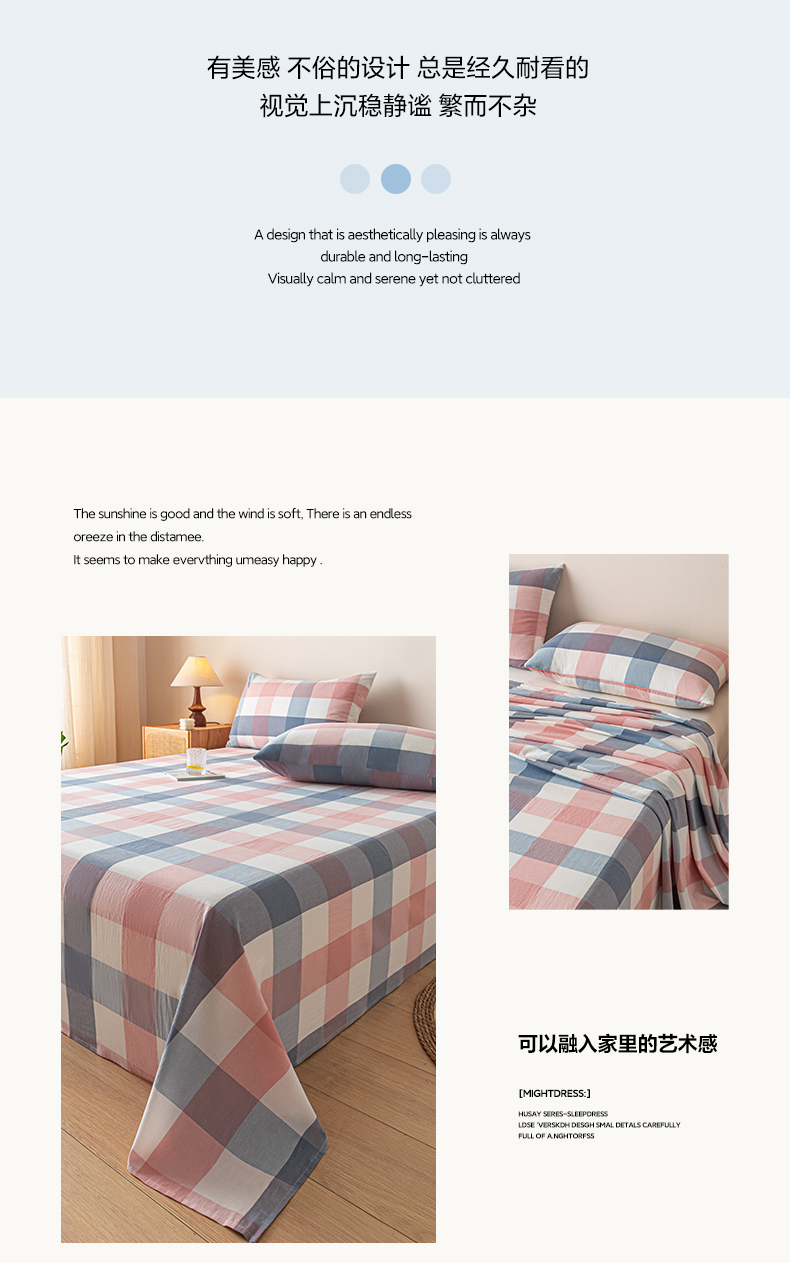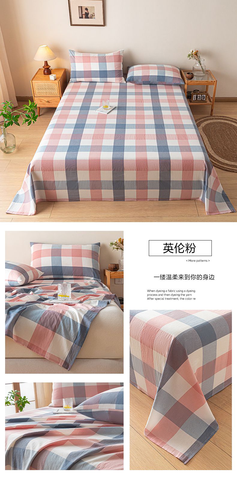 商品名称:卡伦家纺 2025新款全棉色织水洗棉床单学生宿舍单人双人床单系列英伦粉