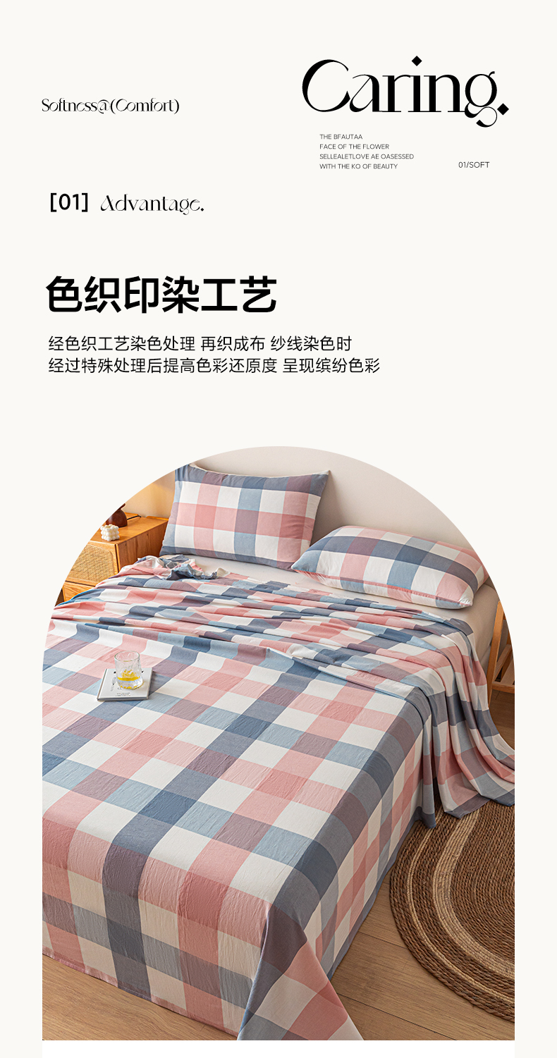 卡伦家纺 2025新款全棉色织水洗棉床单学生宿舍单人双人床单系列英伦粉