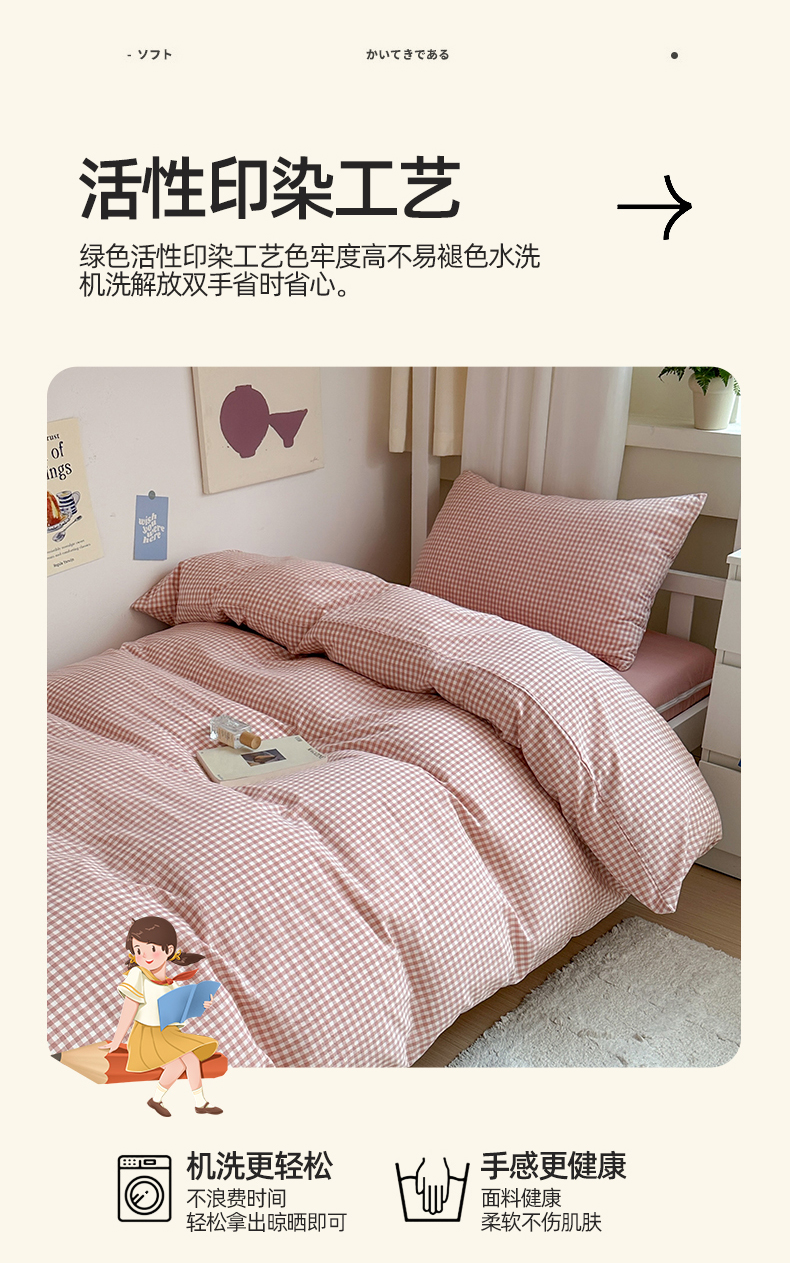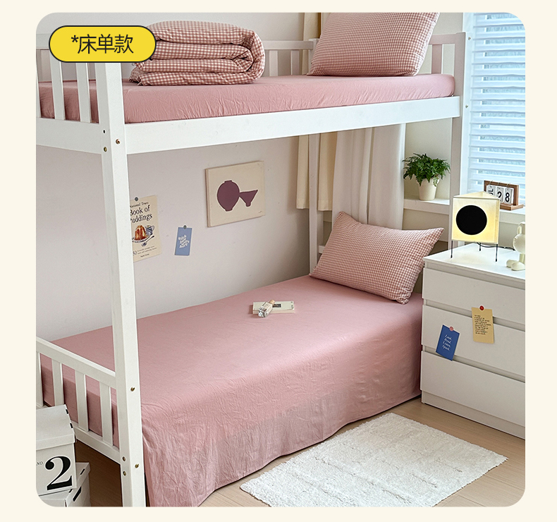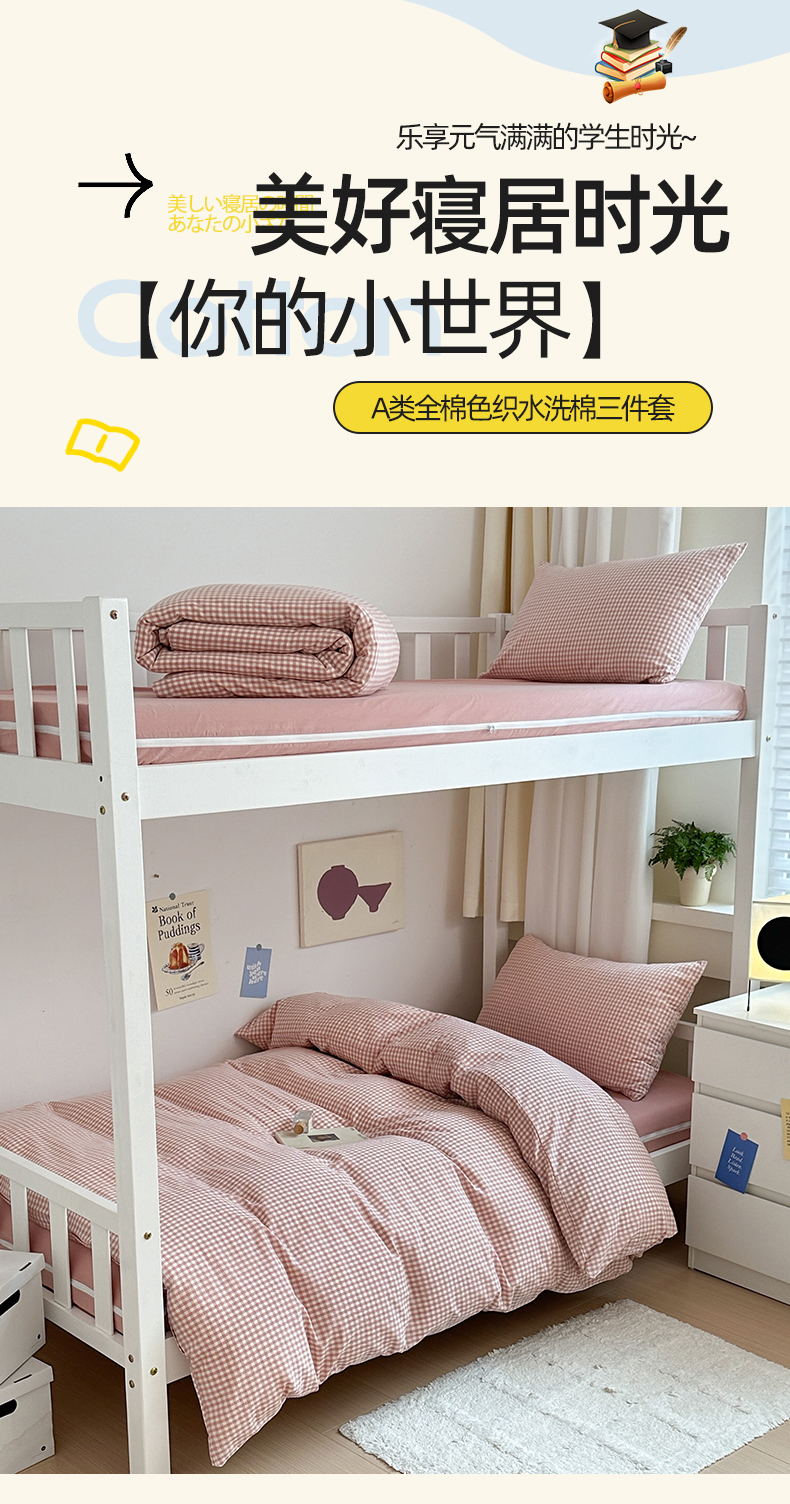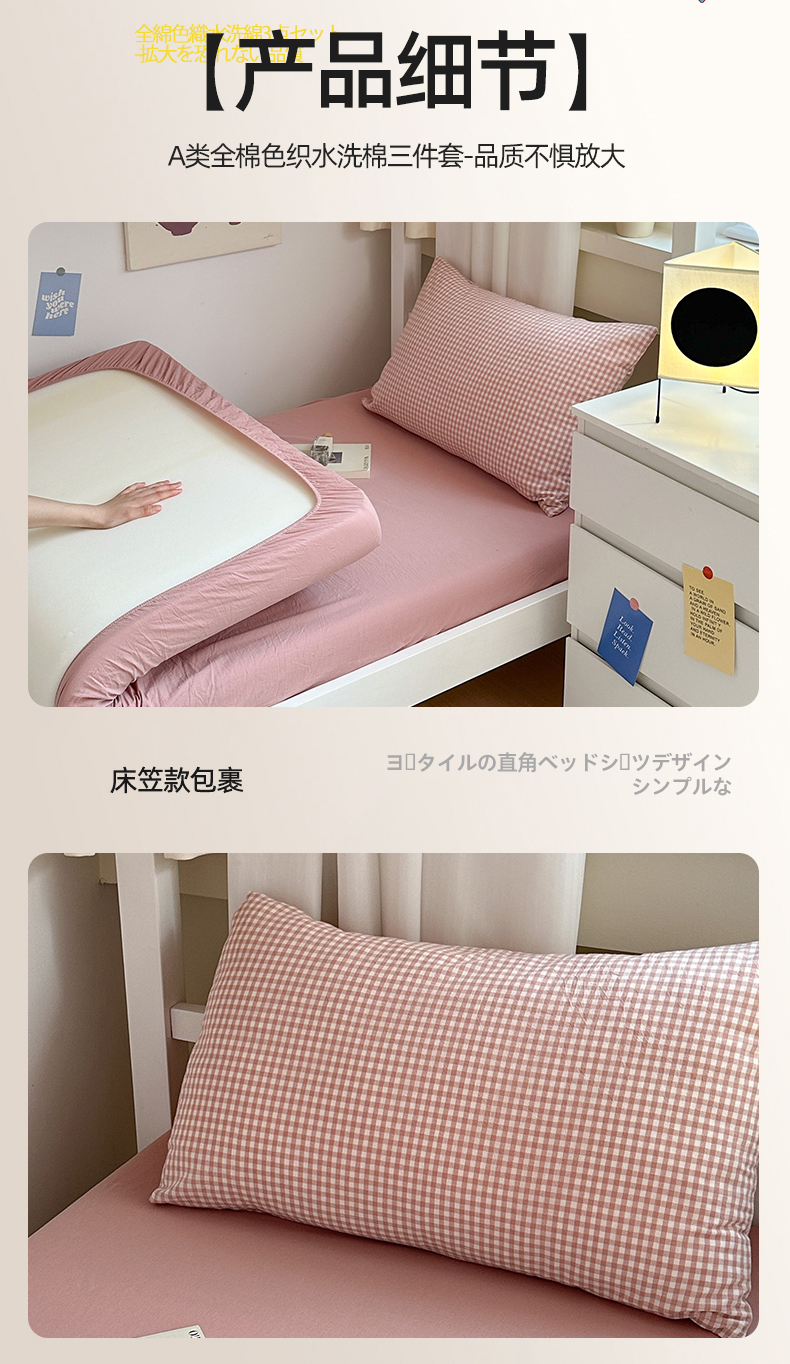 当前位置: 91家纺网 > 商品网购 > 床品套件 > 三件套 > 北欧良品 2024新款A类全棉色织水洗棉学生三件套 小小格粉