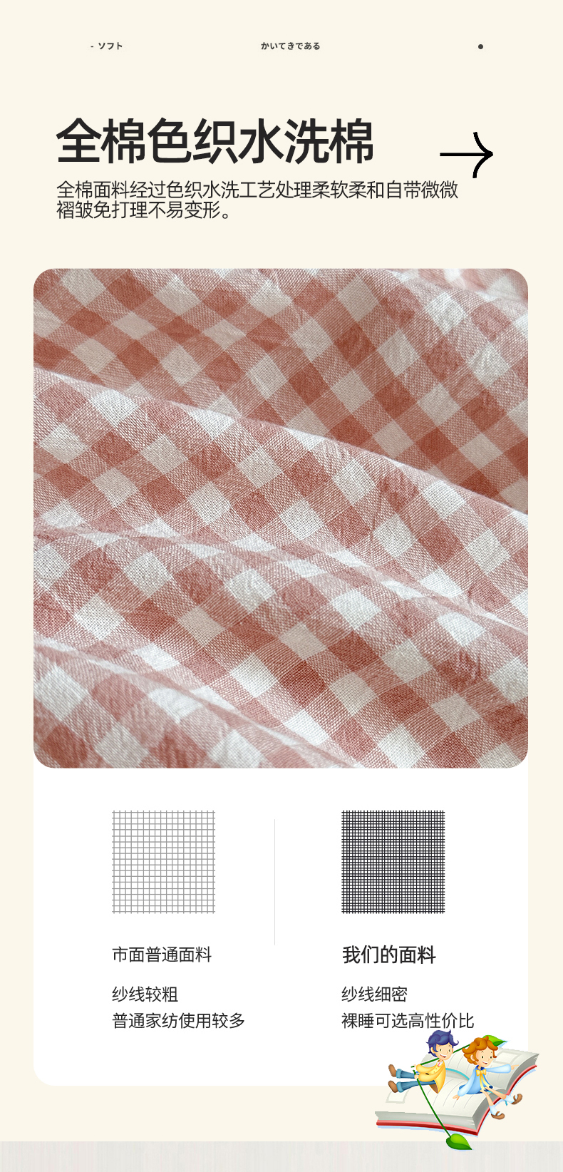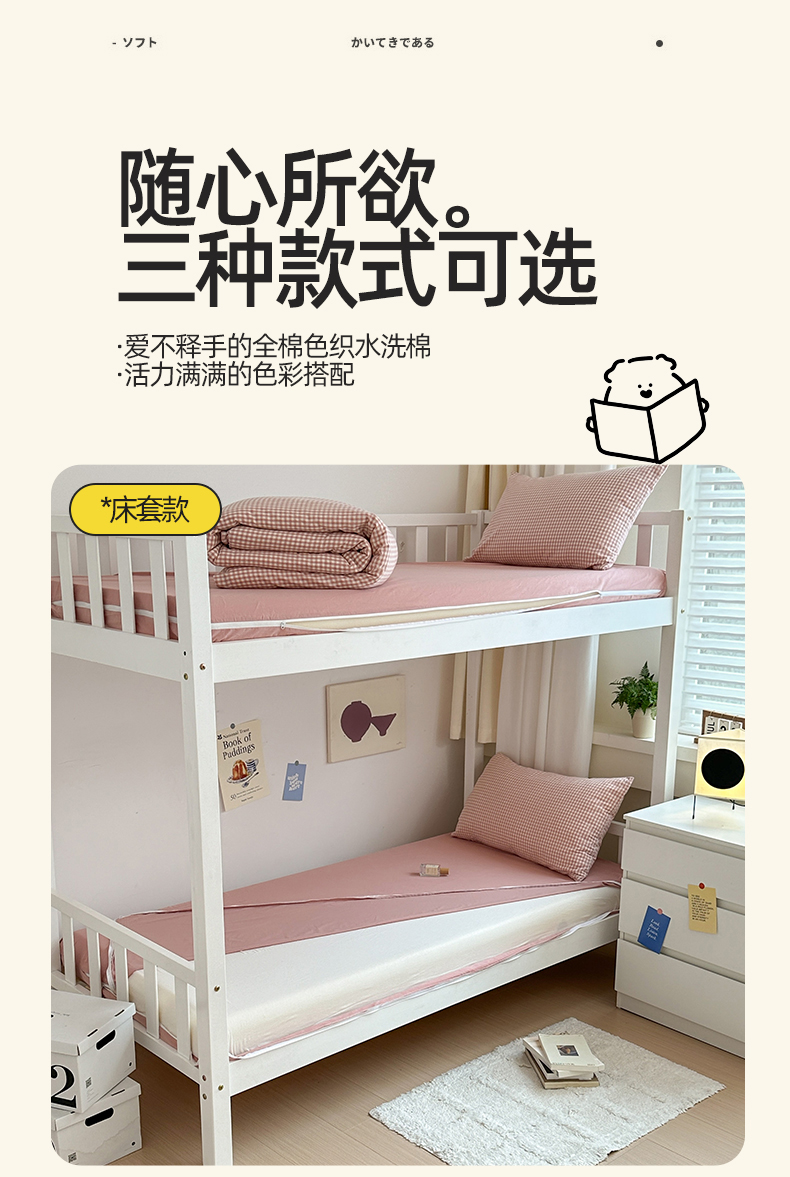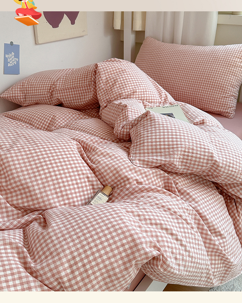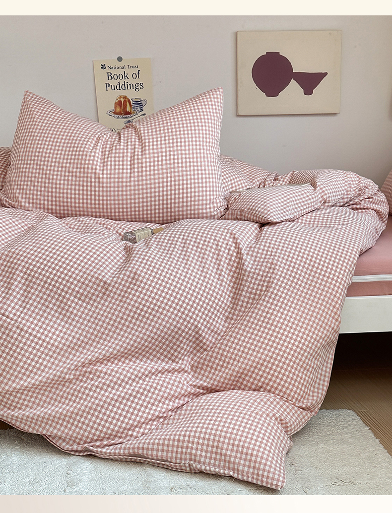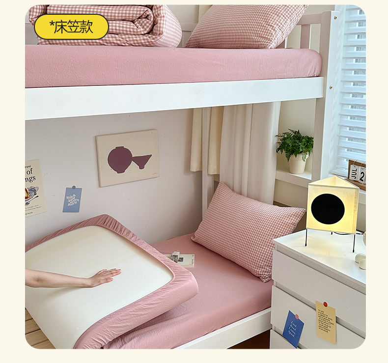 当前位置: 91家纺网 > 商品网购 > 床品套件 > 三件套 > 北欧良品 2024新款A类全棉色织水洗棉学生三件套 小小格粉