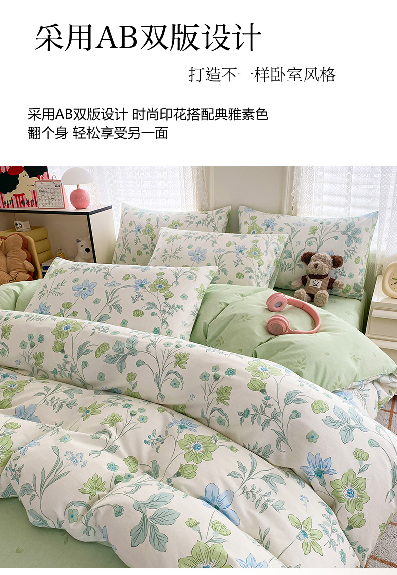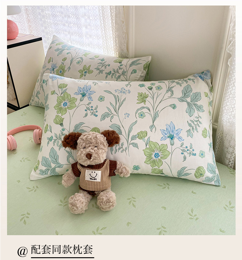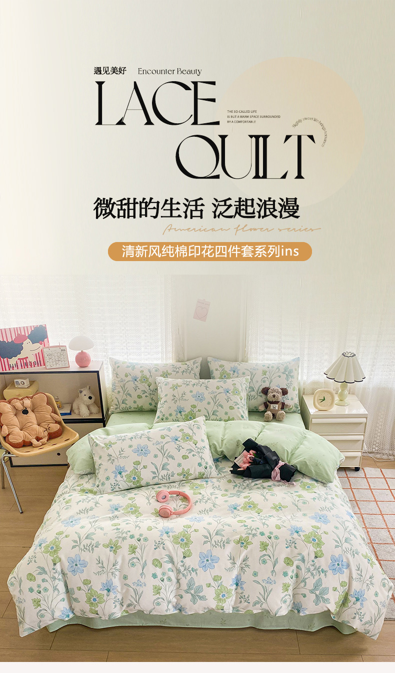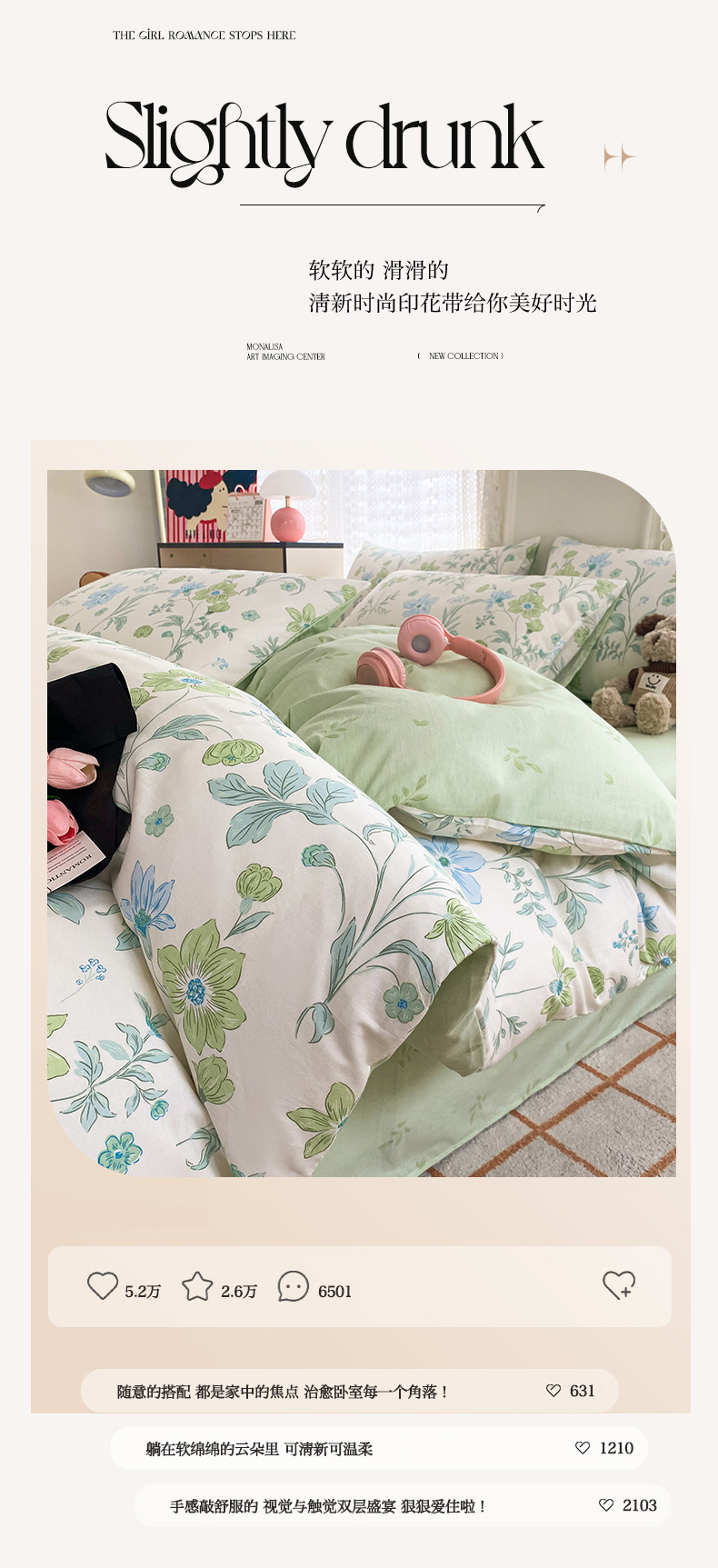 倾慕家纺 2024新款ins清新风纯棉印花四件套系列 春水雨漫