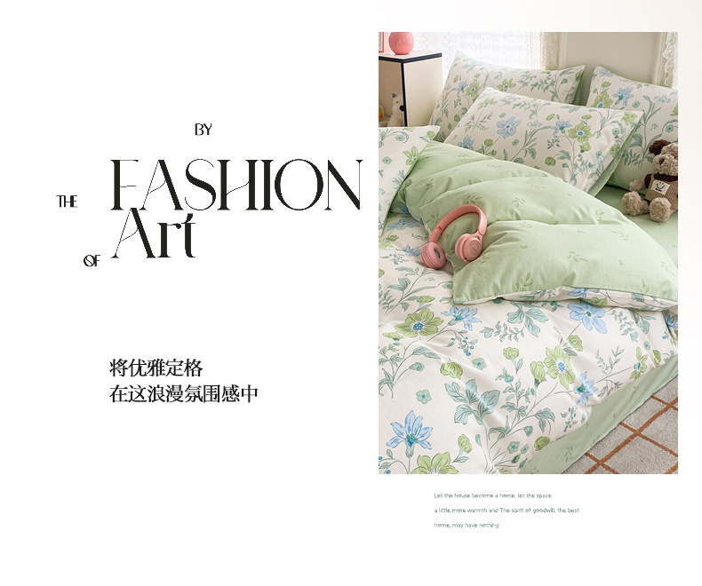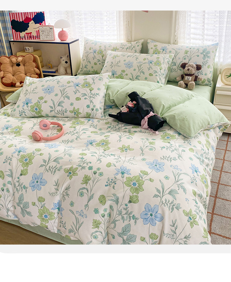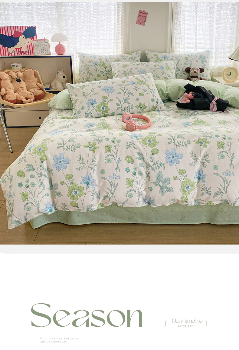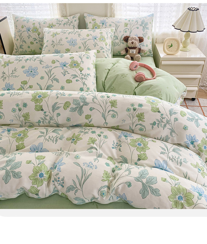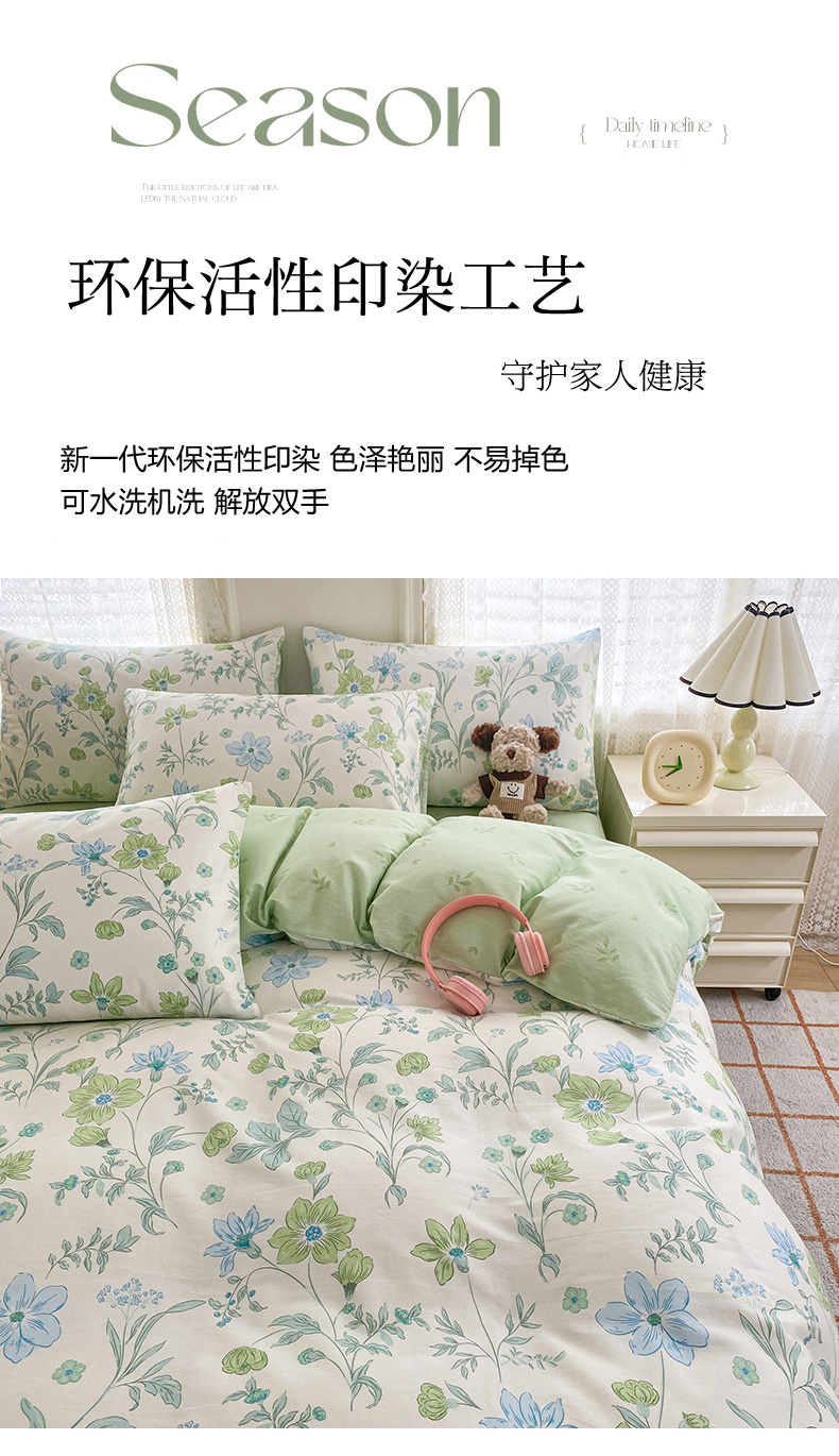 倾慕家纺 2024新款ins清新风纯棉印花四件套系列 春水雨漫