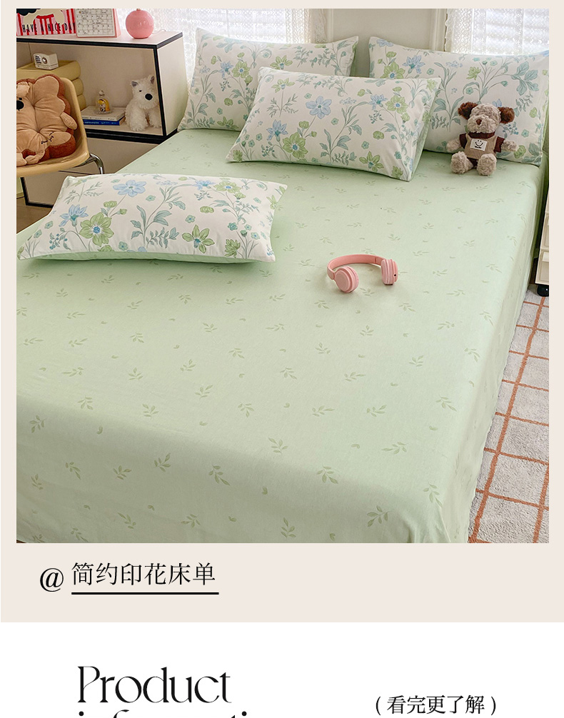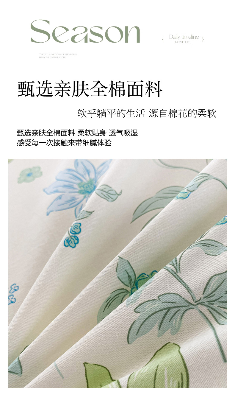 商品名称:倾慕家纺 2024新款ins清新风纯棉印花四件套系列 春水雨漫