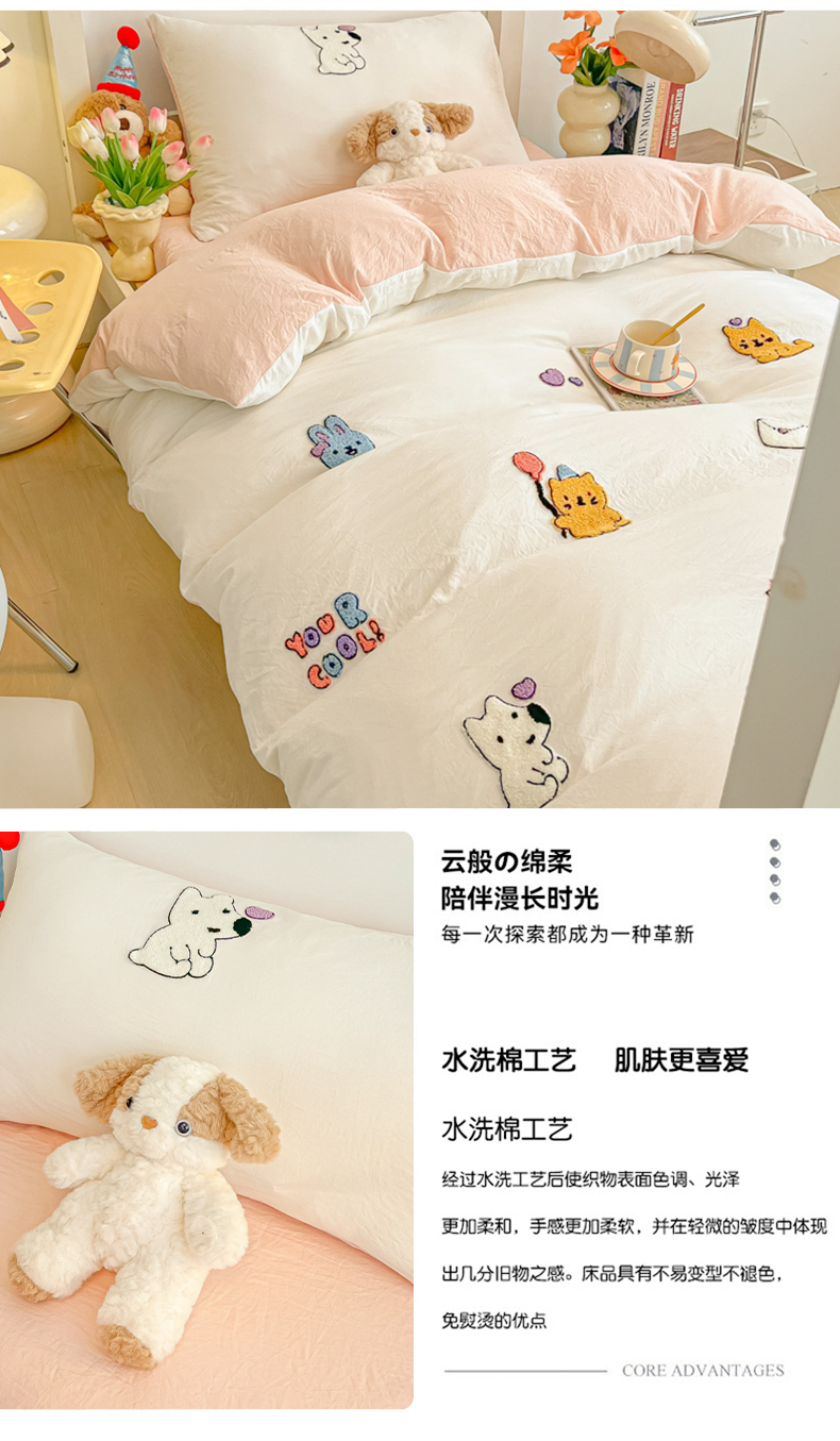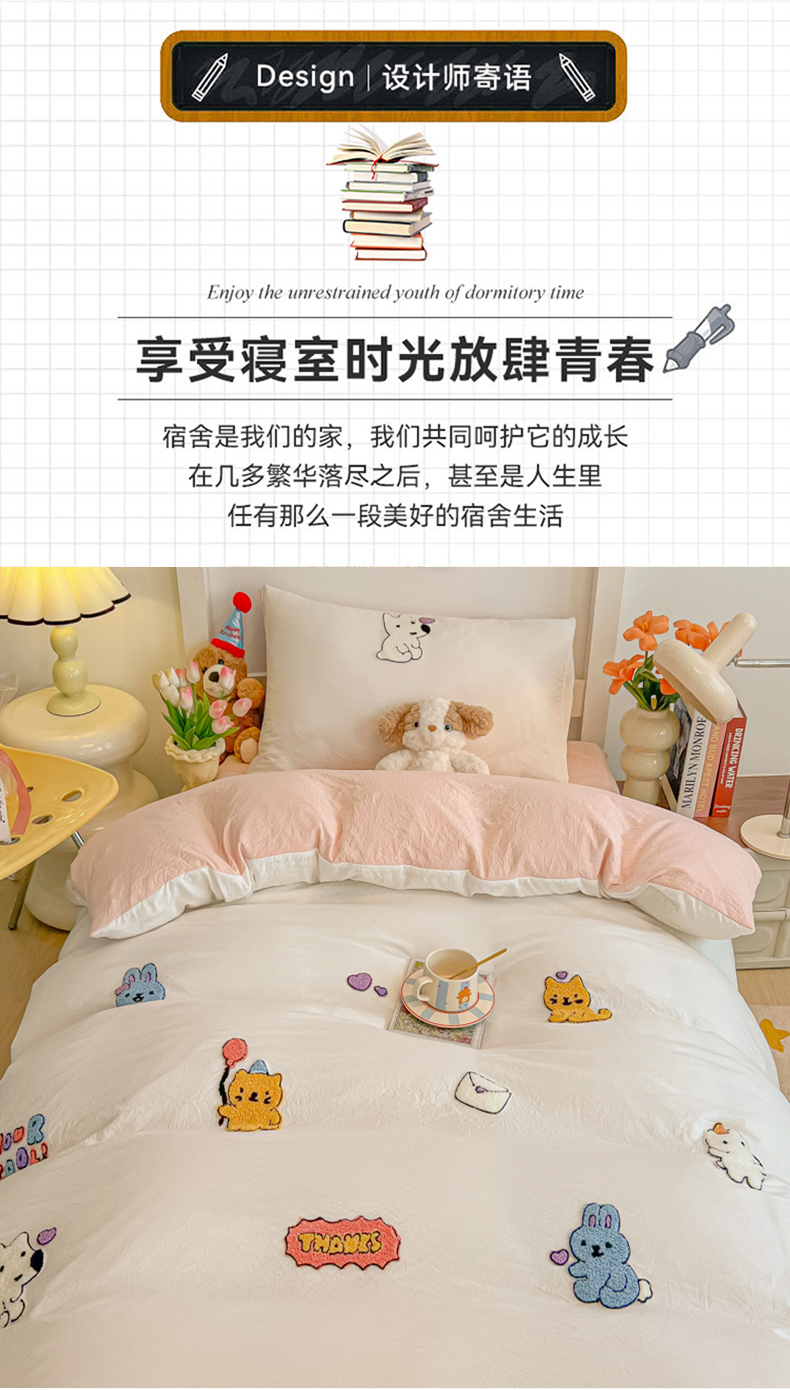 当前位置: 91家纺网 > 商品网购 > 床品套件 > 三件套 > 韩巢家纺 2024新款学生宿舍寝室上下铺超柔水洗棉床单被套三件套-动物乐园 动物乐园白浅粉