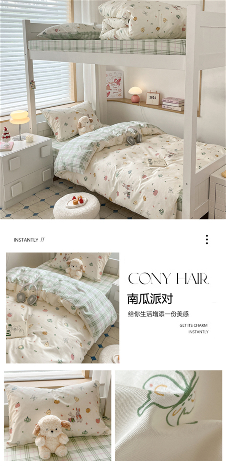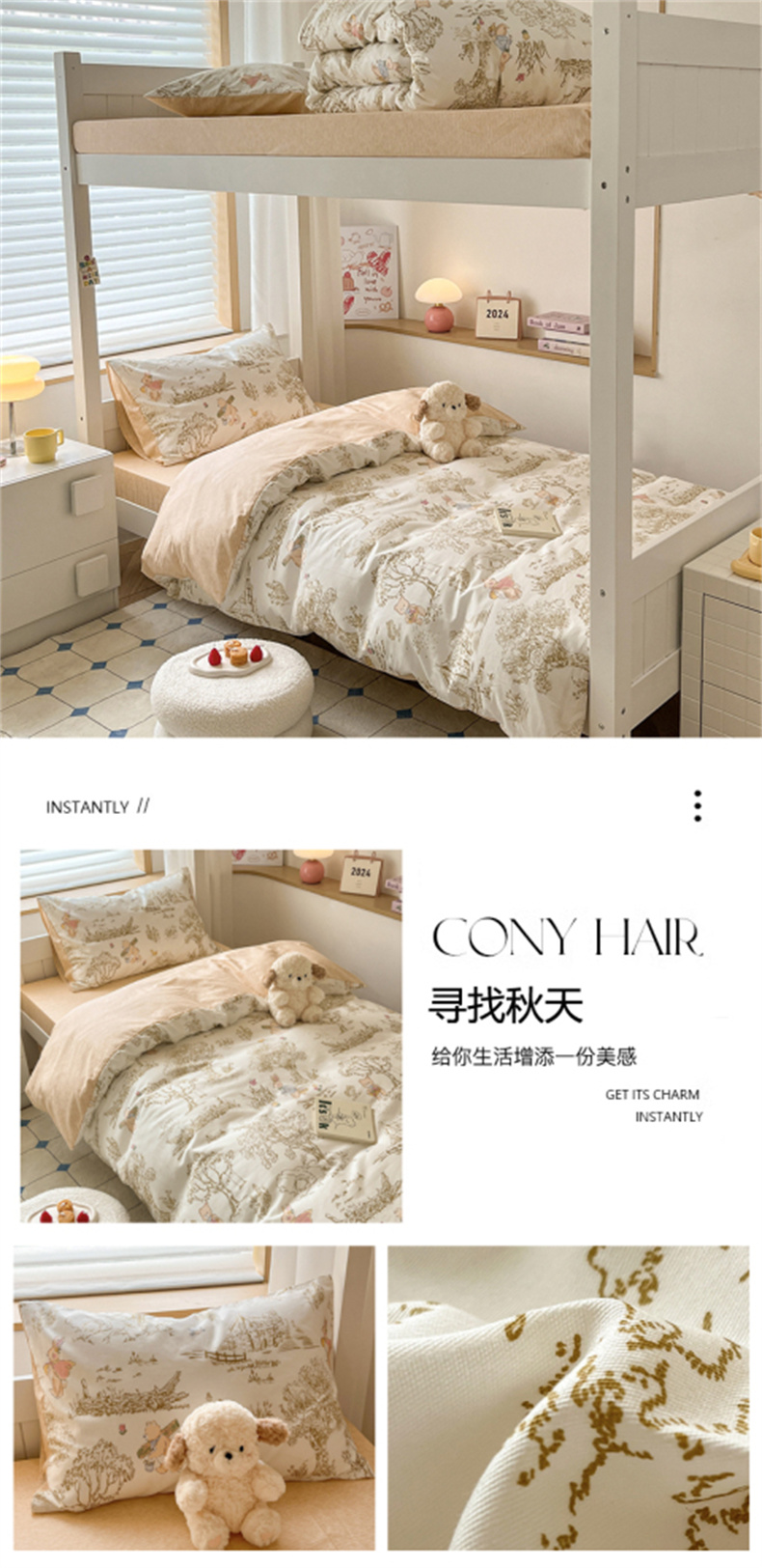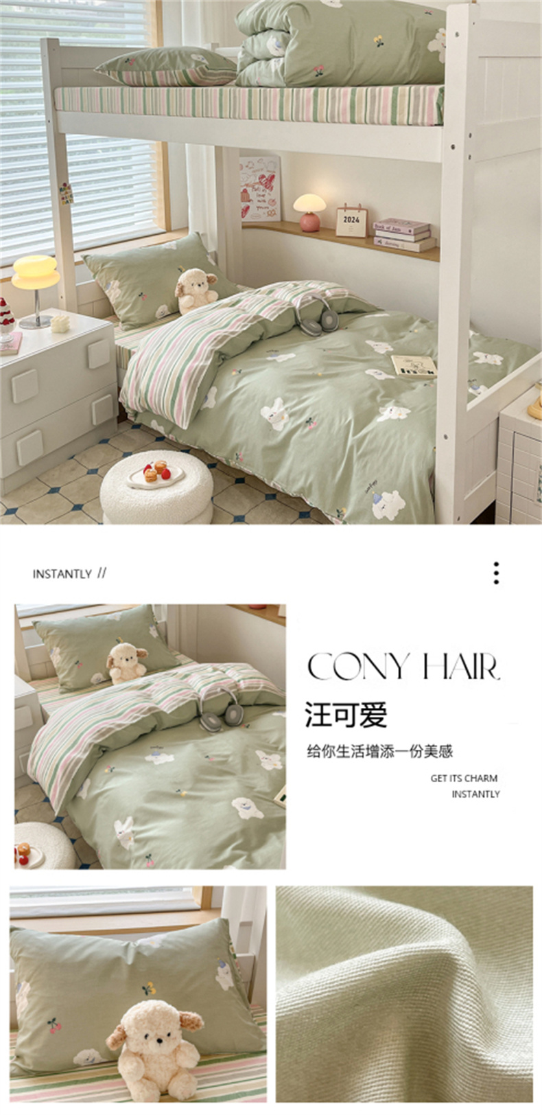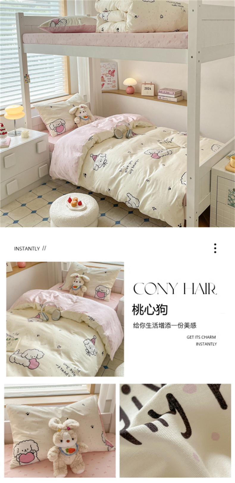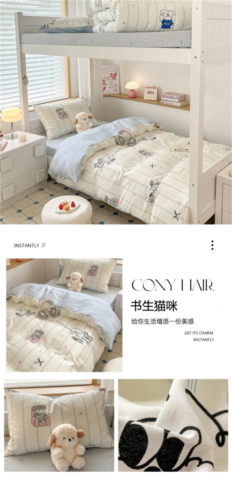 (总)慕尚家纺 2025新款全棉印花学生三件套套件,艾米熊,彩色爱心狗,铃兰花,美食派对,萌宠乐园,书生猫咪,桃心狗,汪可爱,旺旺,樱桃