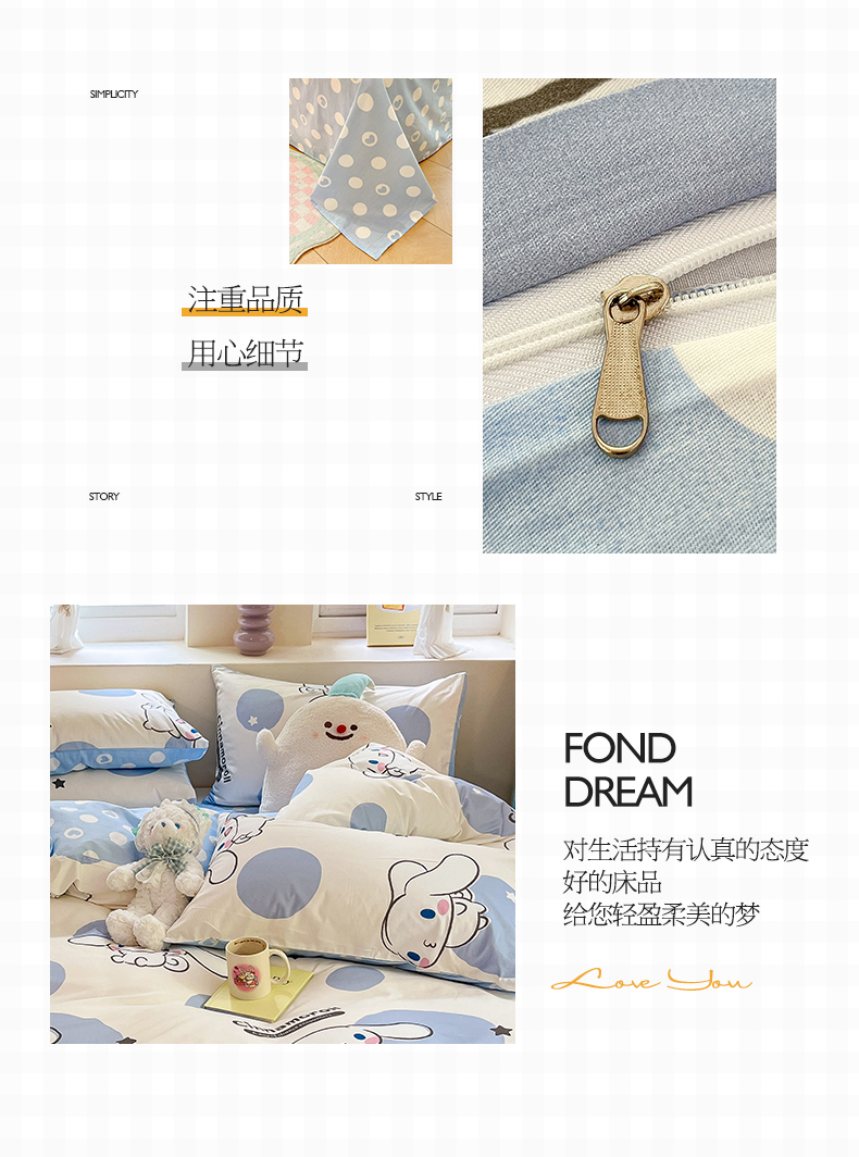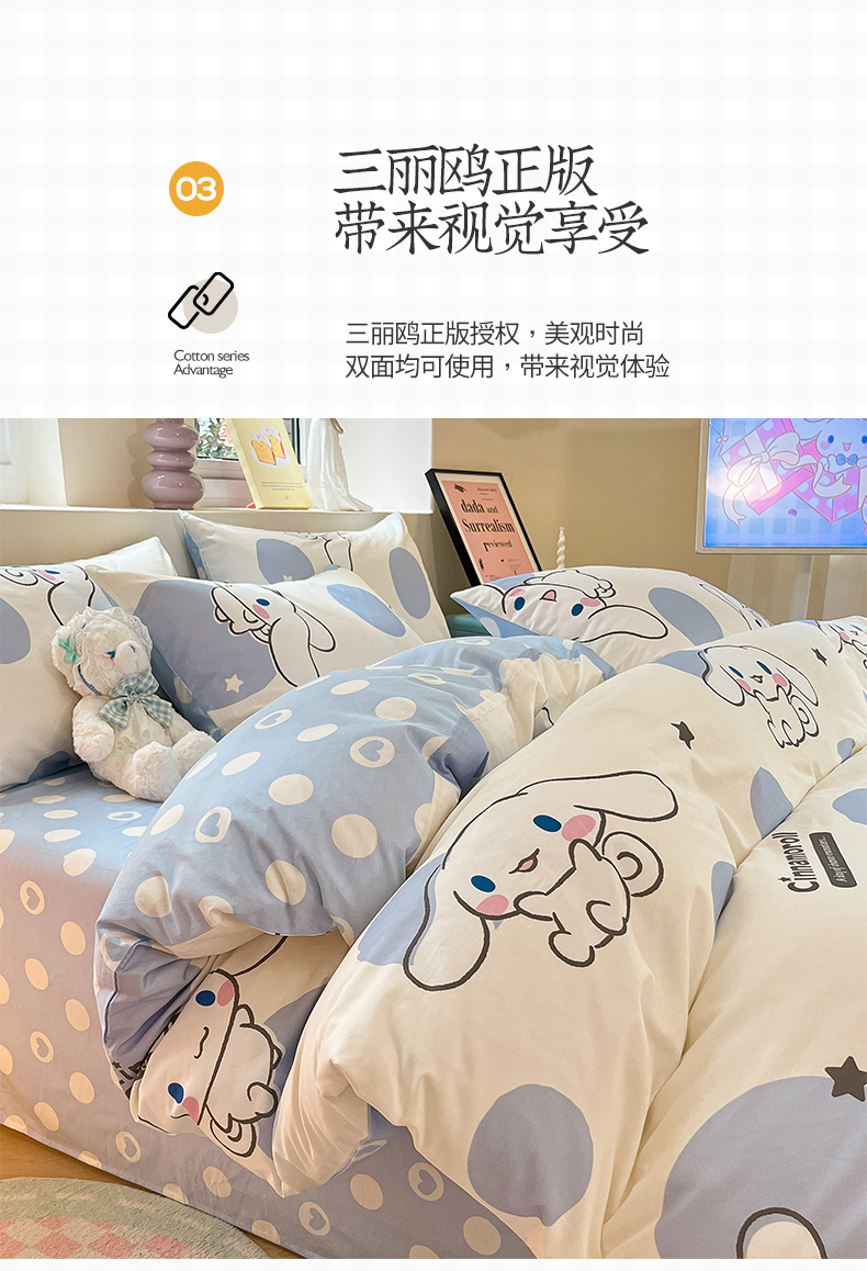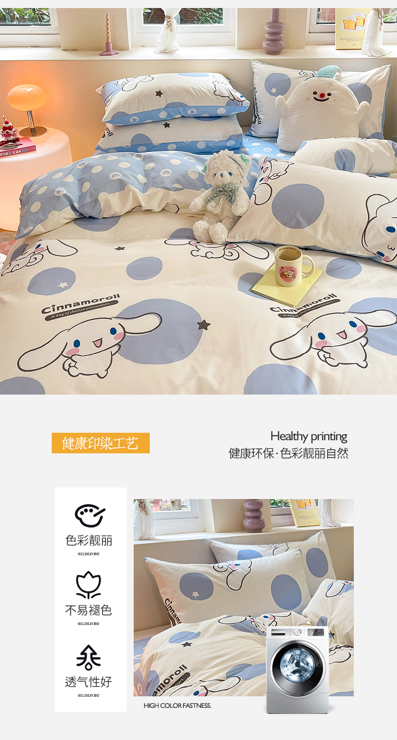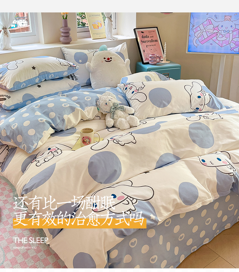 当前位置: 91家纺网 > 商品网购 > 床品套件 > 四件套 > 全棉普通四件套 > 桃子家居 2024新款三丽鸥正版授权卡通纯棉印花系列四件套 棉三丽鸥-波点玉桂狗