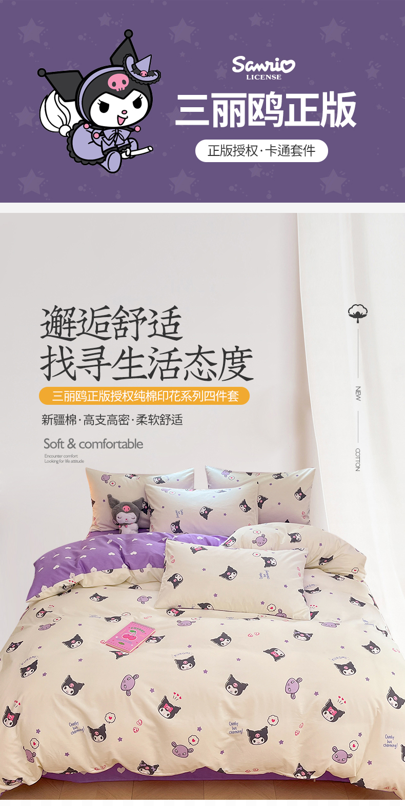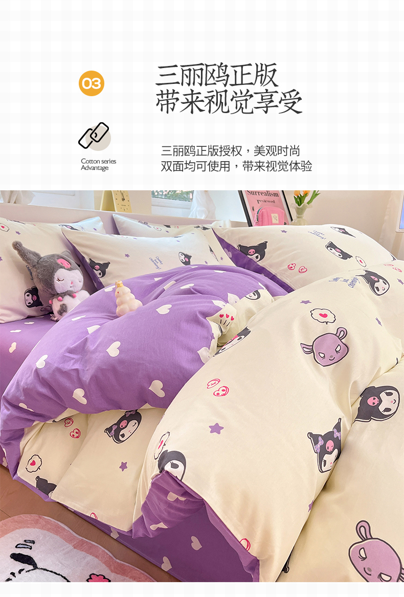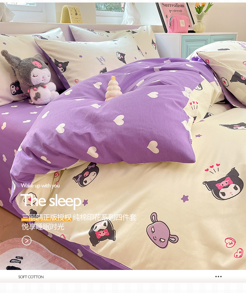 当前位置: 91家纺网 > 商品网购 > 床品套件 > 四件套 > 全棉普通四件套 > 桃子家居 2024新款三丽鸥正版授权卡通纯棉印花系列四件套 棉三丽鸥-迷你库洛米