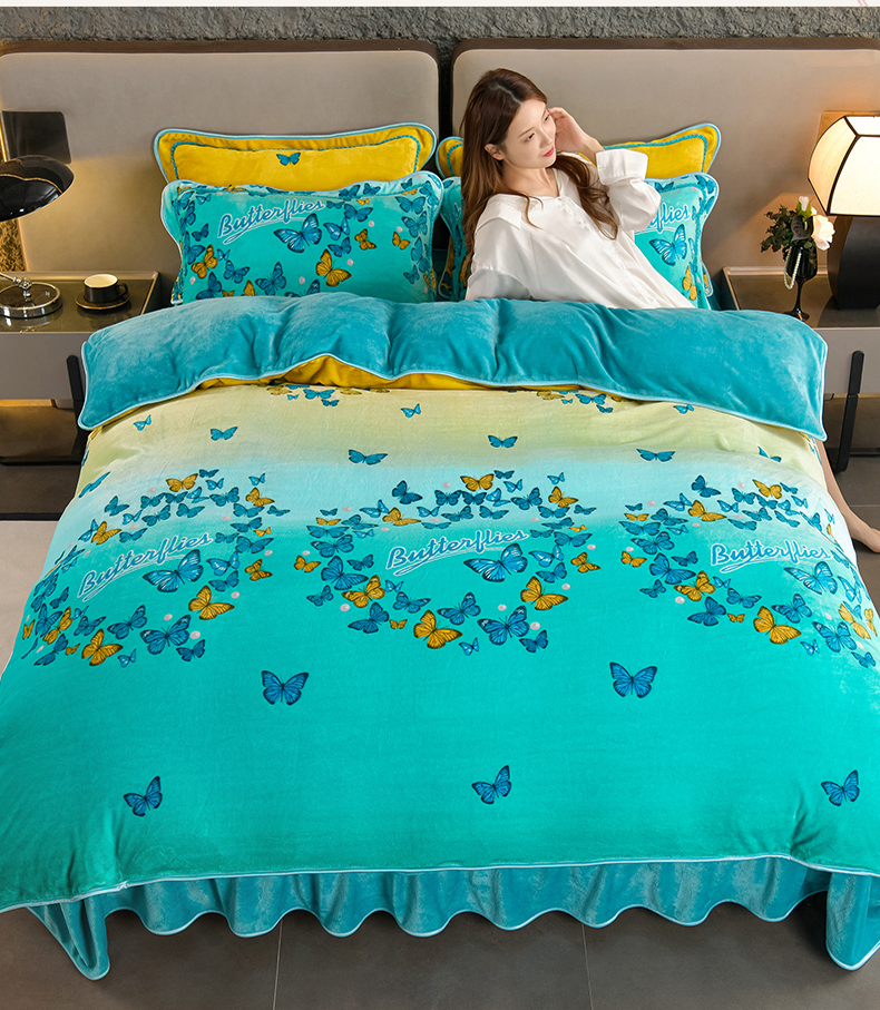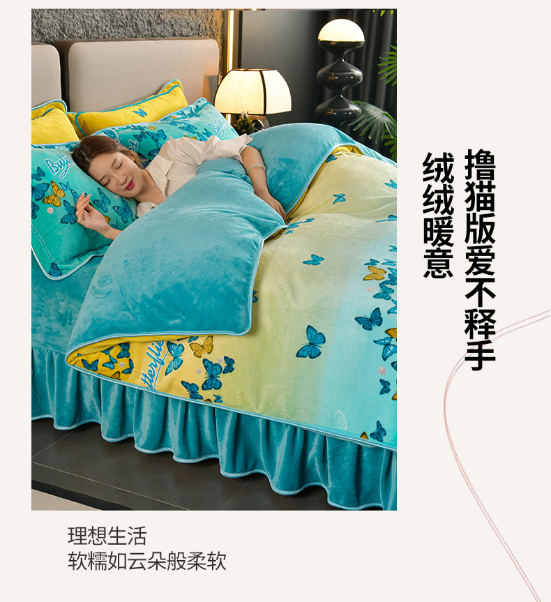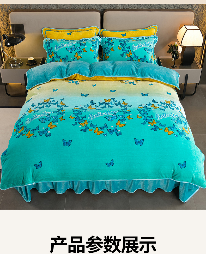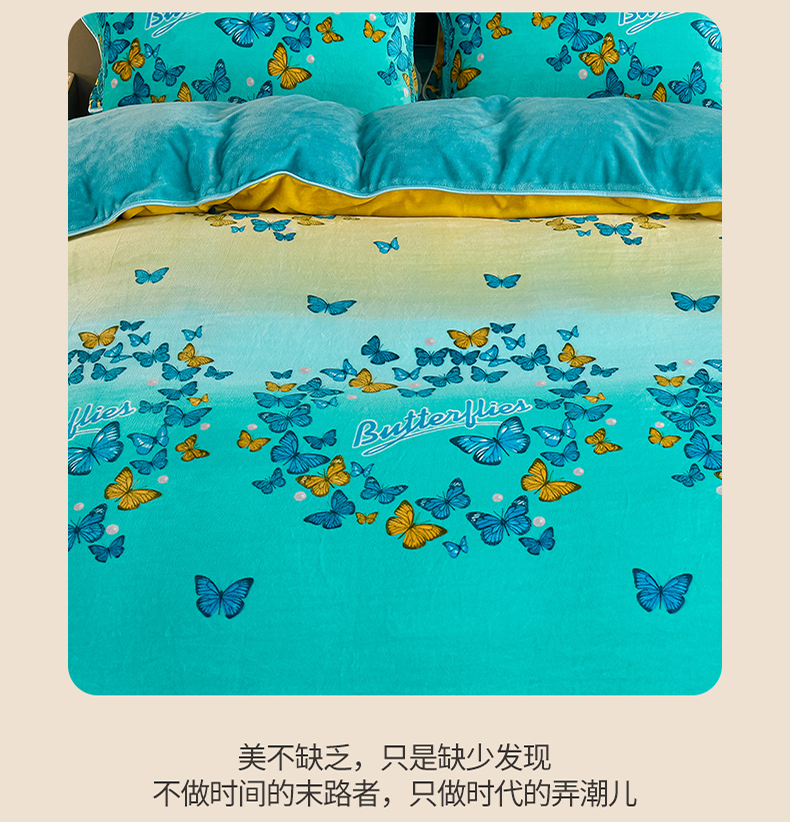 商品名称:紫月轩2024新款日产2万套高克重8.5斤牛奶绒四件套法莱绒四件套 翩翩飞舞