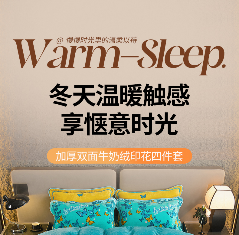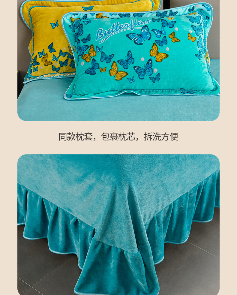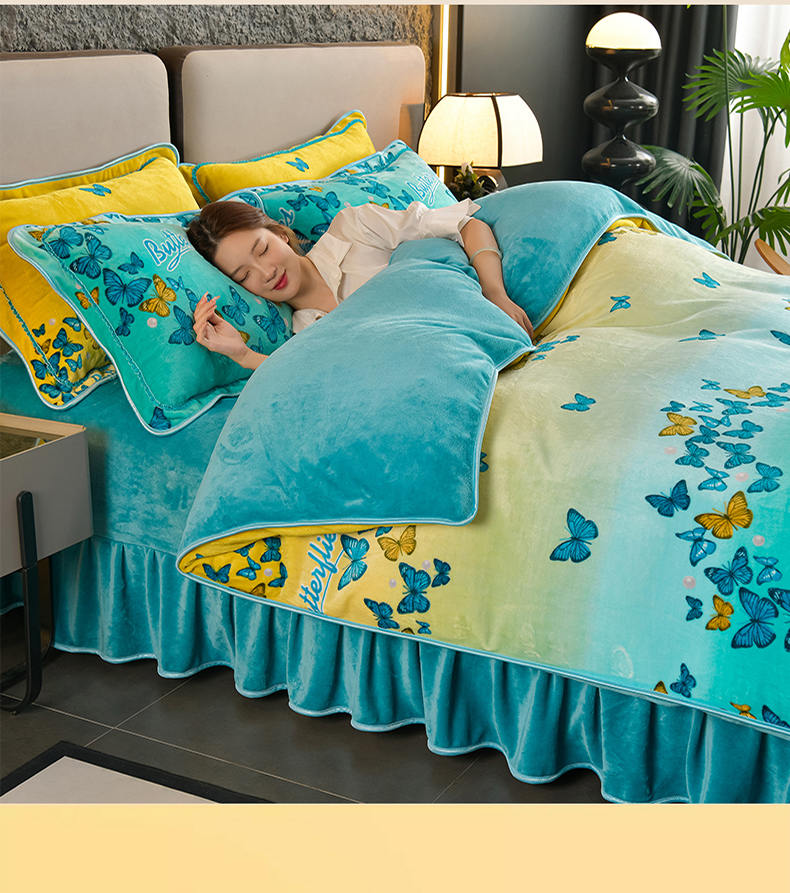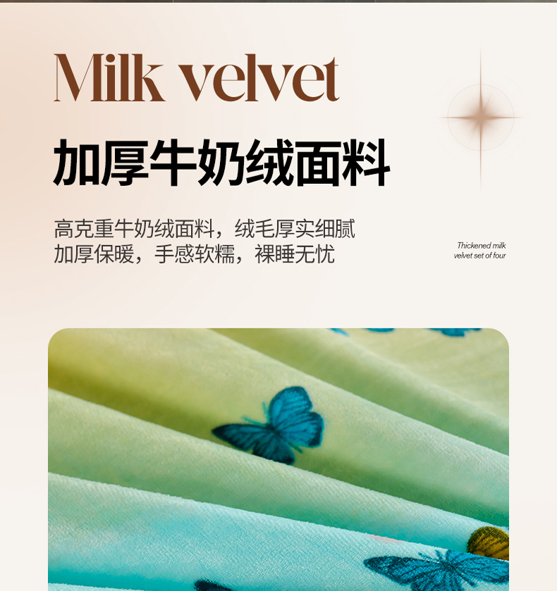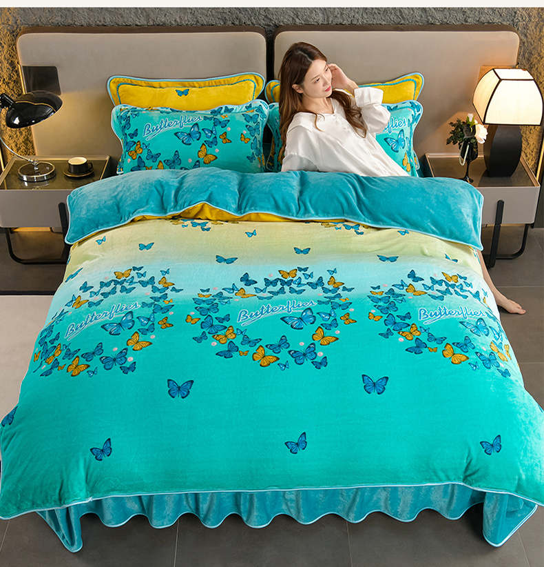 商品名称:紫月轩2024新款日产2万套高克重8.5斤牛奶绒四件套法莱绒四件套 翩翩飞舞