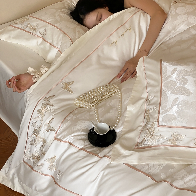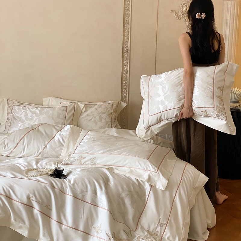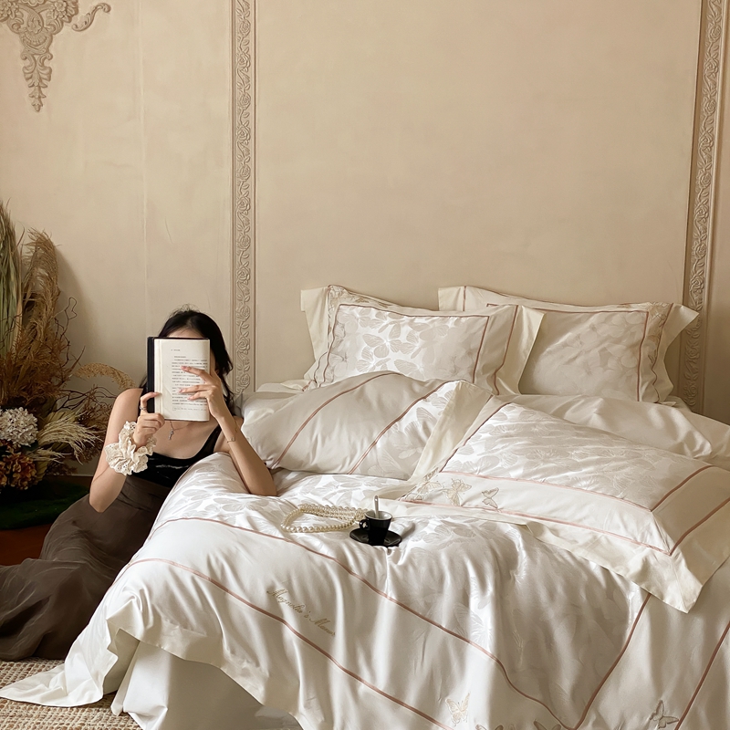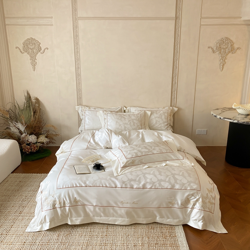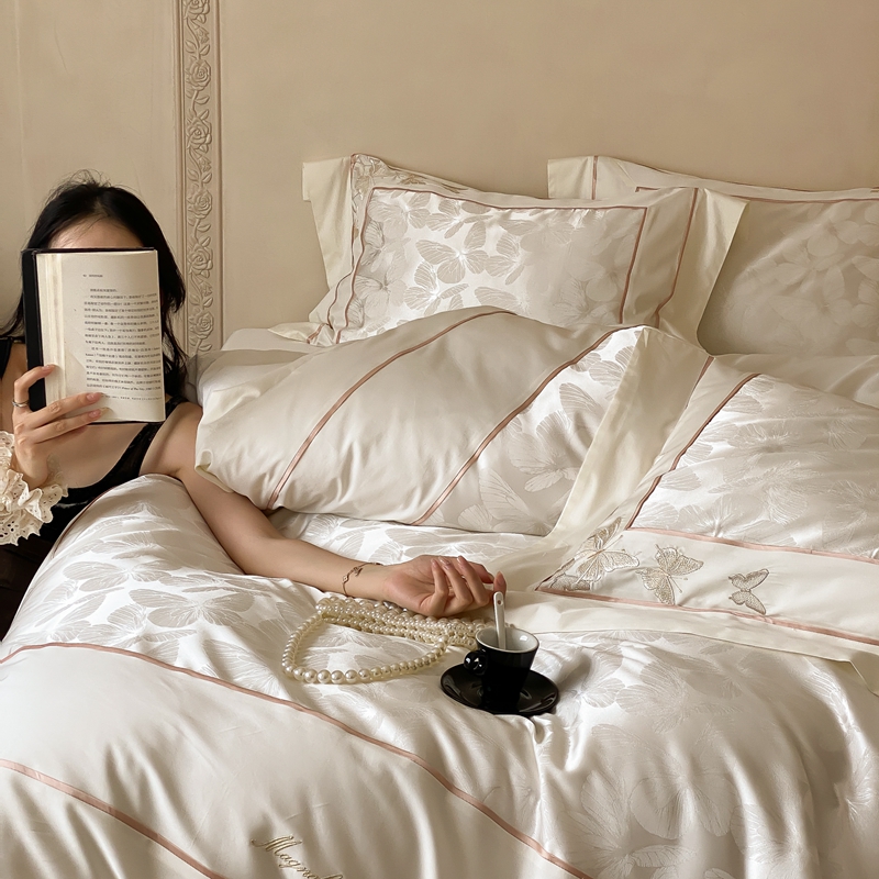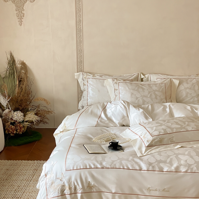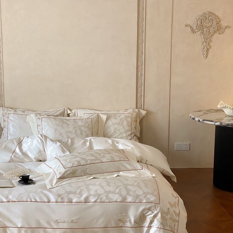初拾 2024新款100s澳棉高精密提花四件套-蝶舞星光 蝶舞星光-玉珠白