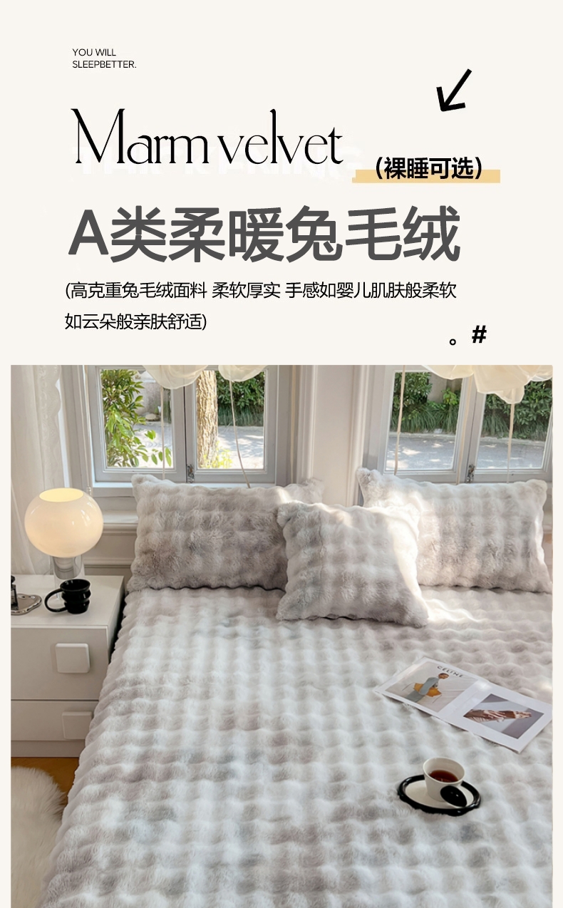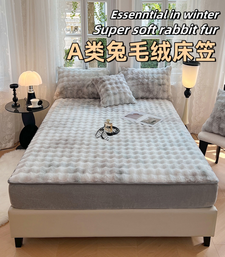• 91家纺网 家纺一手货源 找家纺 梦舒羽 2025新款兔毛绒床笠水晶绒床垫保护套牛奶绒床垫套 梦幻浅灰