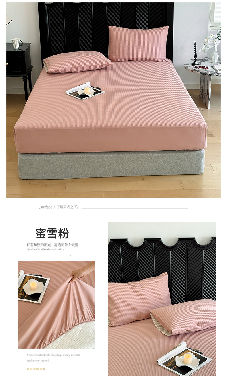 商品名称:三味舒屋 2024新款全棉60支长绒棉夹棉轻奢床笠 蜜雪粉