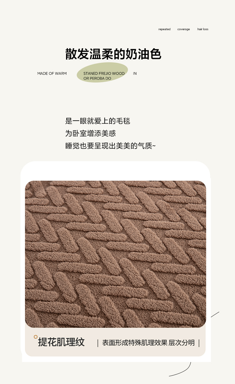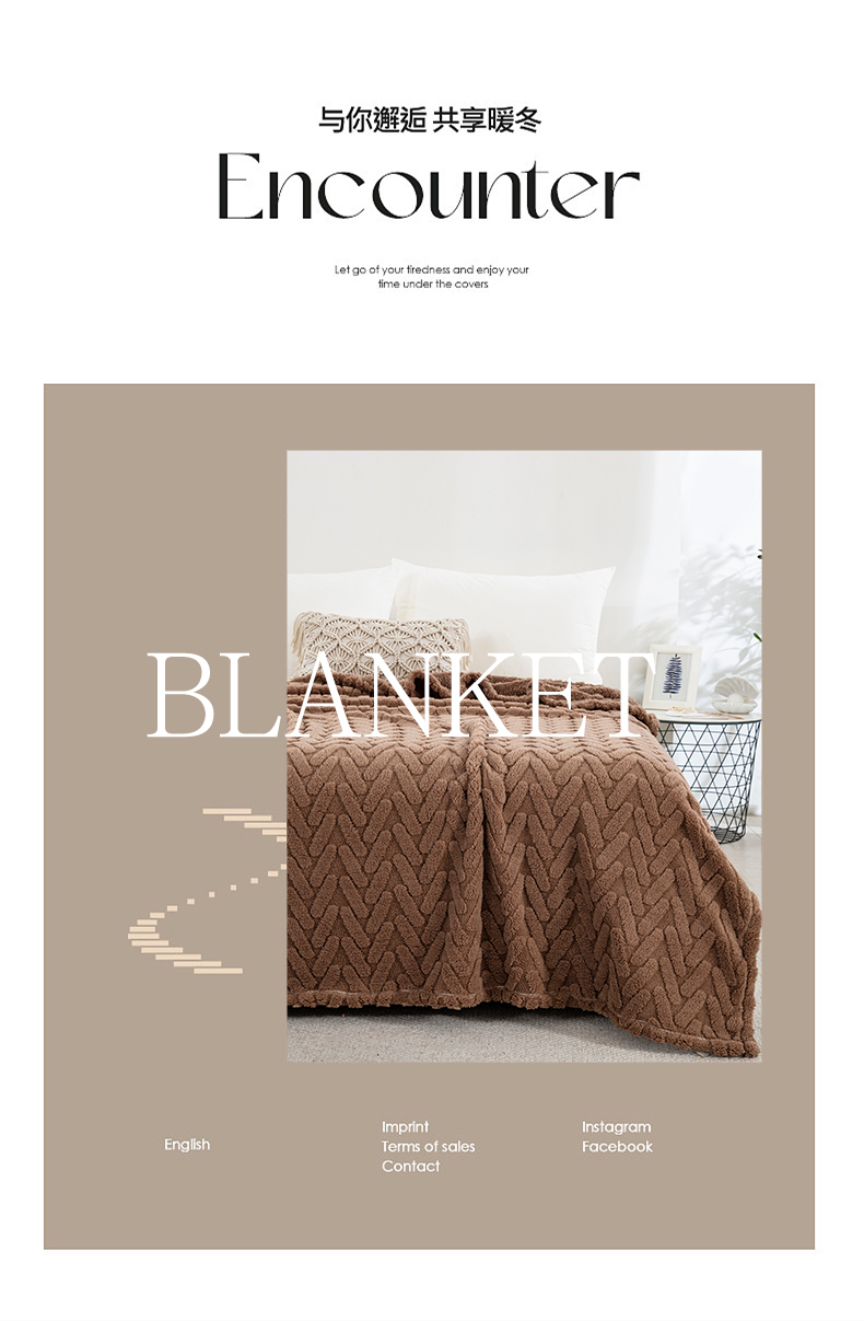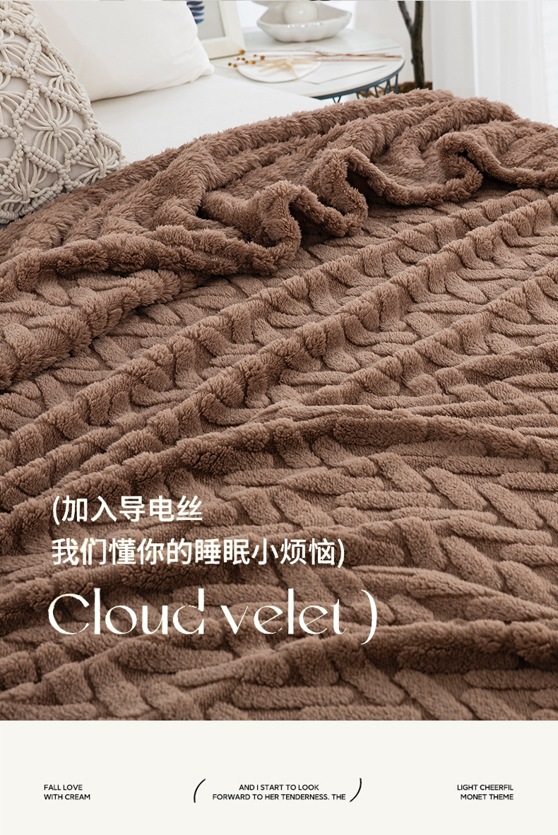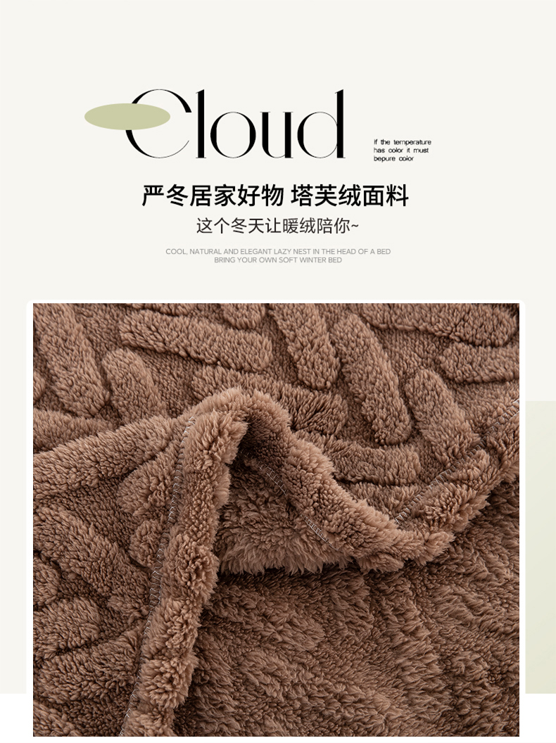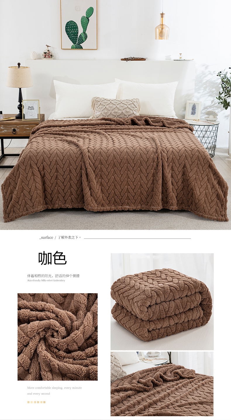 商品名称:一左一右 2024秋冬新款高克重单层双面提花塔芙绒毛毯舒棉绒毯多功能毯子外贸跨境电商 咖色