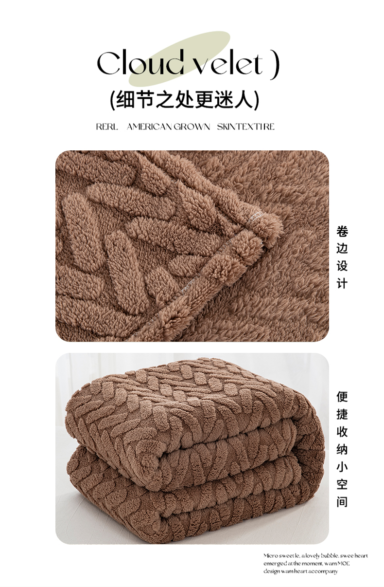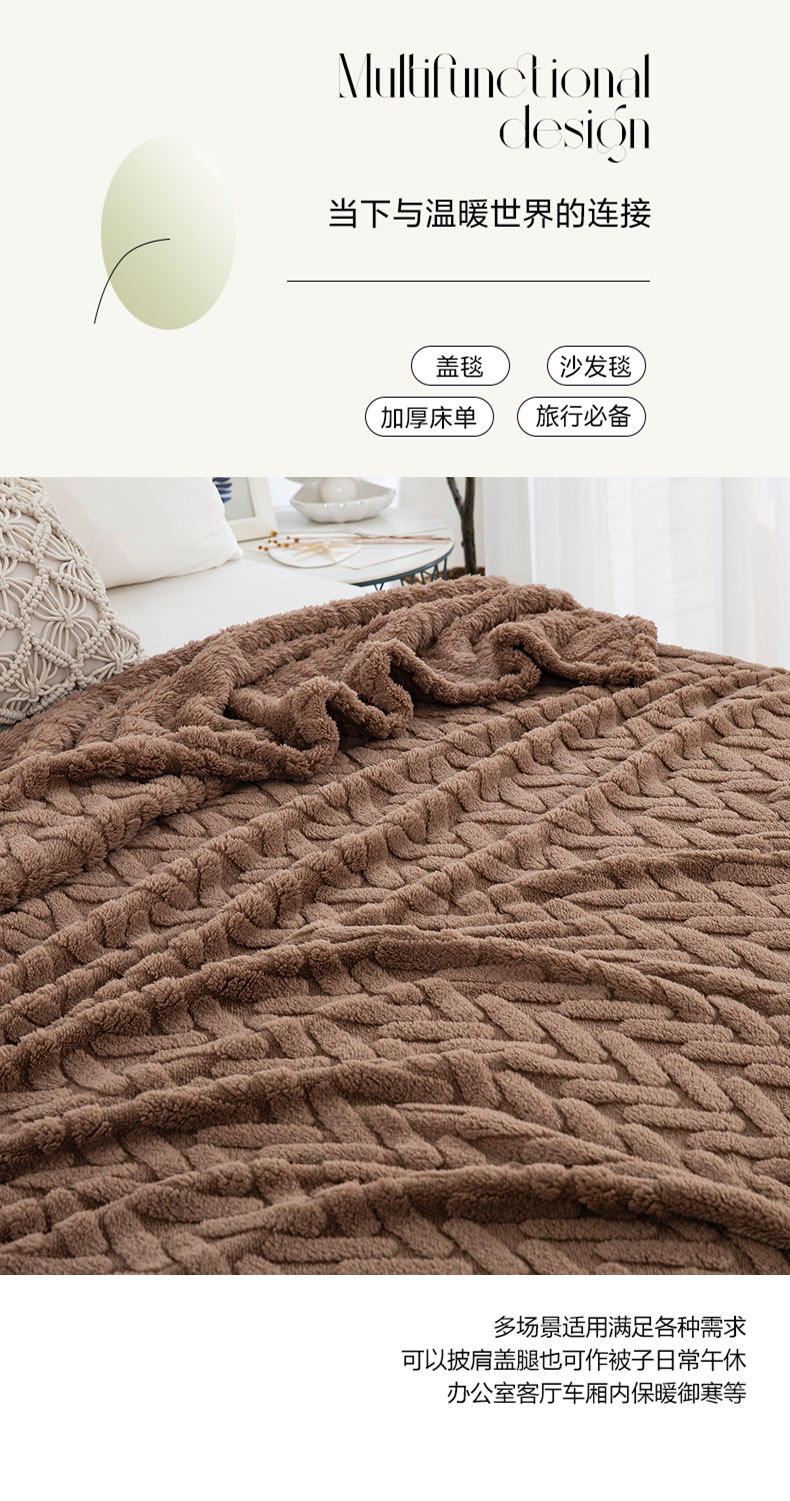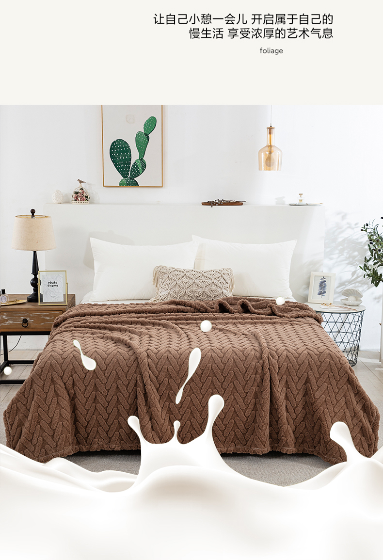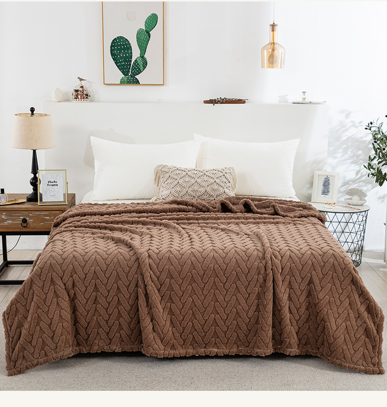 一左一右 2024秋冬新款高克重单层双面提花塔芙绒毛毯舒棉绒毯多功能毯子外贸跨境电商 咖色