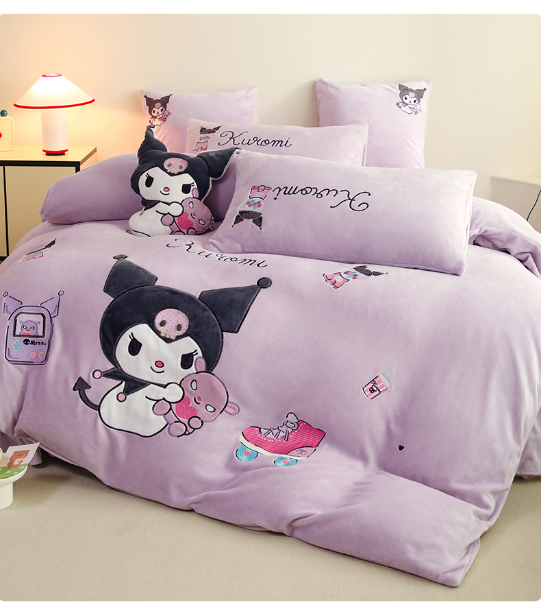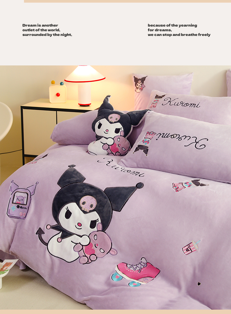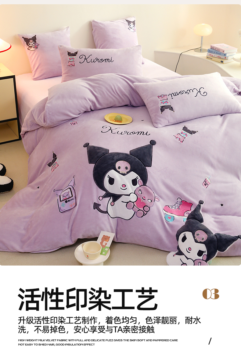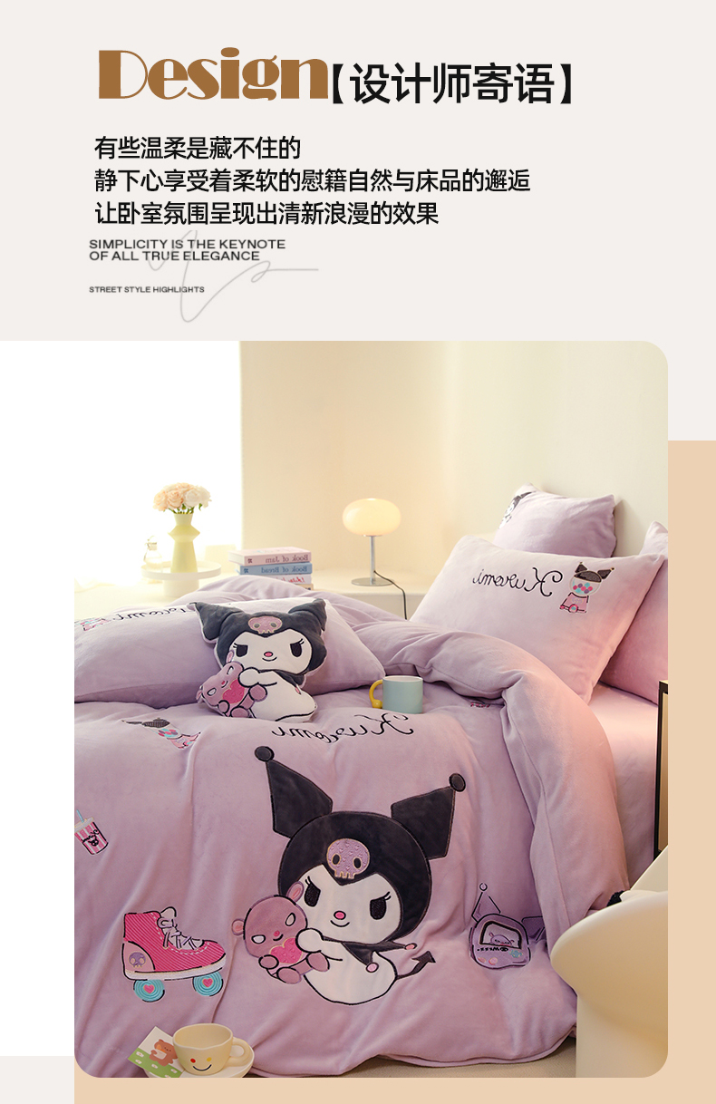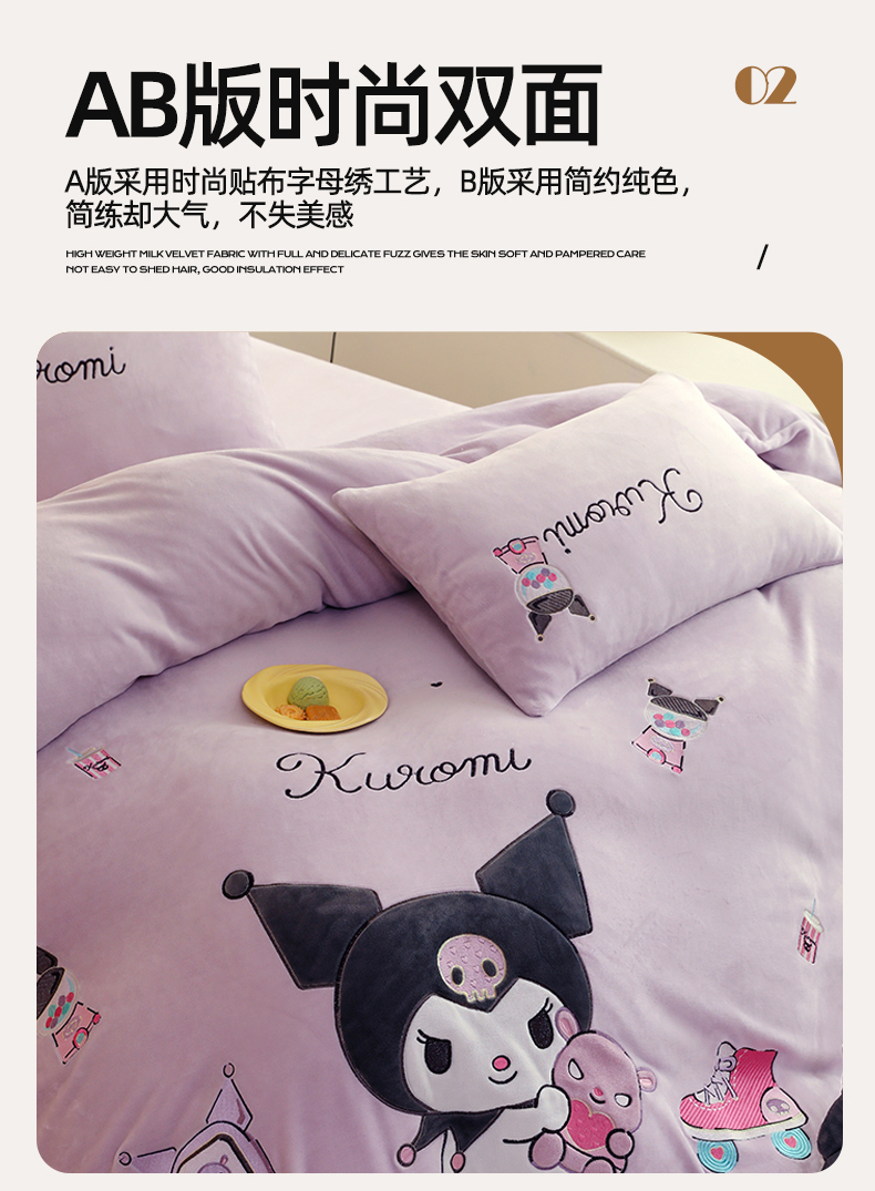 当前位置: 91家纺网 > 商品网购 > 床品套件 > 四件套 > 牛奶绒四件套 > (总)绒棉世家 2025新款正版带标三丽欧-库洛米牛奶绒贴布绣四件套
