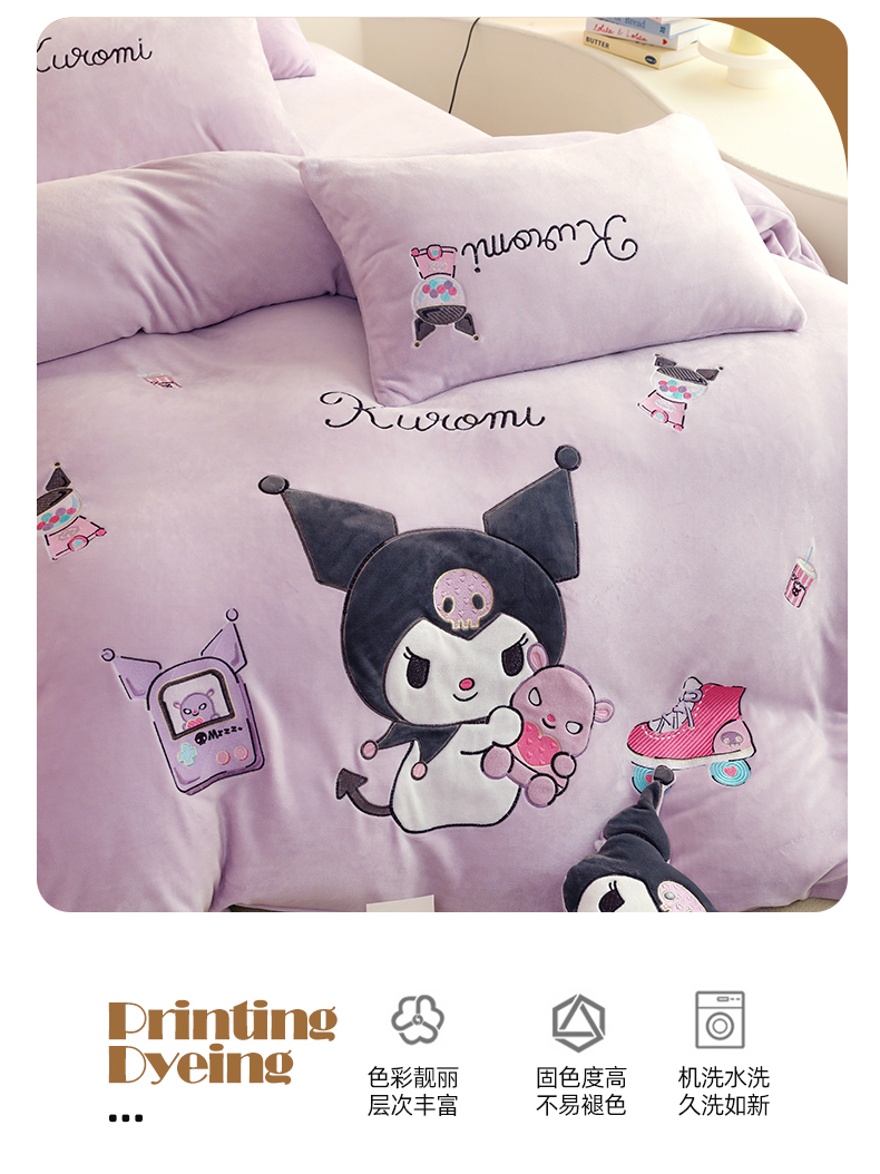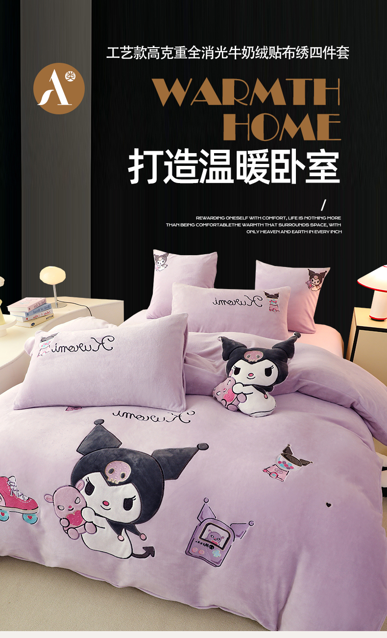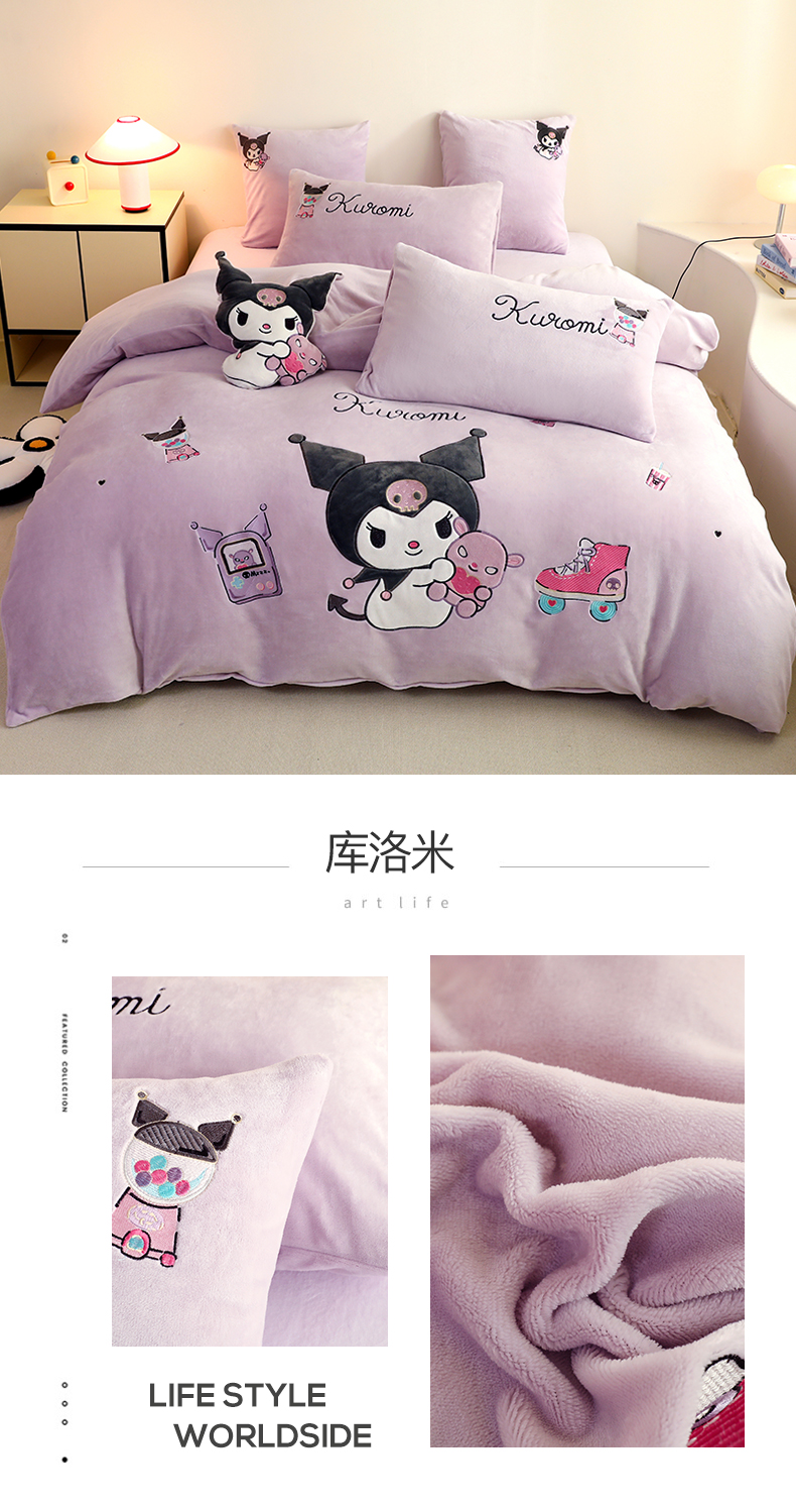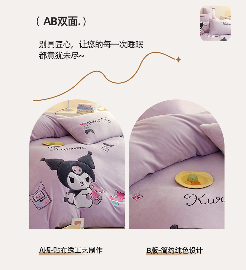 当前位置: 91家纺网 > 商品网购 > 床品套件 > 四件套 > 牛奶绒四件套 > (总)绒棉世家 2025新款正版带标三丽欧-库洛米牛奶绒贴布绣四件套