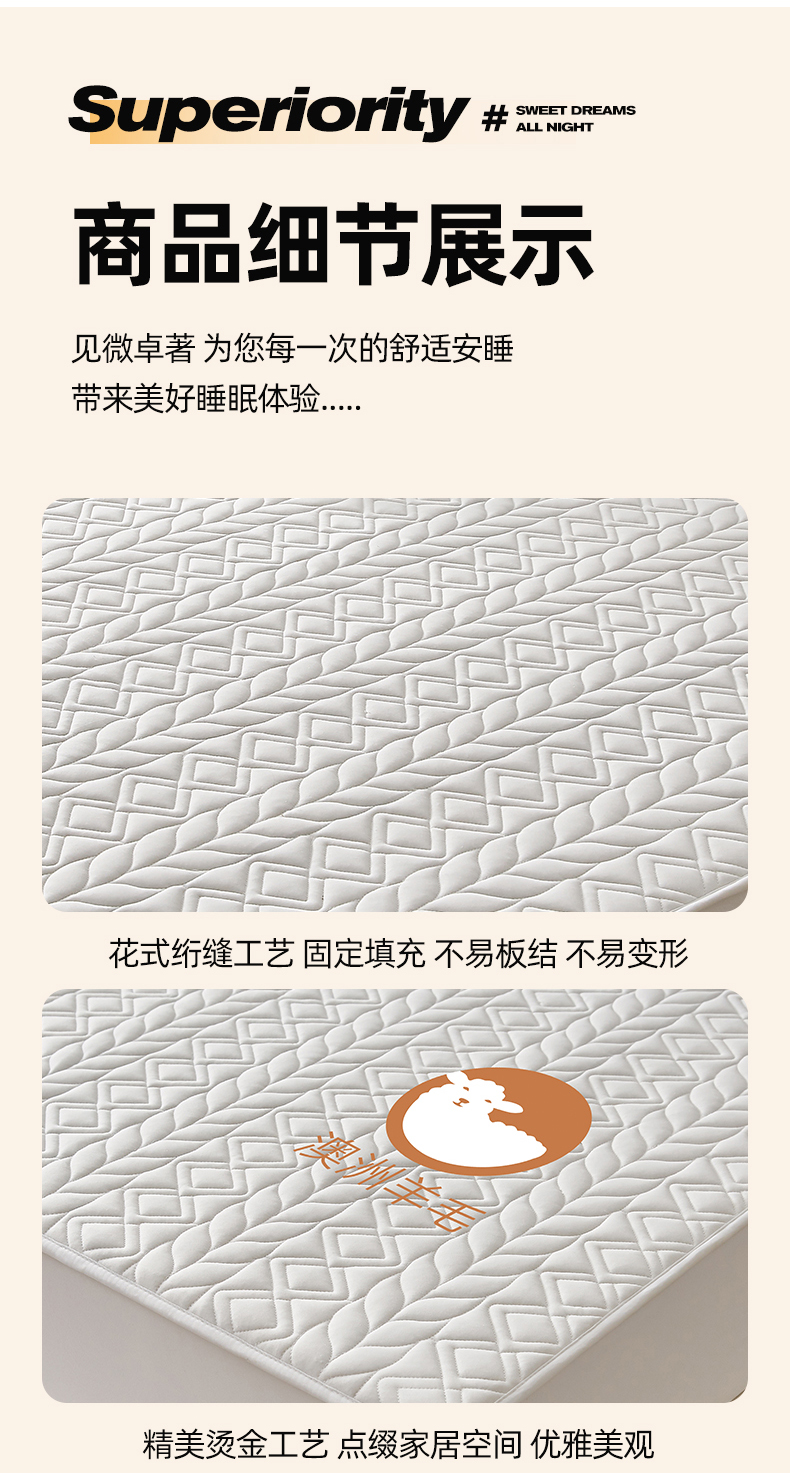 (总)卡派家纺 2022绣花大豆纤维立体床垫,高雅-白,高雅-灰