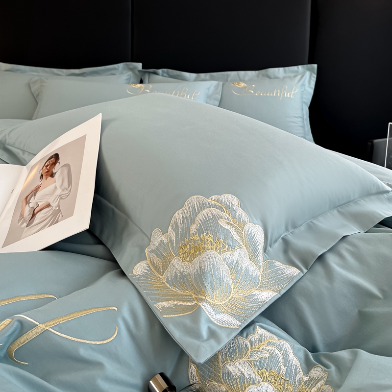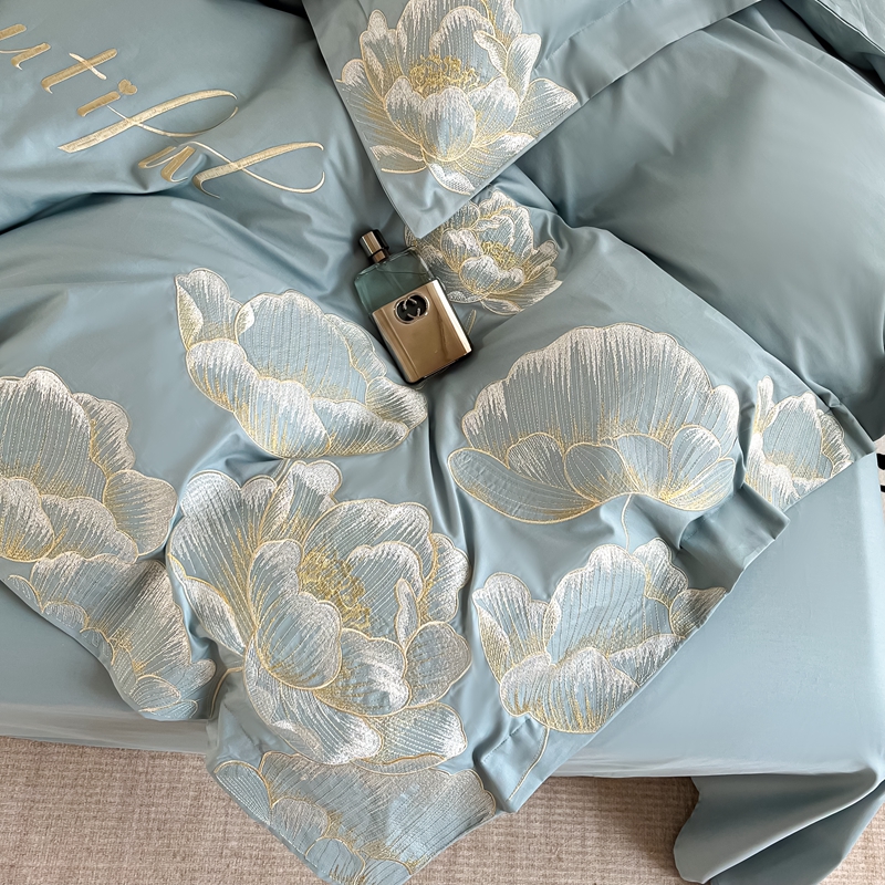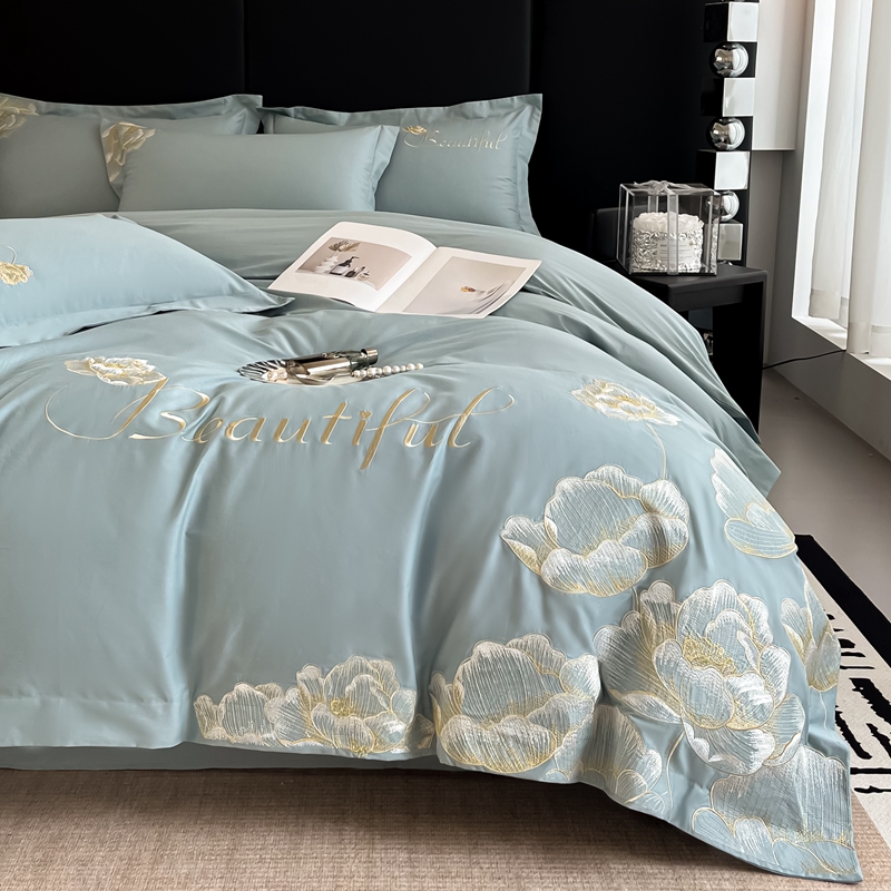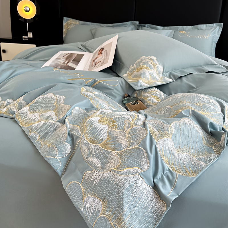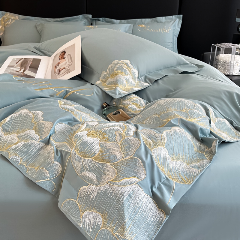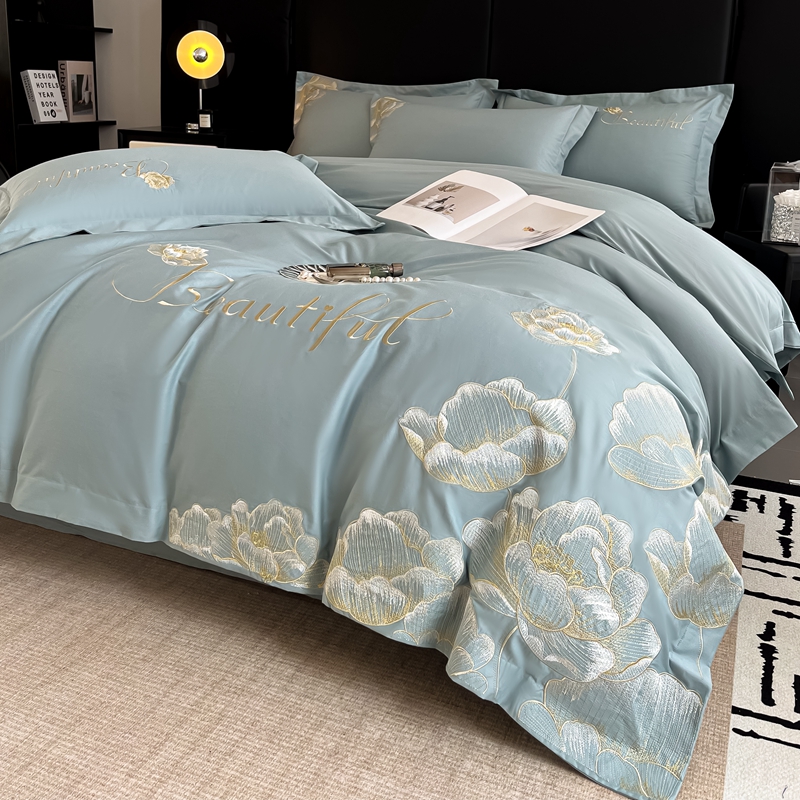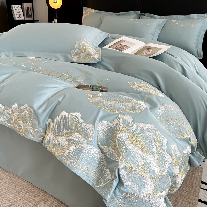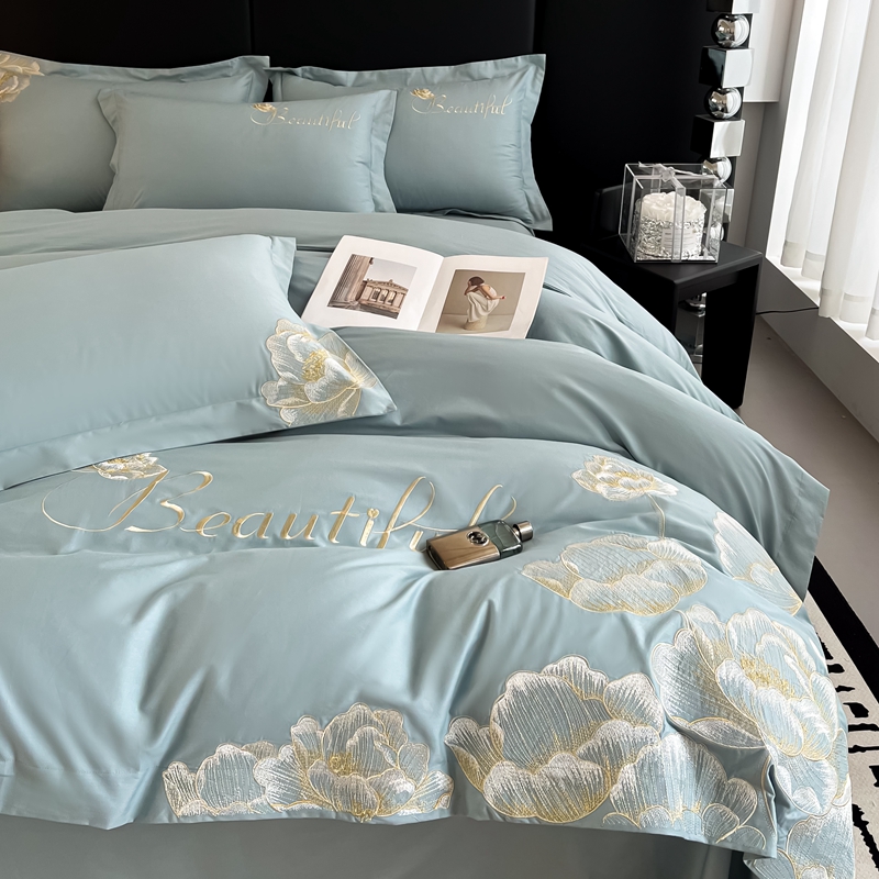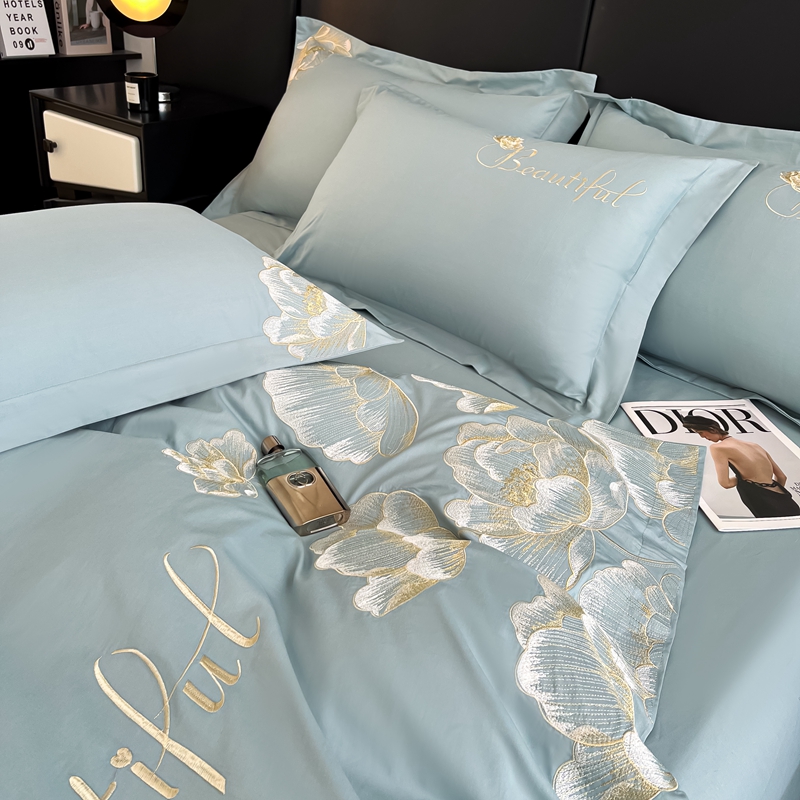 (总)梧桐家居 2025春夏新款全棉纯棉轻奢刺绣四件套-金枝玉叶,金枝玉叶-高级灰,金枝玉叶-飘蓝,金枝玉叶-香芋紫