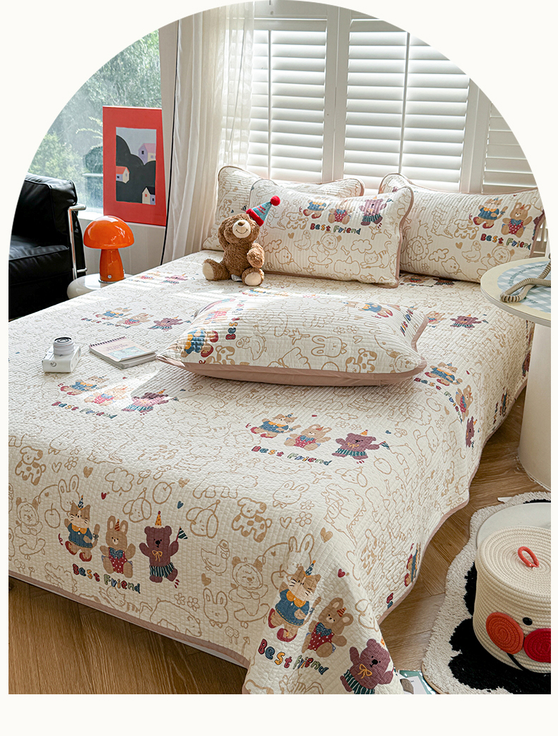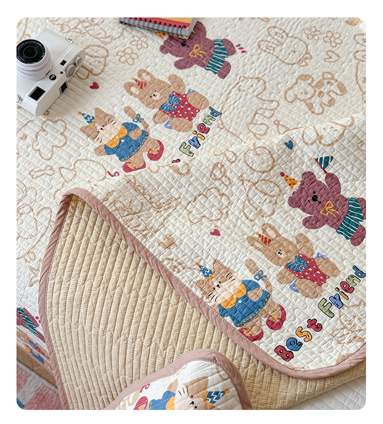 茉夕家纺 2024新款双面全棉夹棉床盖系列 小童趣